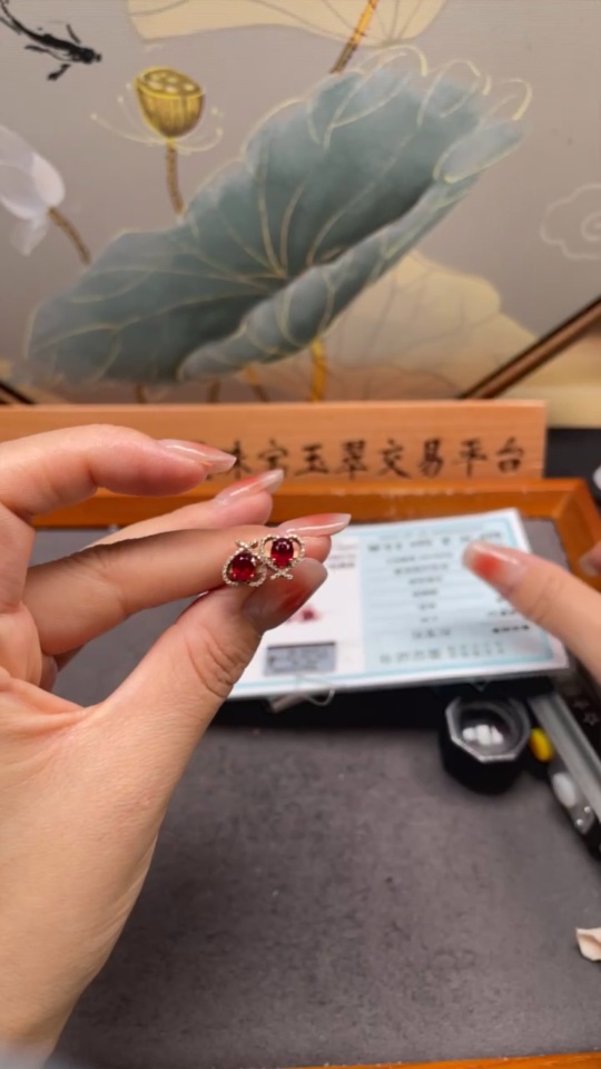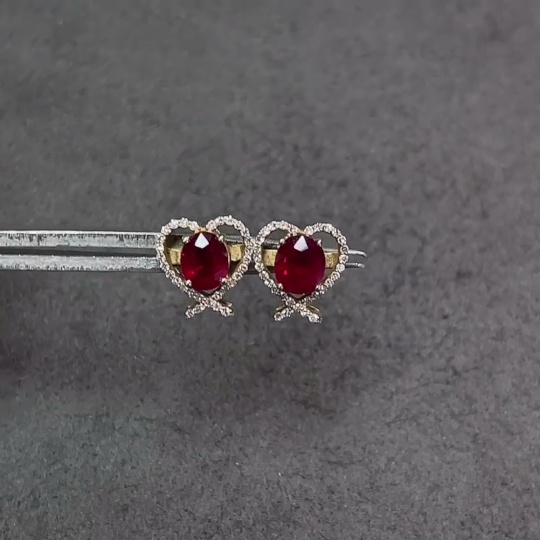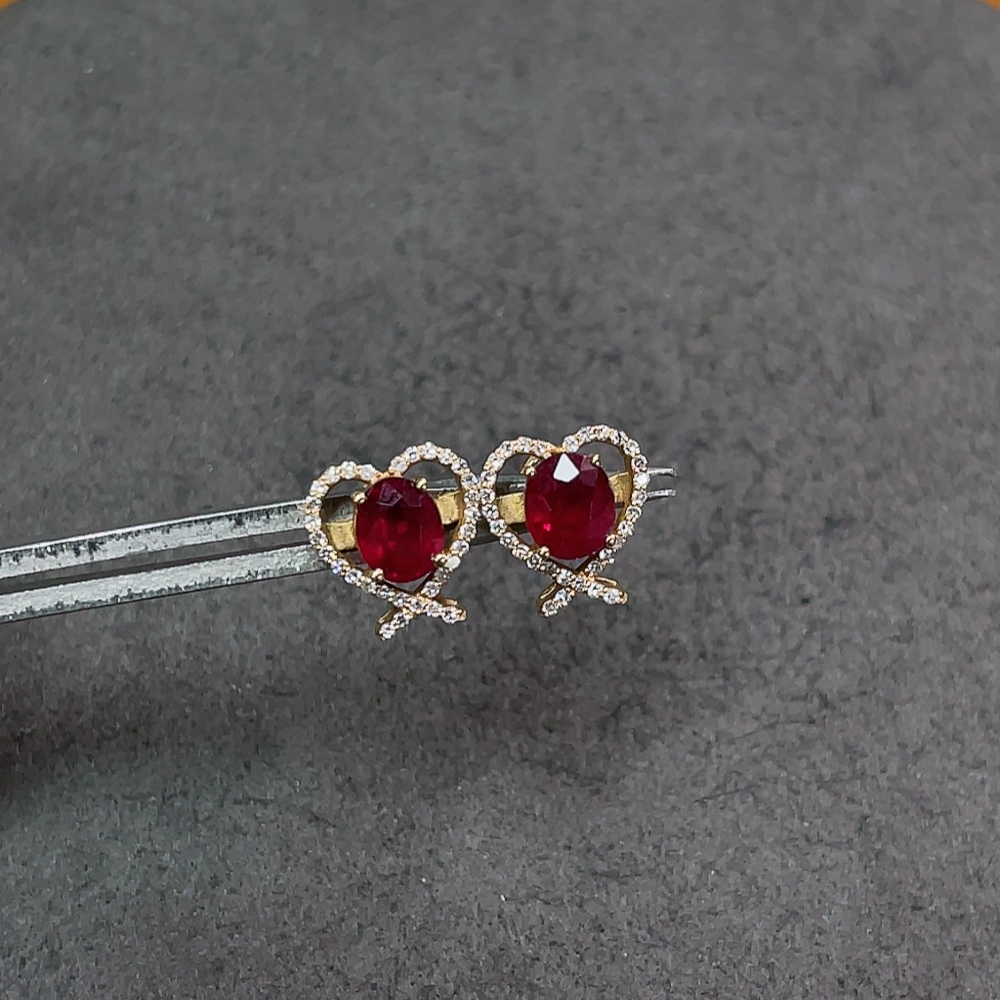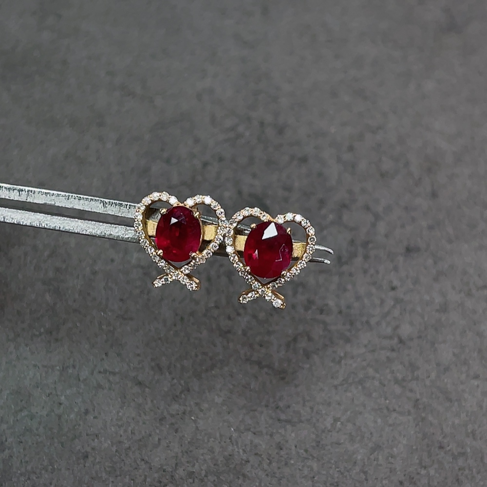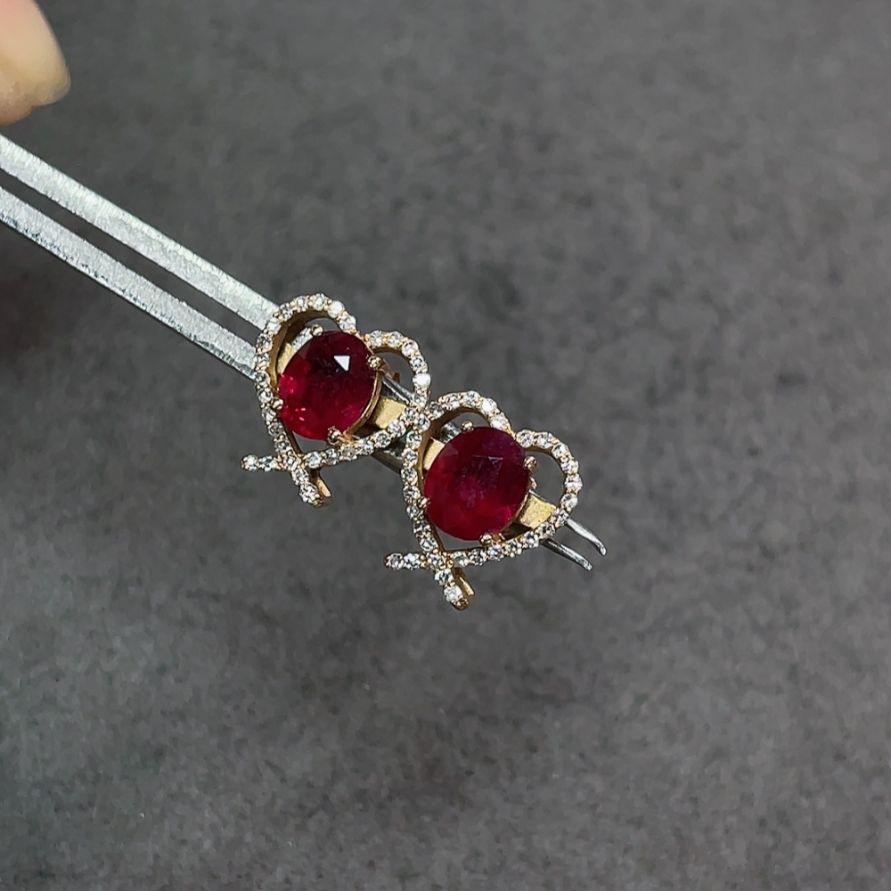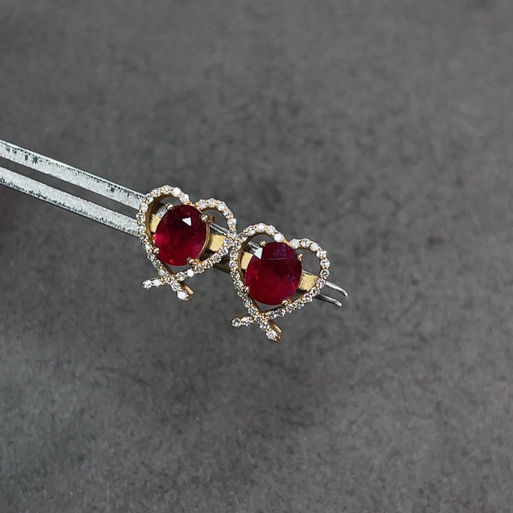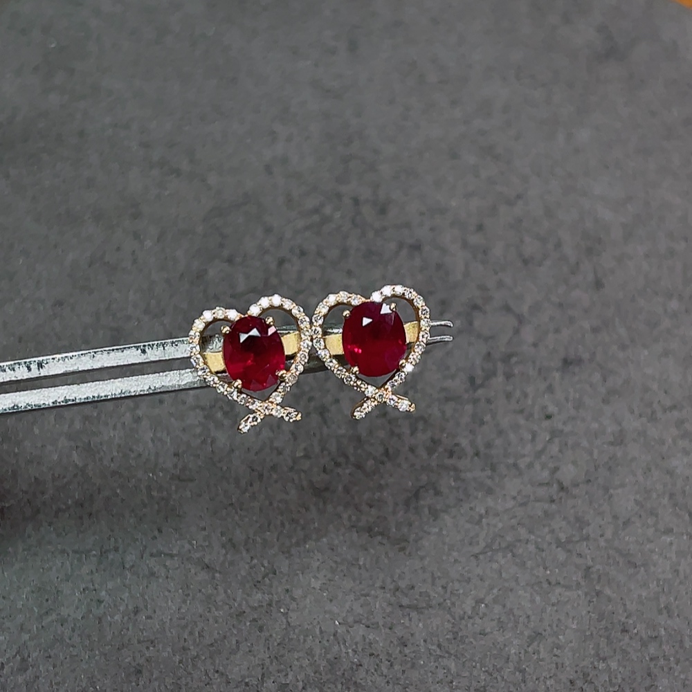 18K Ruby Earrings with Diamond Accents, Total Weight Approx. 1.8g, Stone Size 5.2*4.2mm