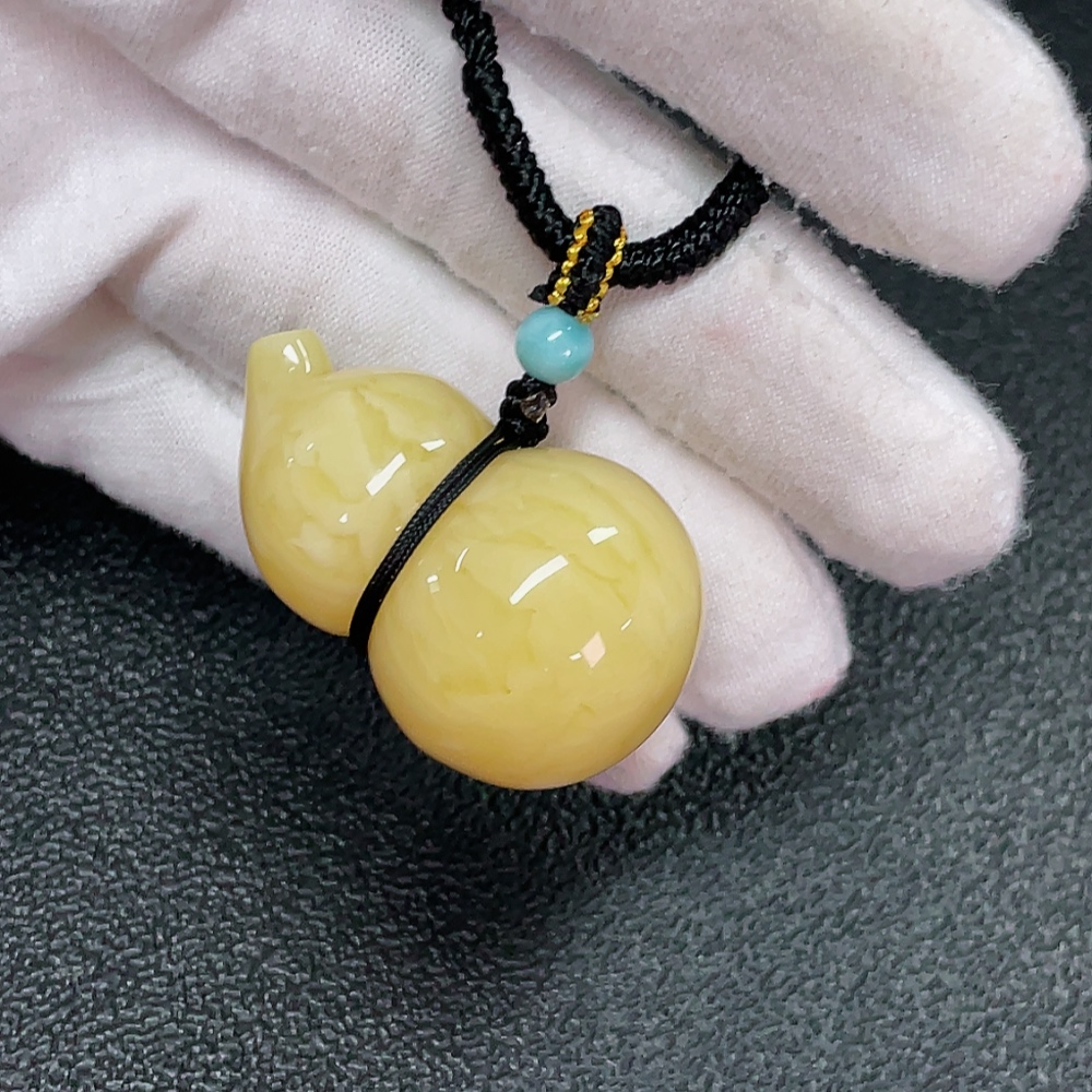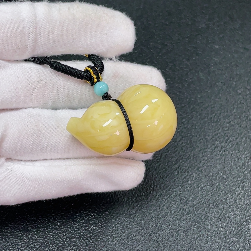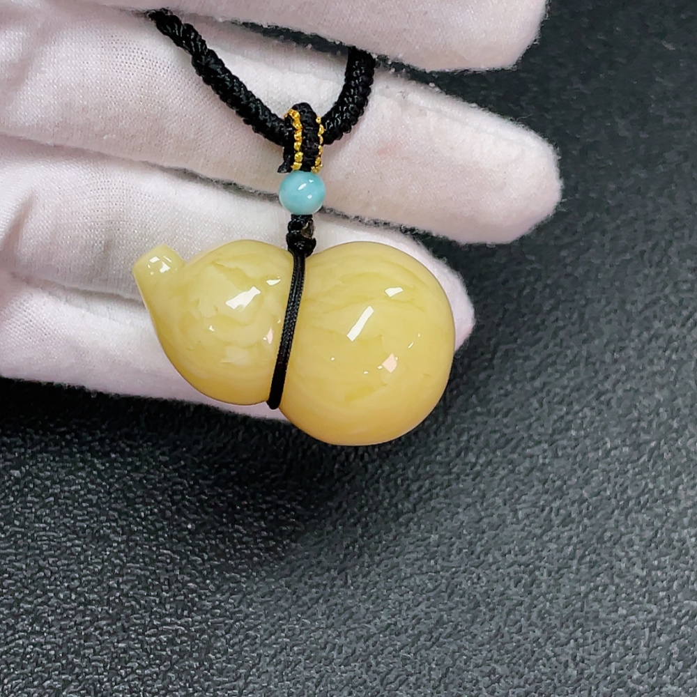 Amber Beeswax Pendant with Larimar, Total Weight Approx. 13.89g, Including Rope
