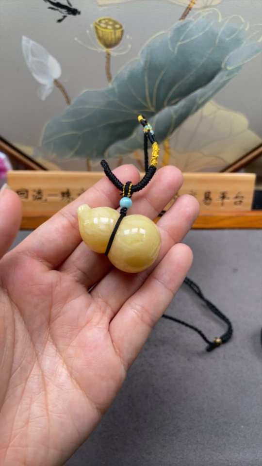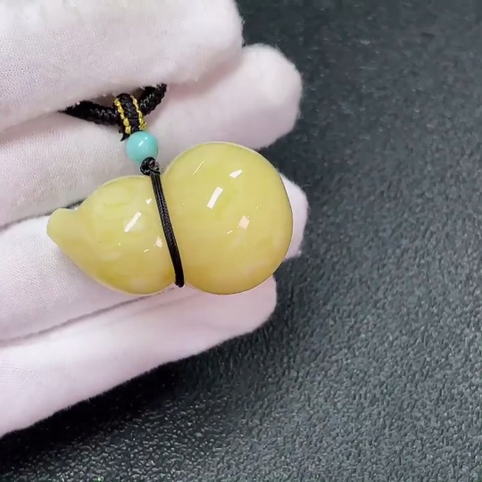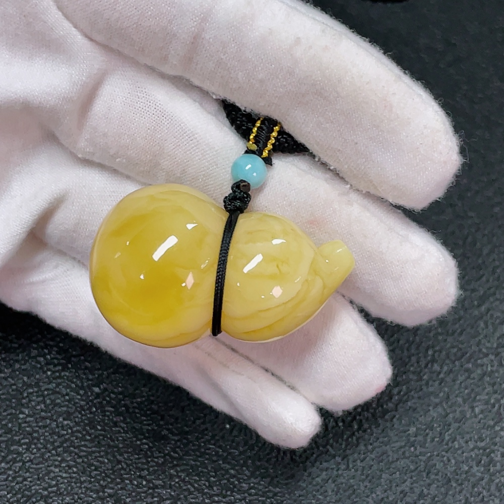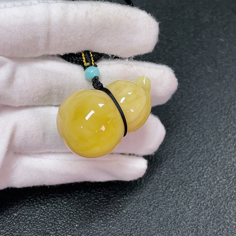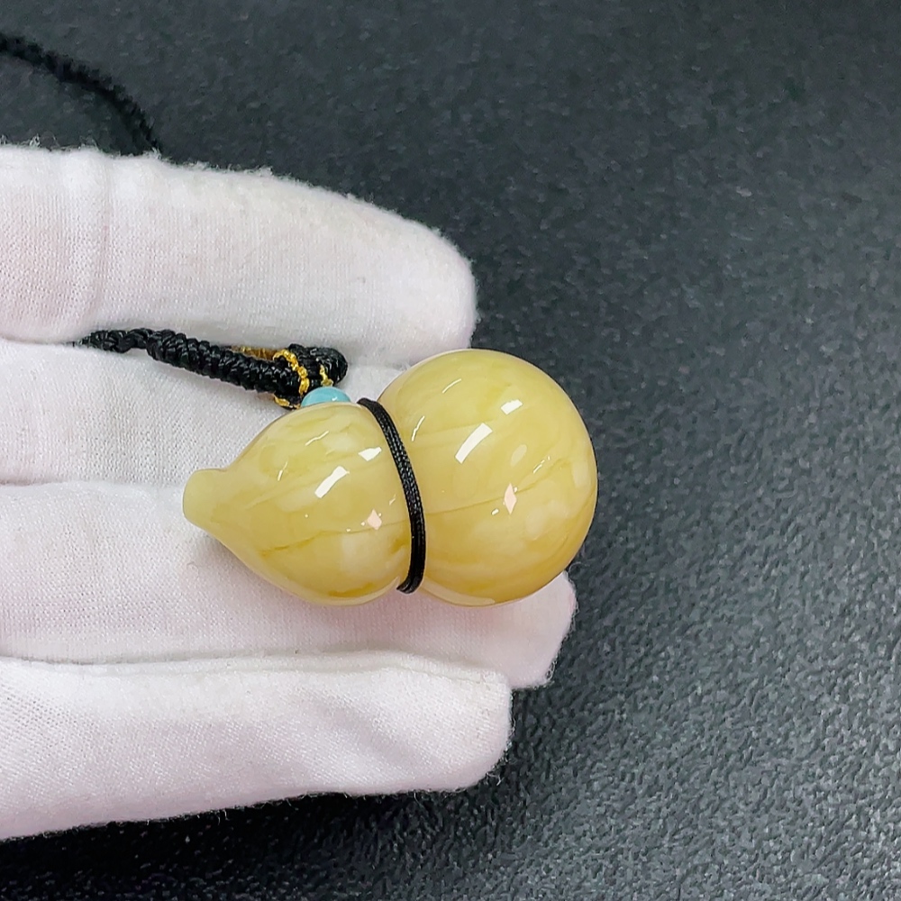 Amber Beeswax Pendant with Larimar, Total Weight Approx. 13.89g, Including Rope