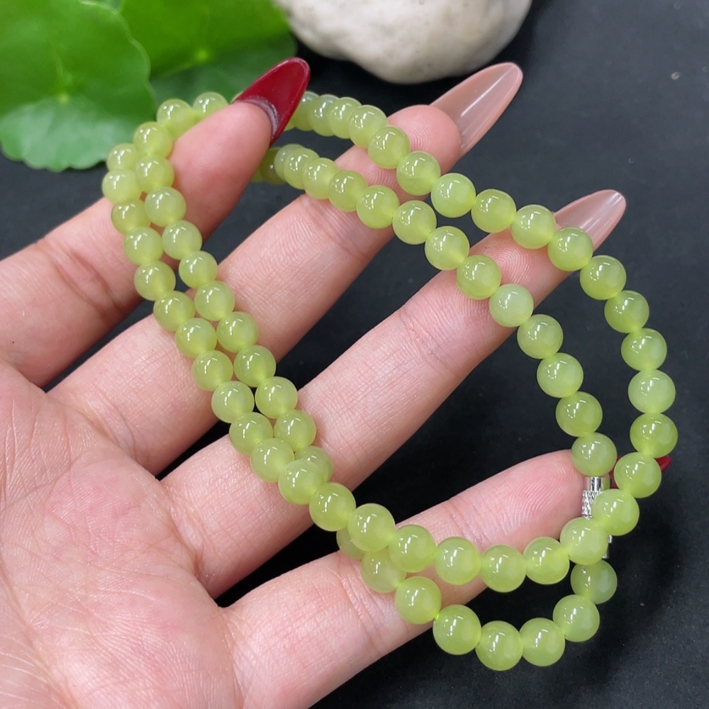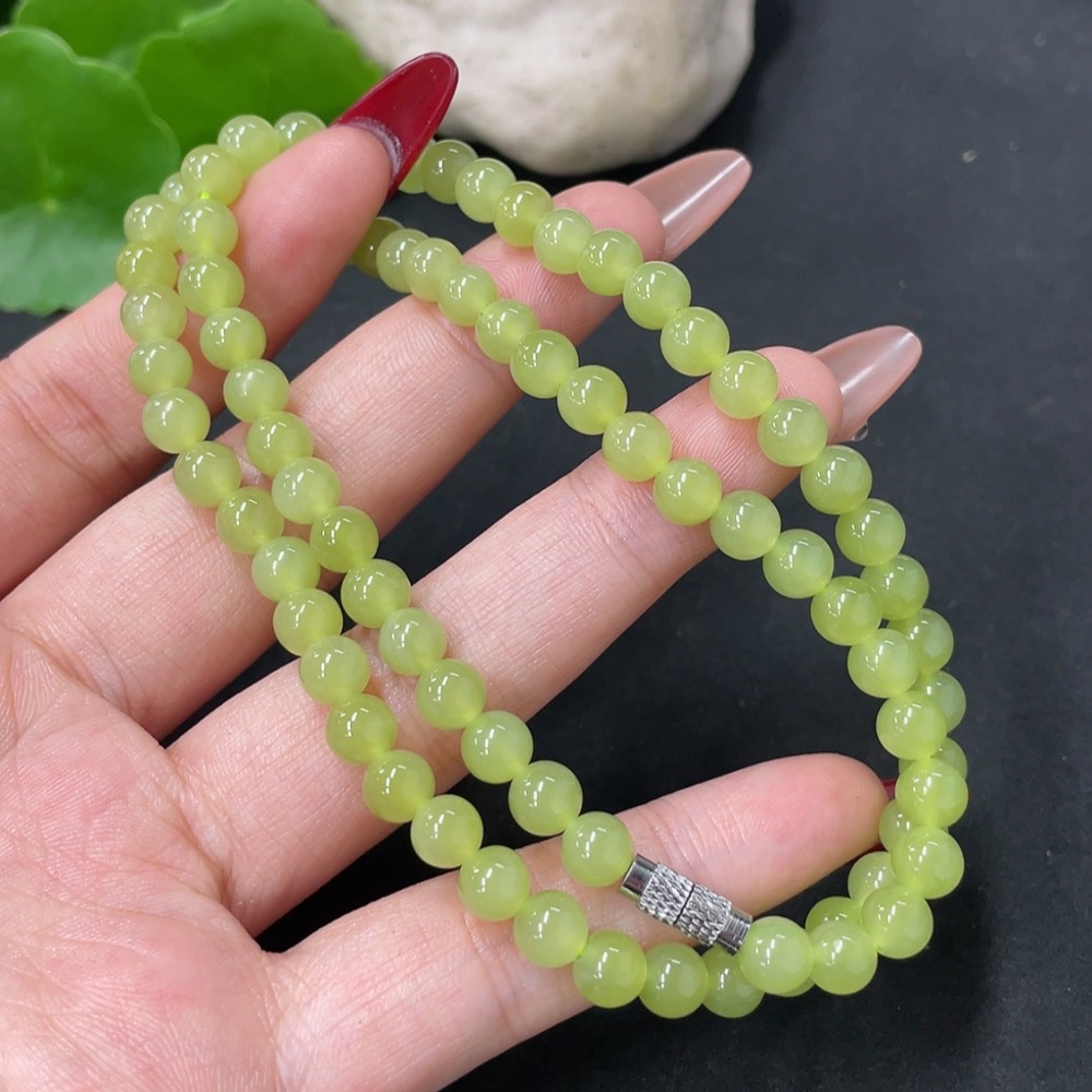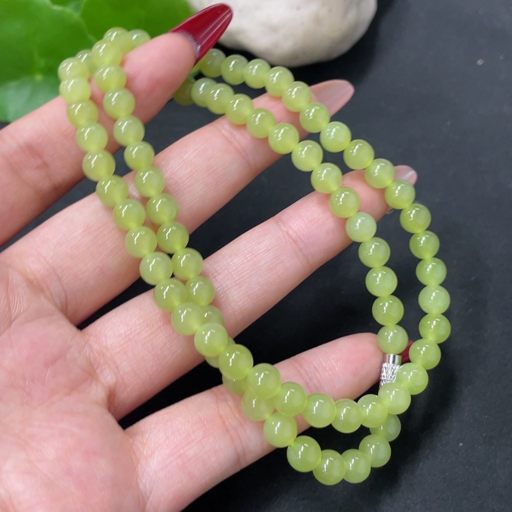 Hetian Jade Bead Necklace Non-Gold Approx. 5.7mm Total Weight Approx. 26.7g