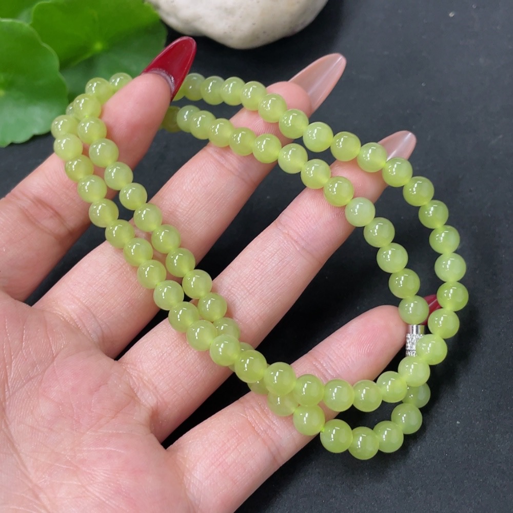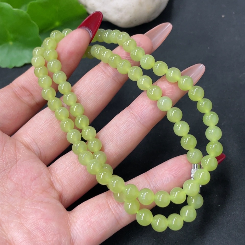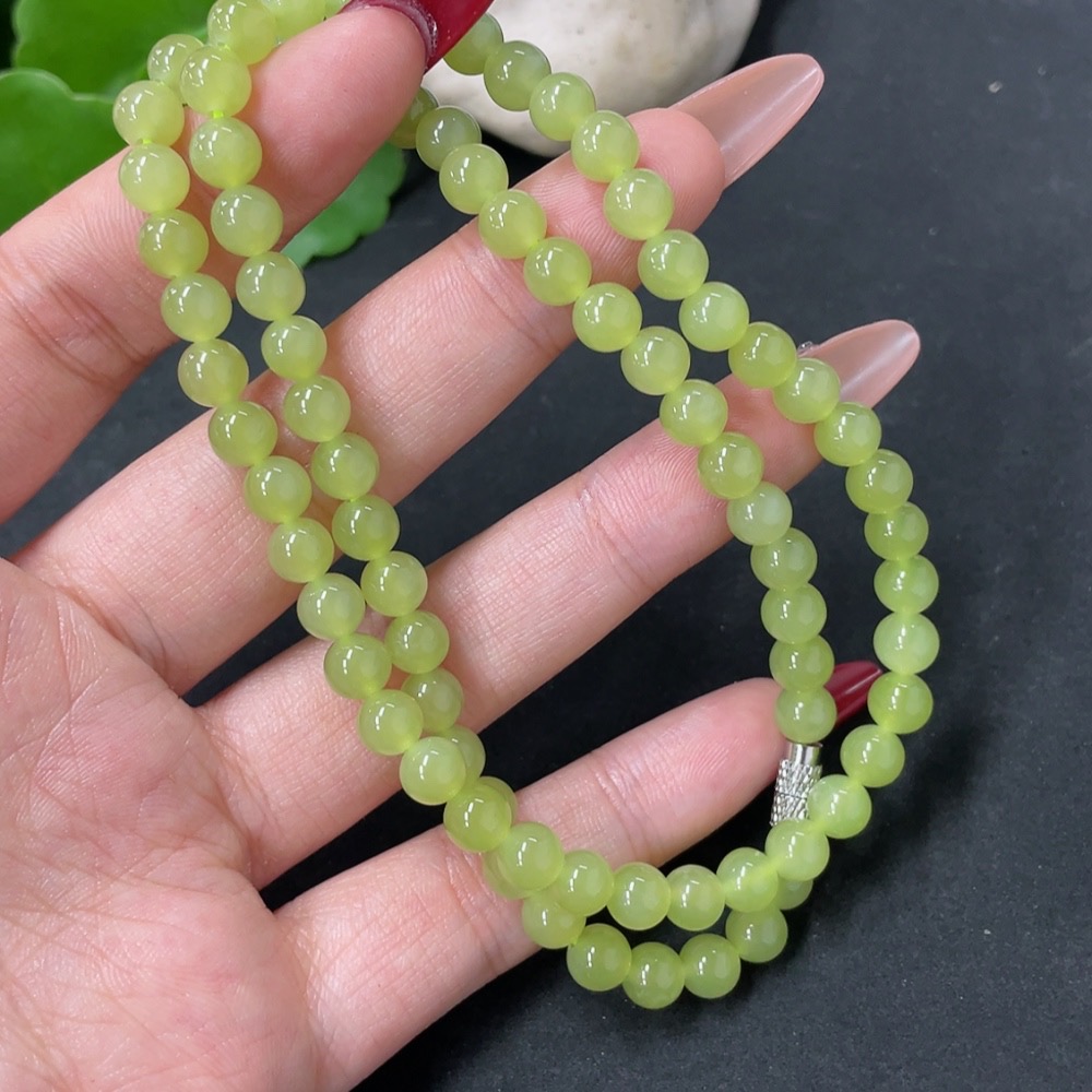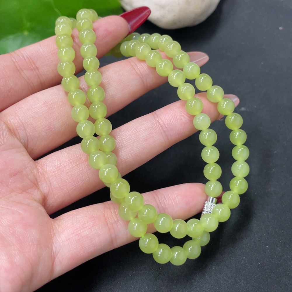 Hetian Jade Bead Necklace Non-Gold Approx. 5.7mm Total Weight Approx. 26.7g