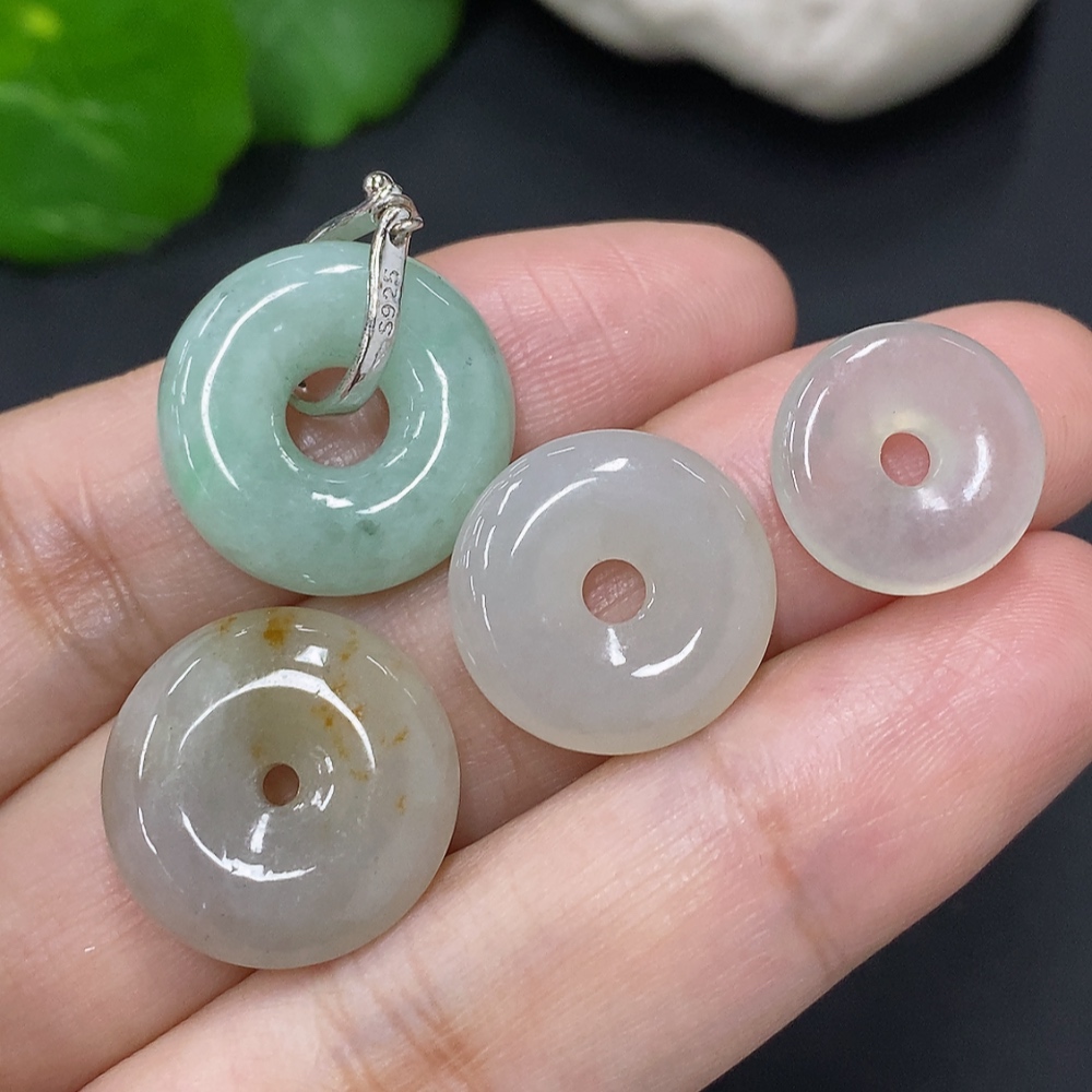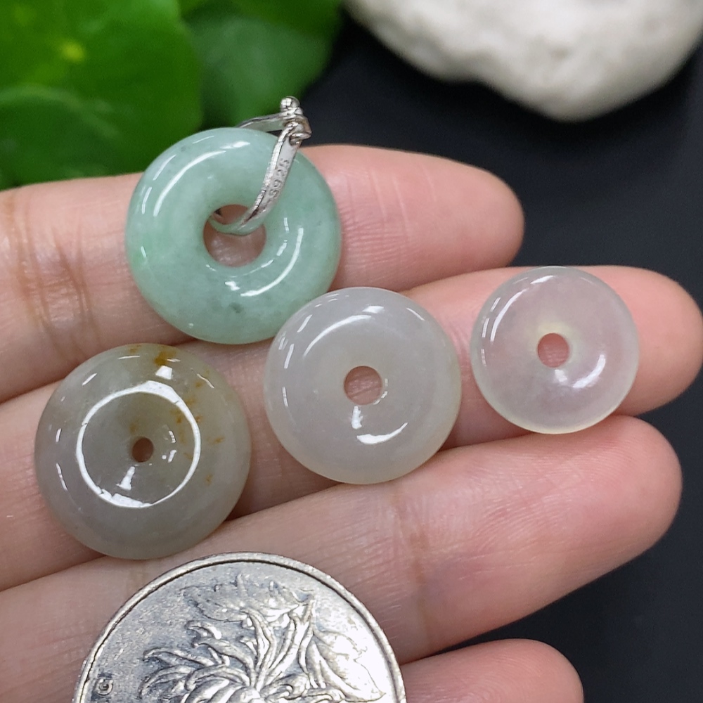 Jadeite Button Pendants Sell as a Lot Non-Gold Inlaid