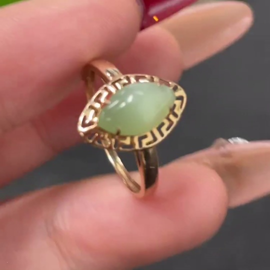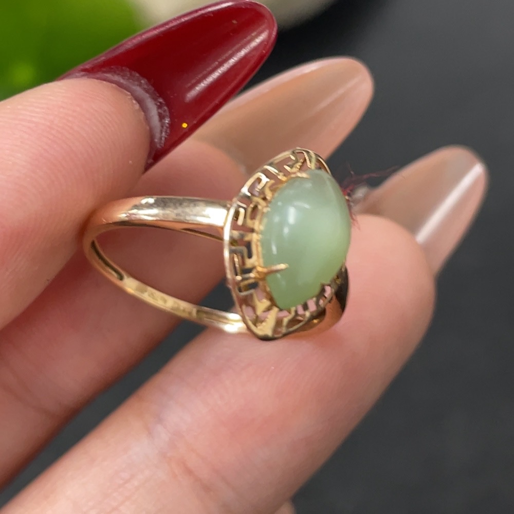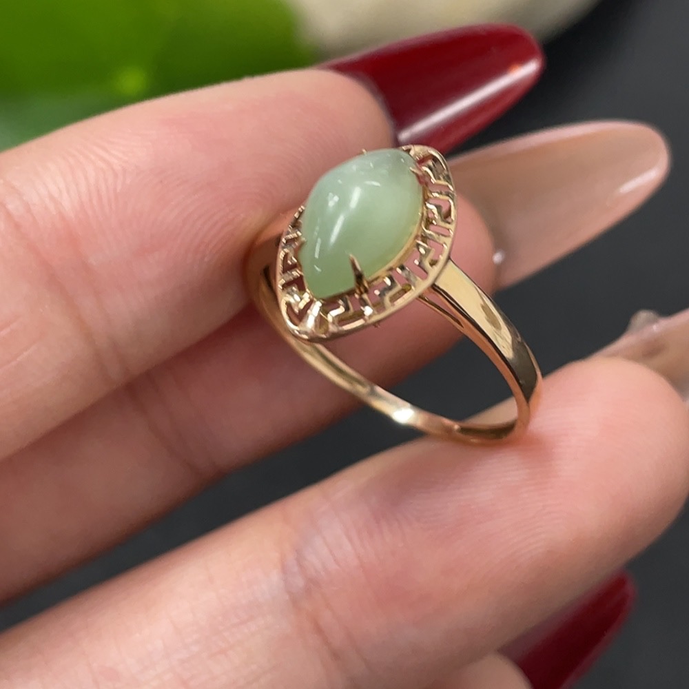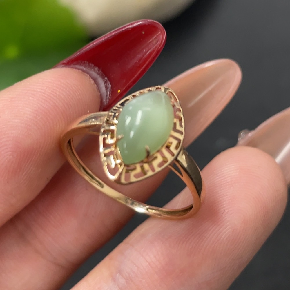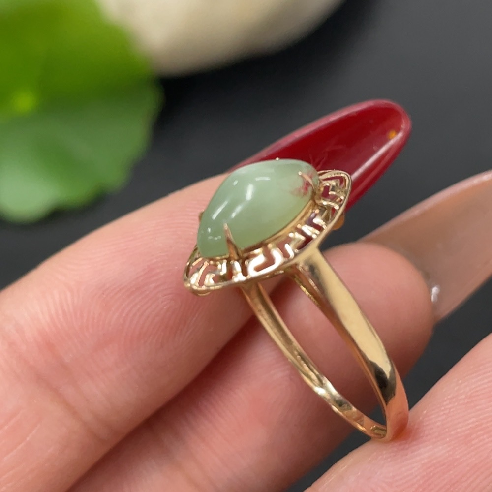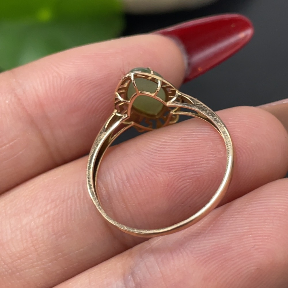 Hetian Jade Inlaid Ring, 18k Gold, Size 14, Total Weight Approx. 0.8g