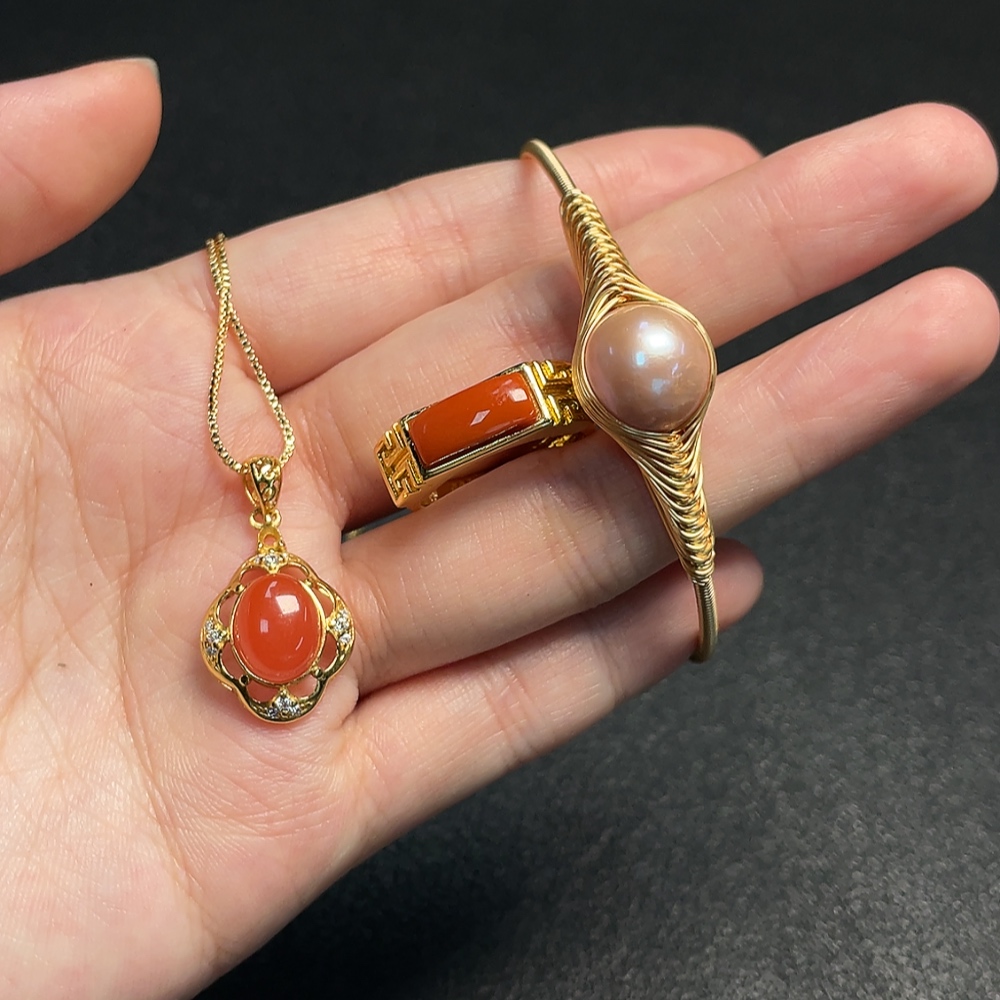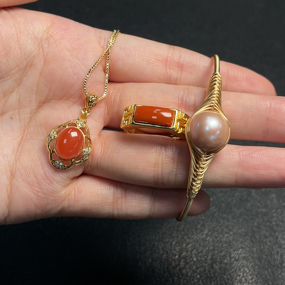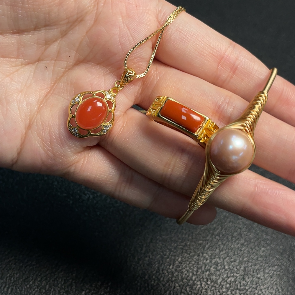 Pearl + Red Agate Jewelry Non-Gold Total Weight Approx. 16.90g Sell as a Lot