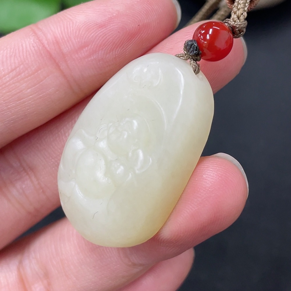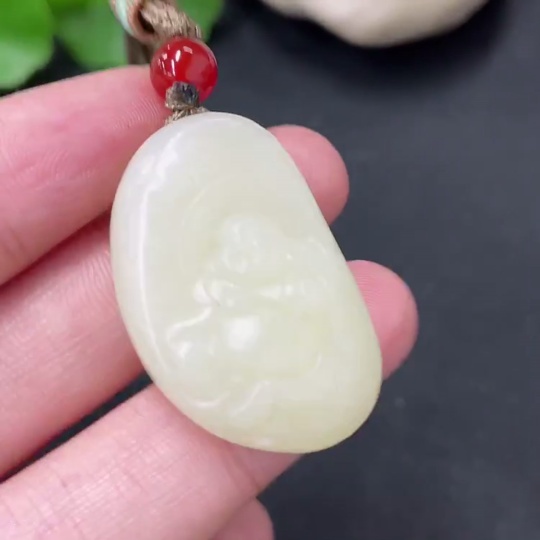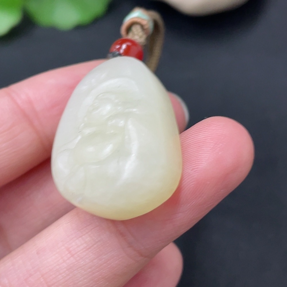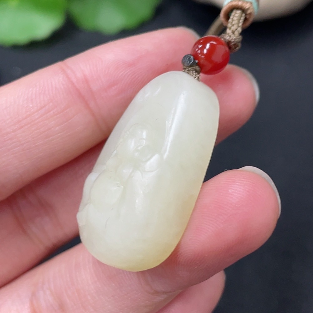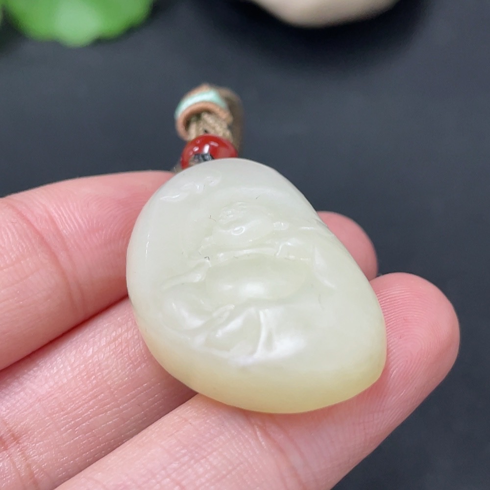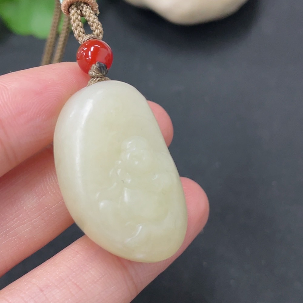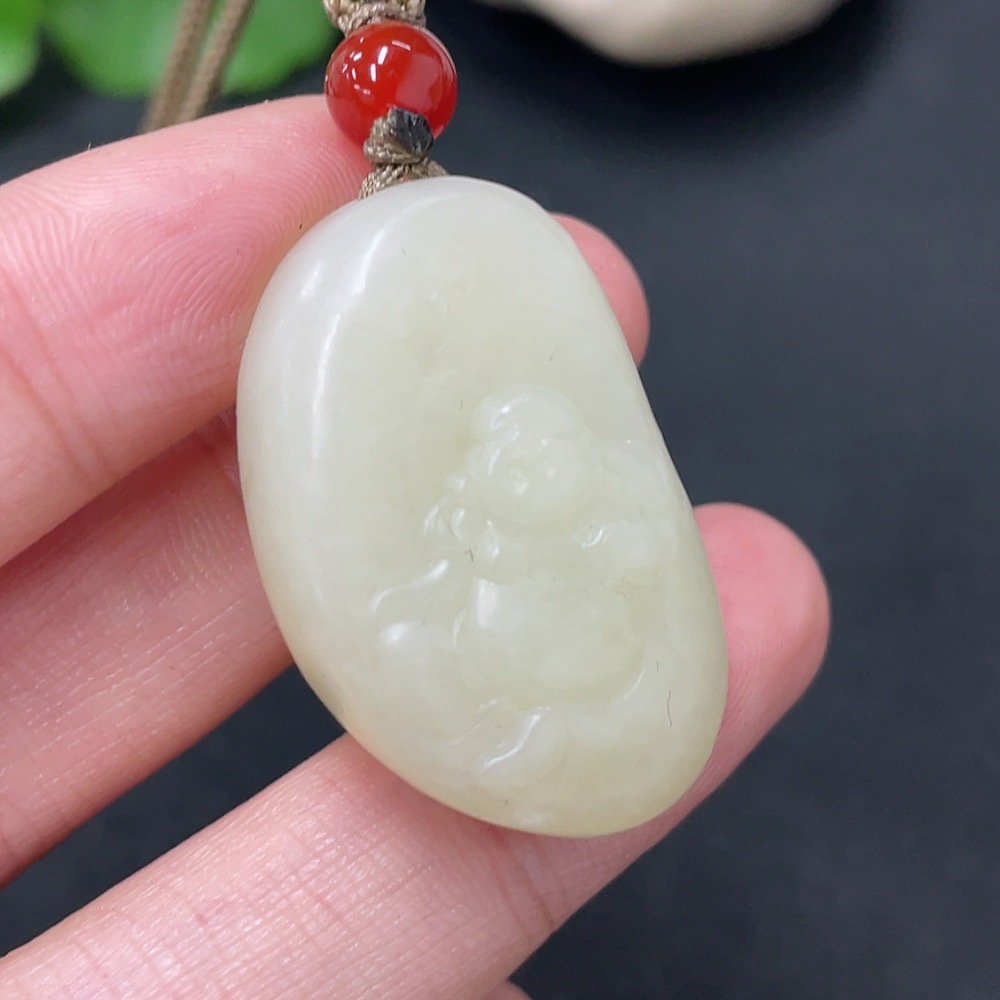 Hetian Jade Pendant - Buddha with Non-Hetian Jade Beads, Total Weight (including rope): 13.9g