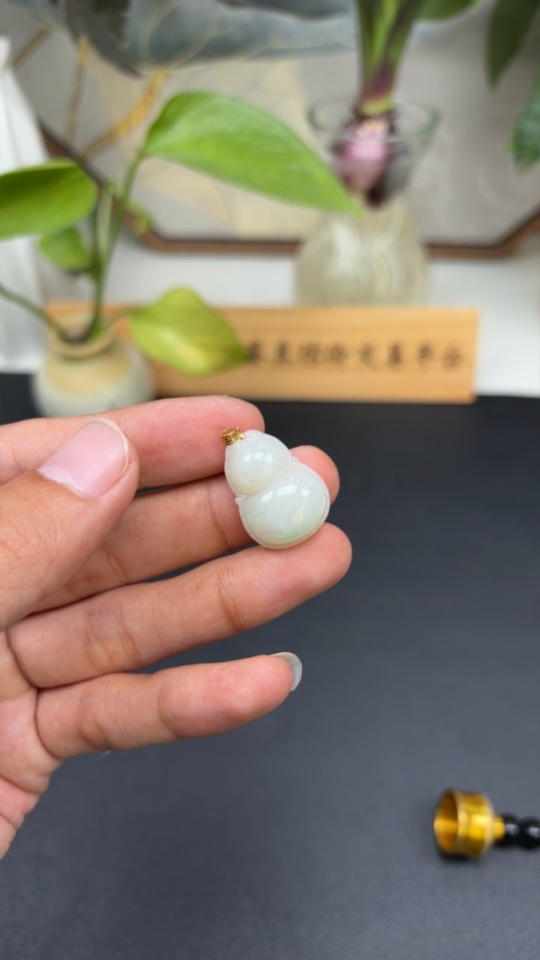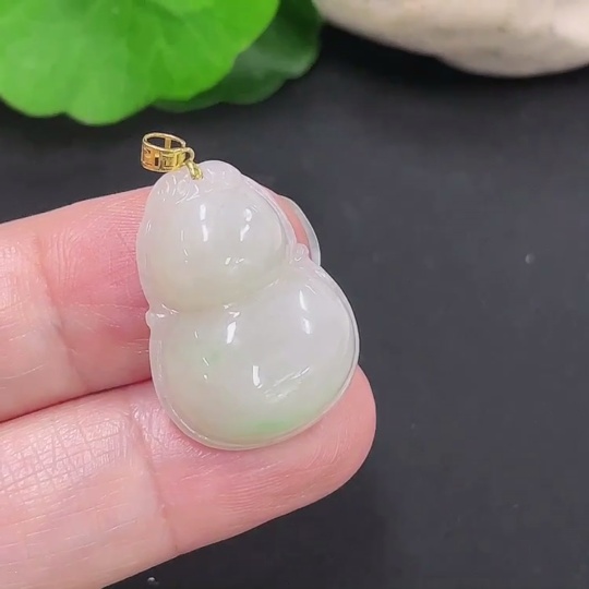 Jadeite Gourd Pendant 18K Gold Total Weight Approx. 4g