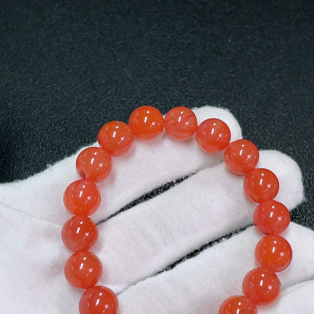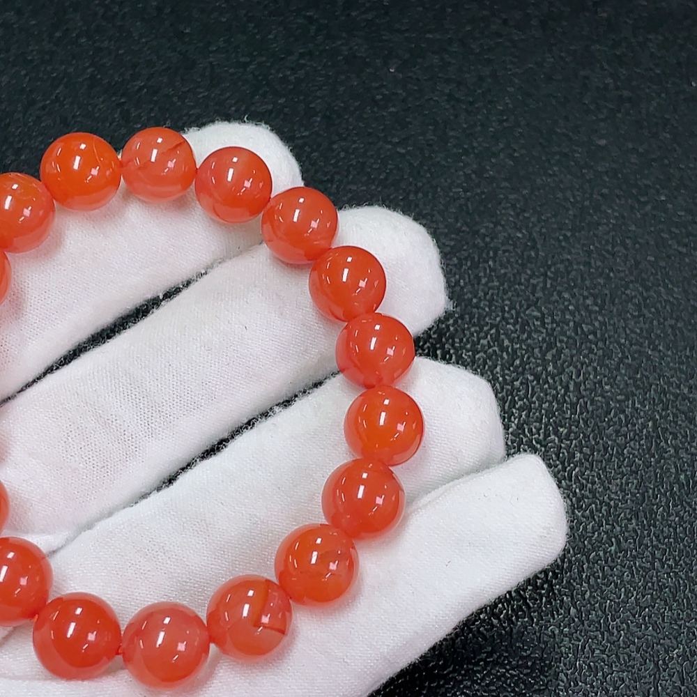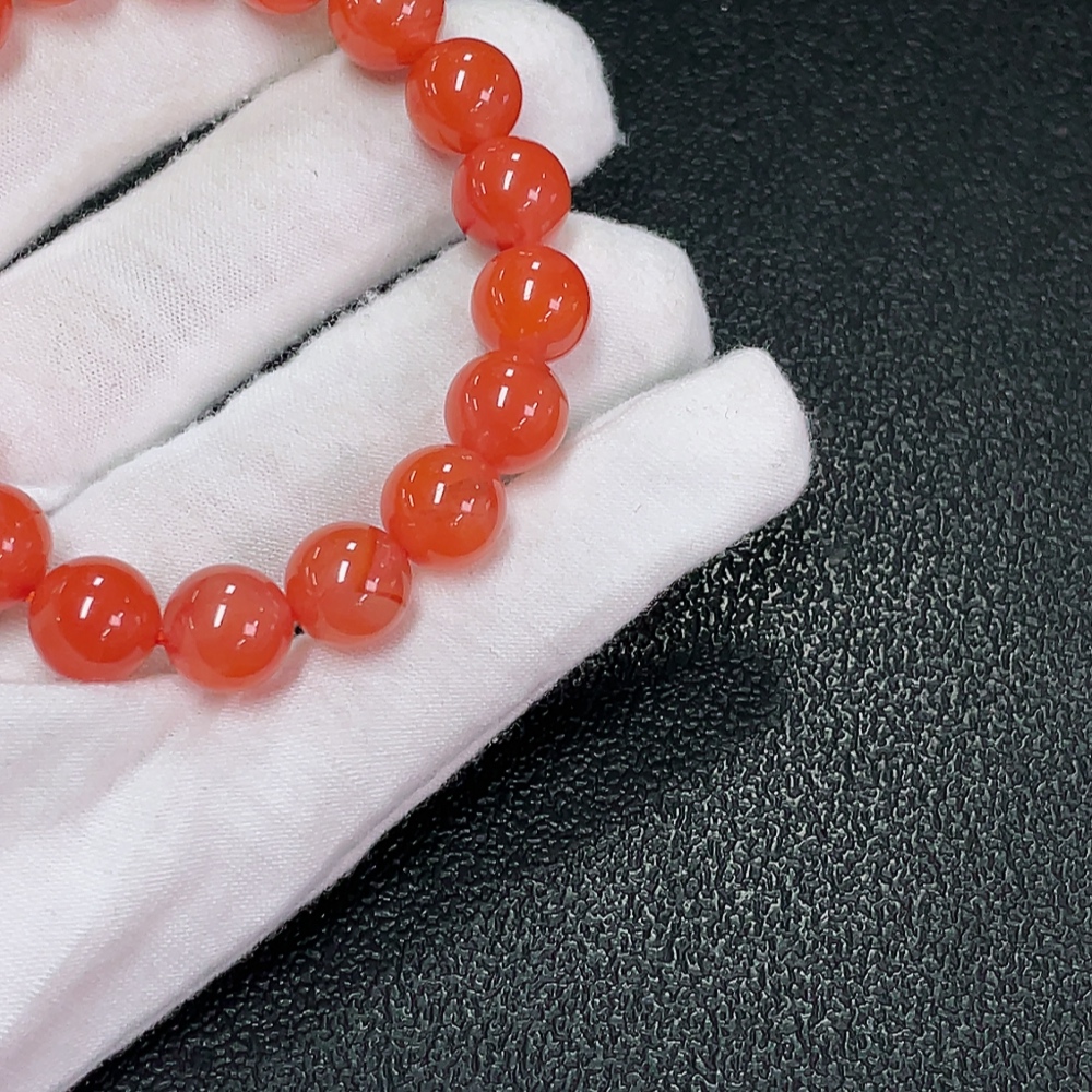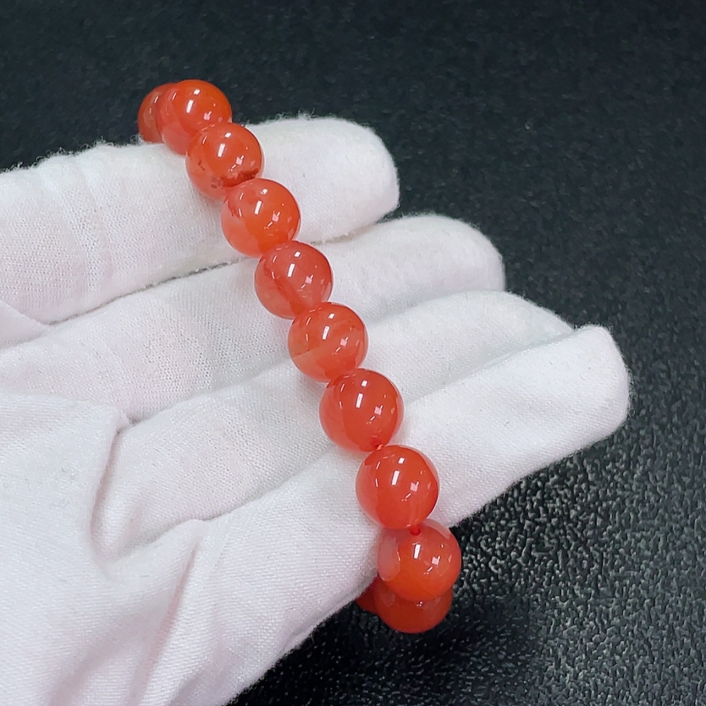 Red Agate Bracelet with Visible Organic Matter, Total Weight Approx. 23.38g, Size About 9.5mm
