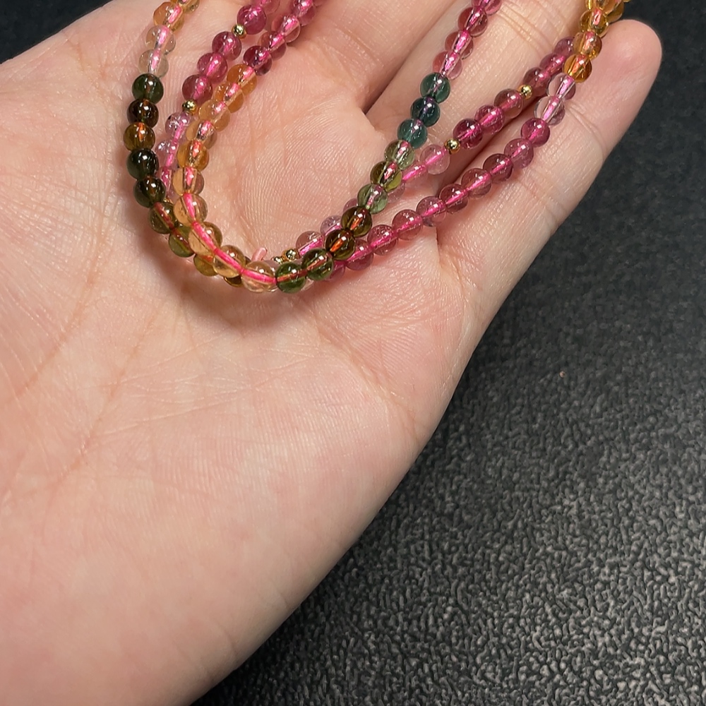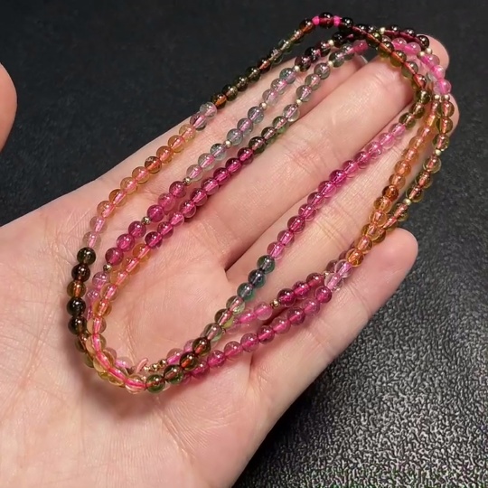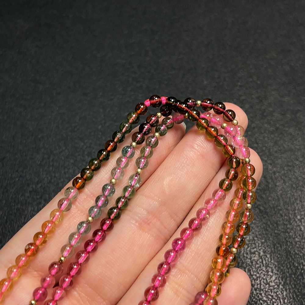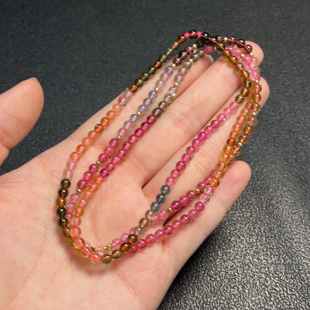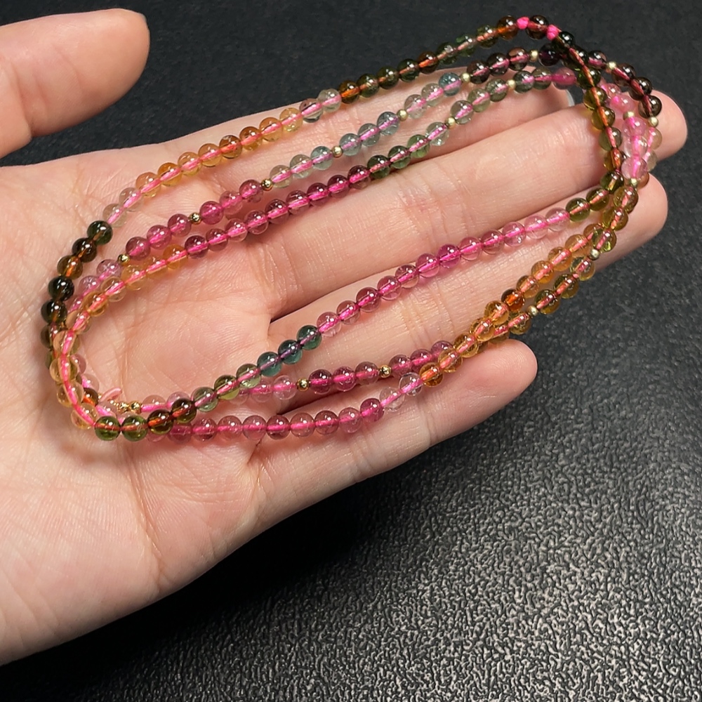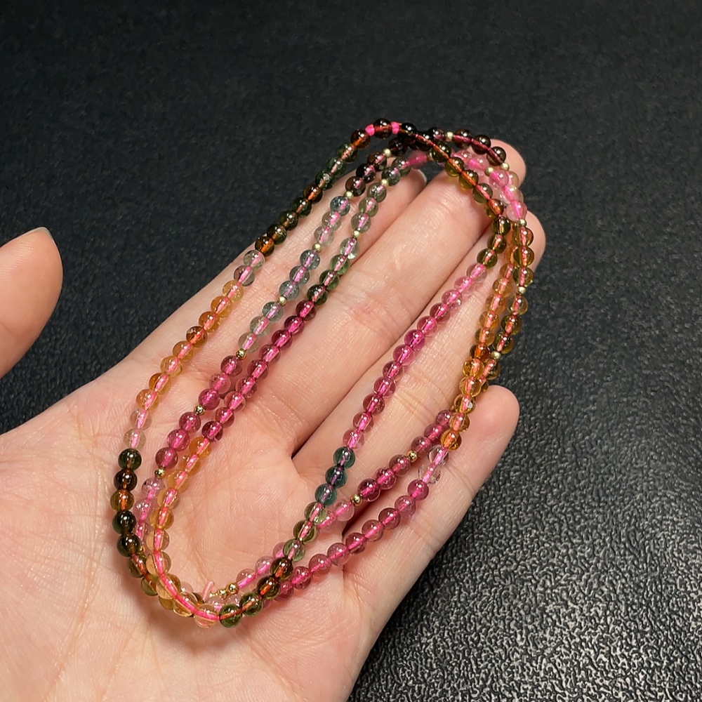 Tourmaline bead necklace with other mineral components, visible organic matter, total weight approx. 15.42g, approx. 3.8mm bead size, non-gold