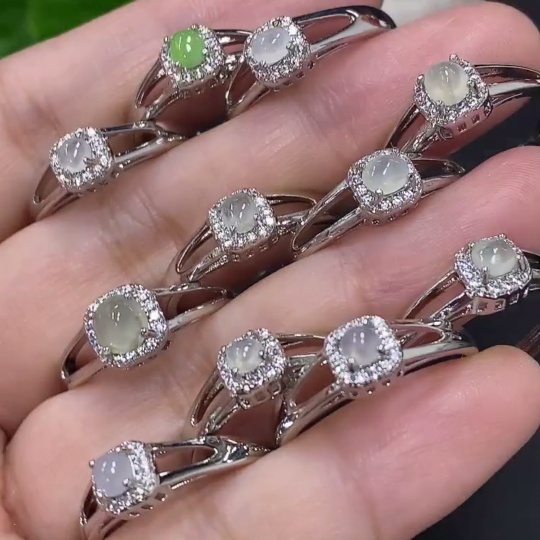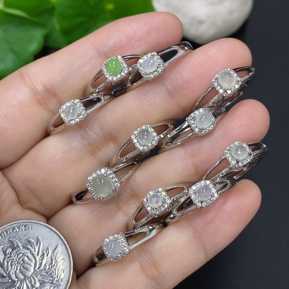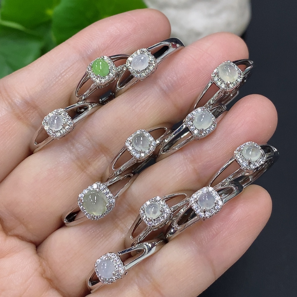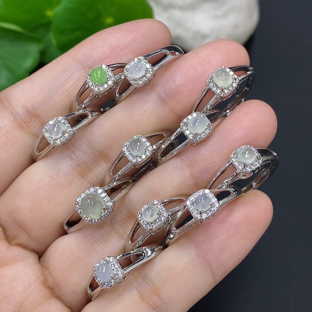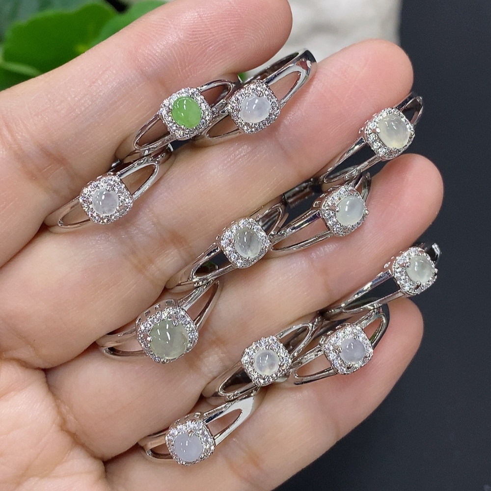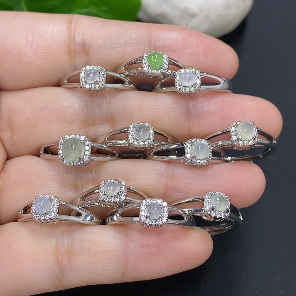 Jadeite Cabochon Inlaid Ring Sell as a Lot Adjustable Size Non-Gold Inlaid