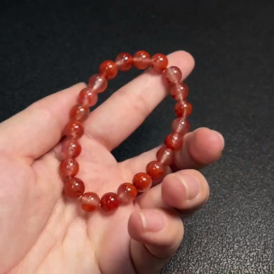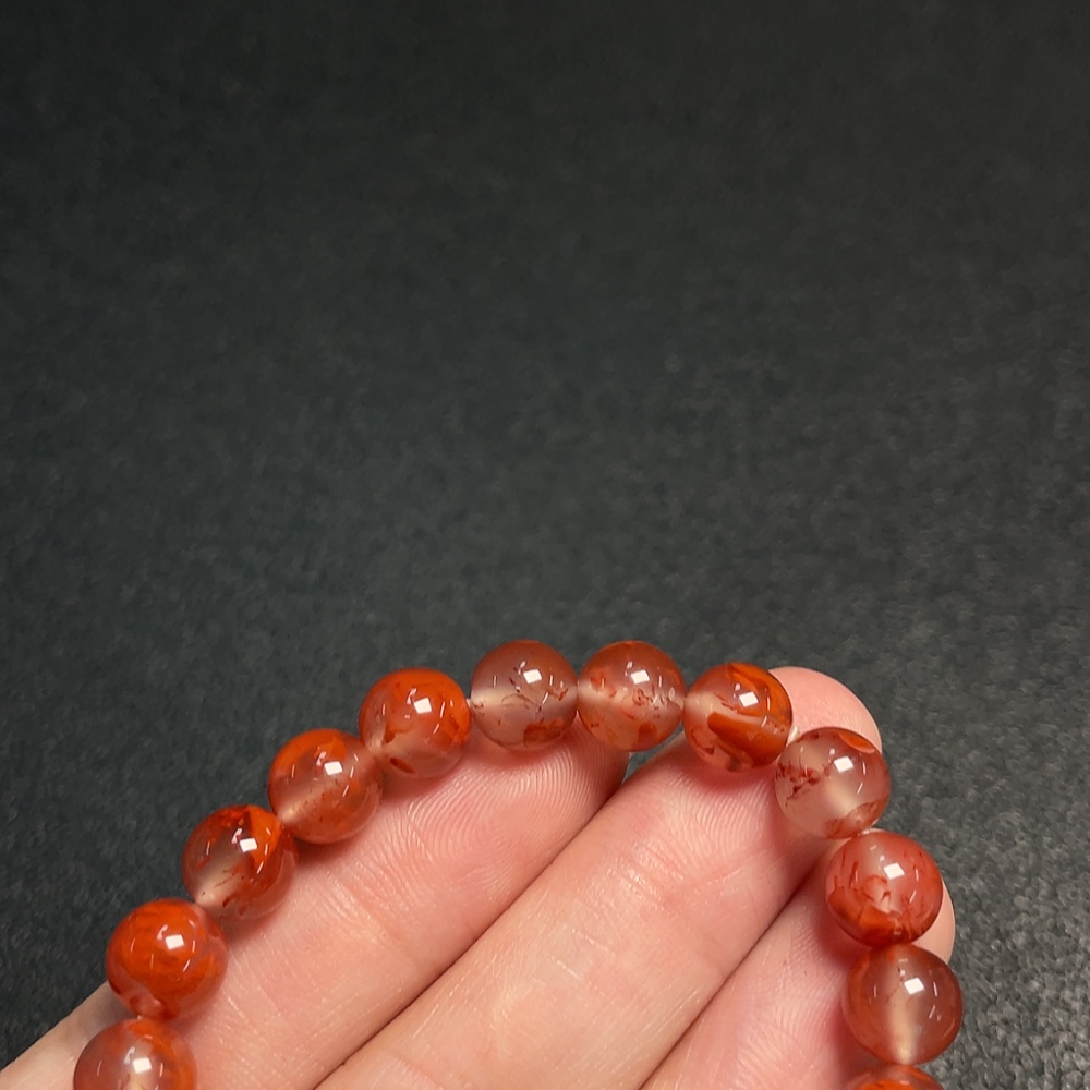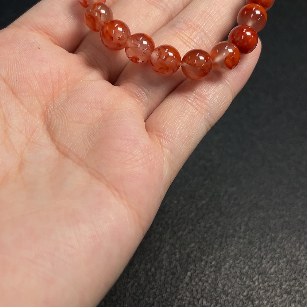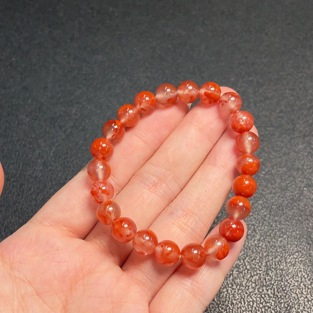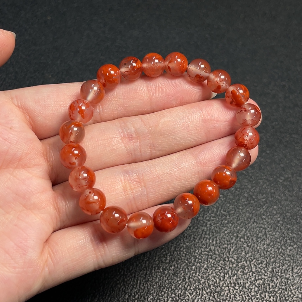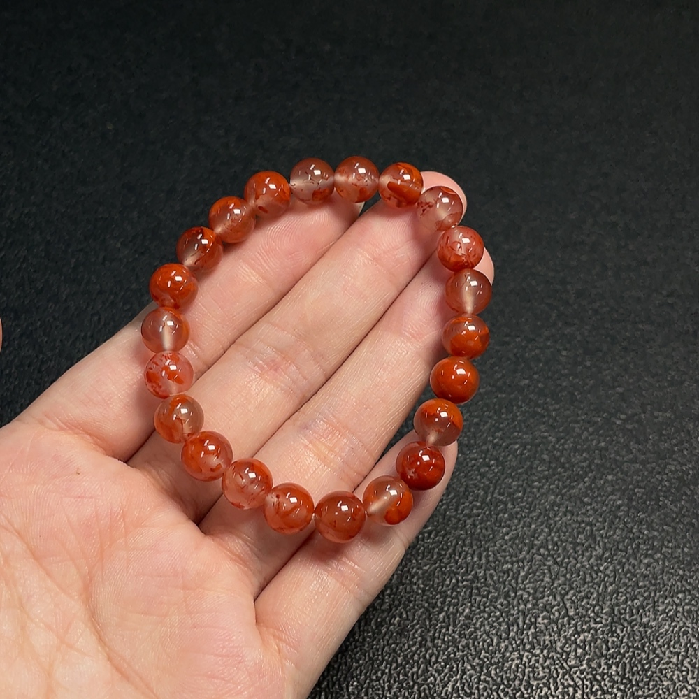 South Red Agate Bracelet with Visible Organic Matter, Total Weight Approx. 15.59g, Size About 7.8mm