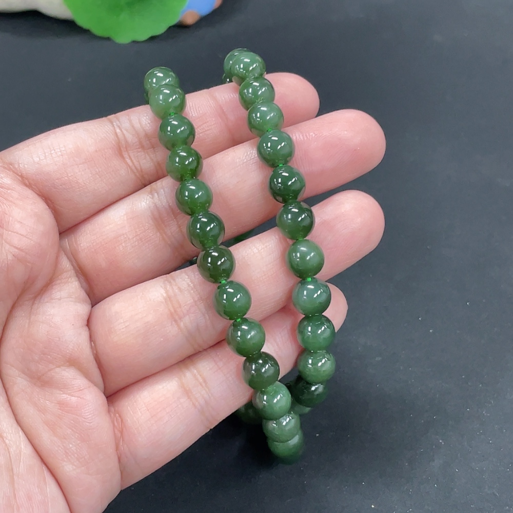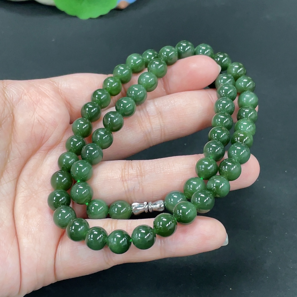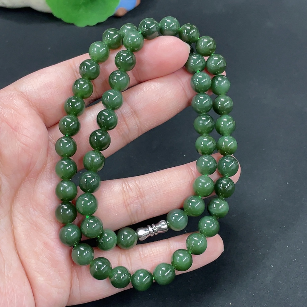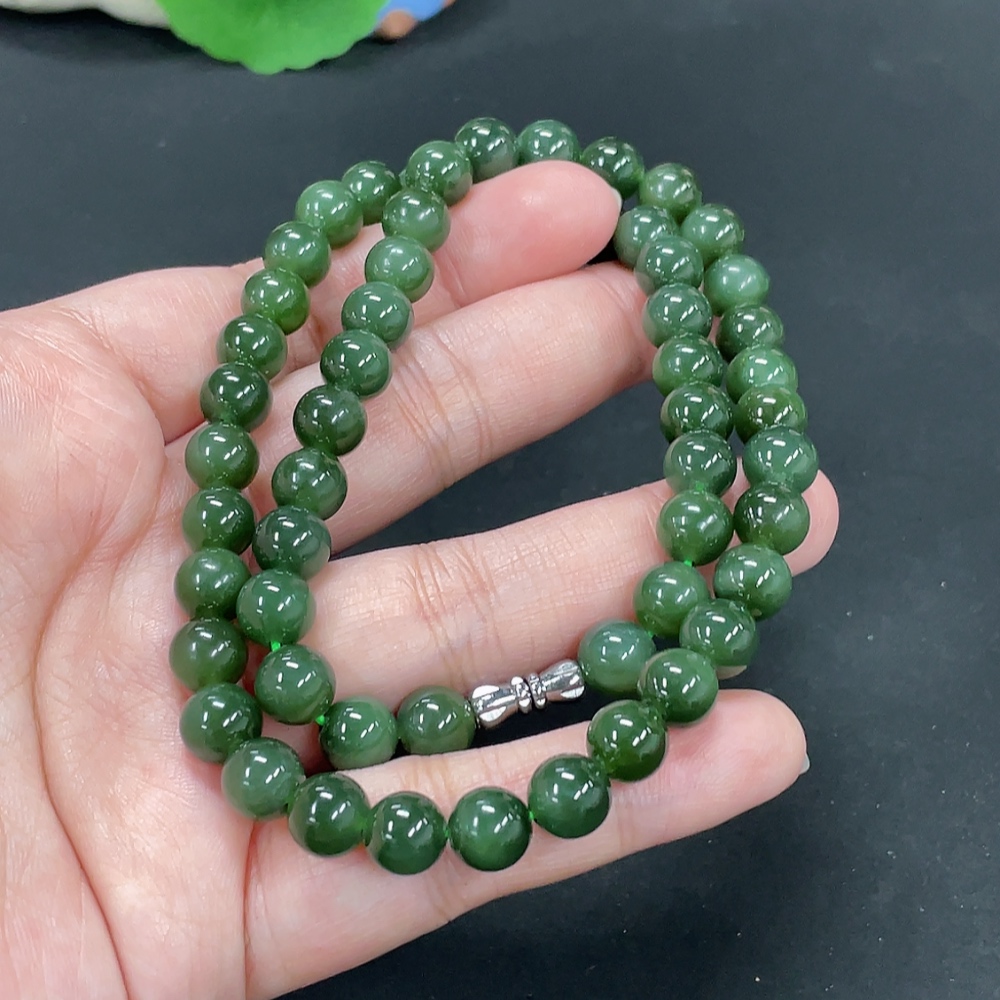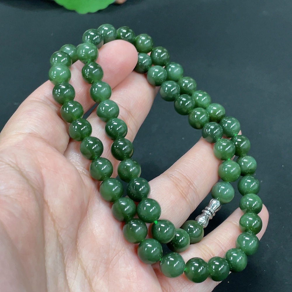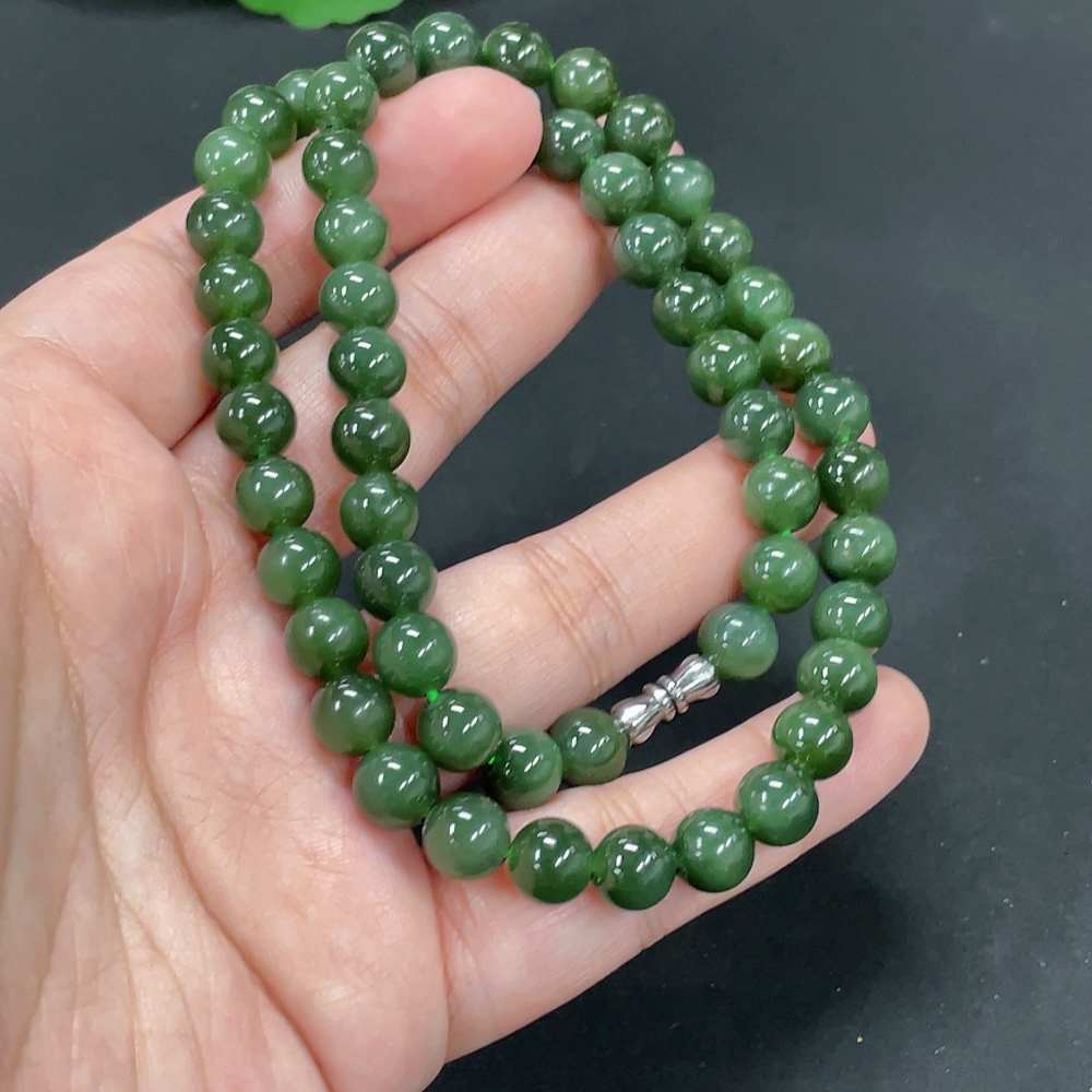 Hetian Jade Jasper Bead Necklace Approx. 7.7mm Total Weight Approx. 44.6g
