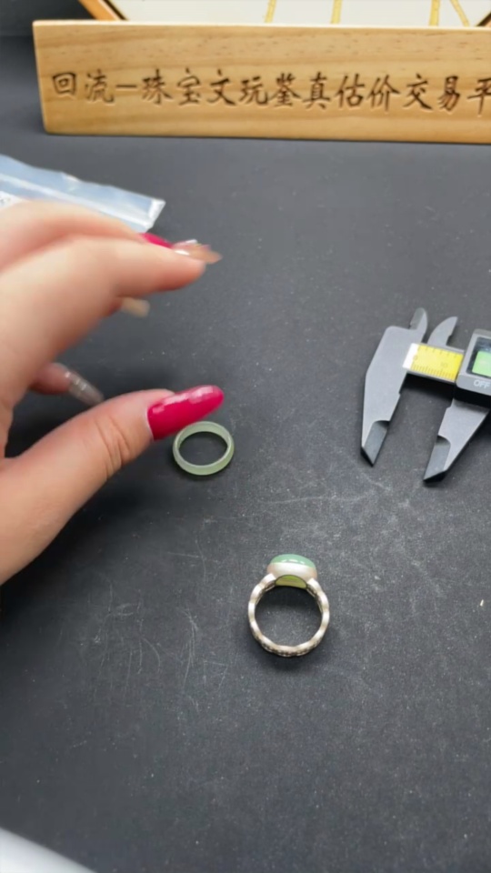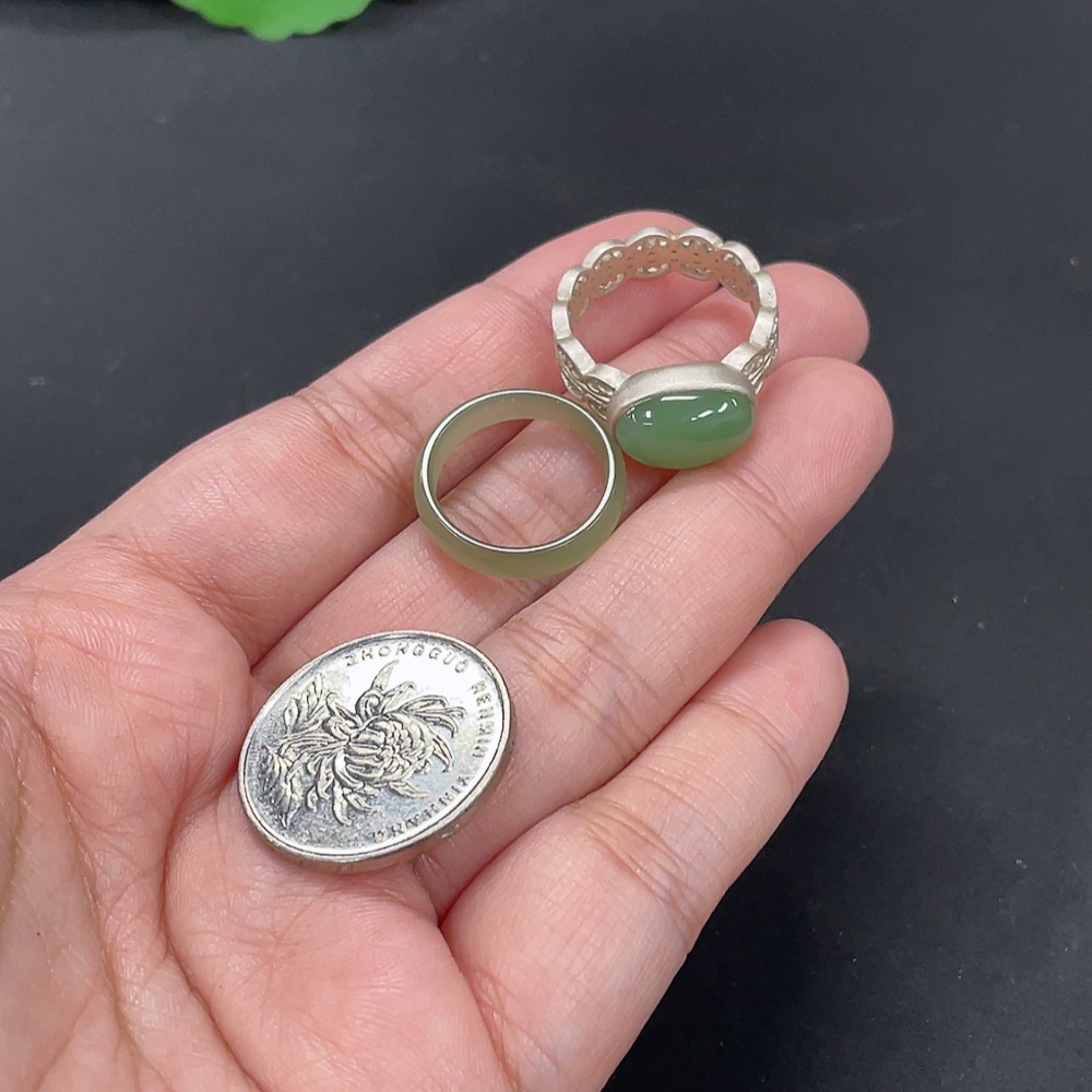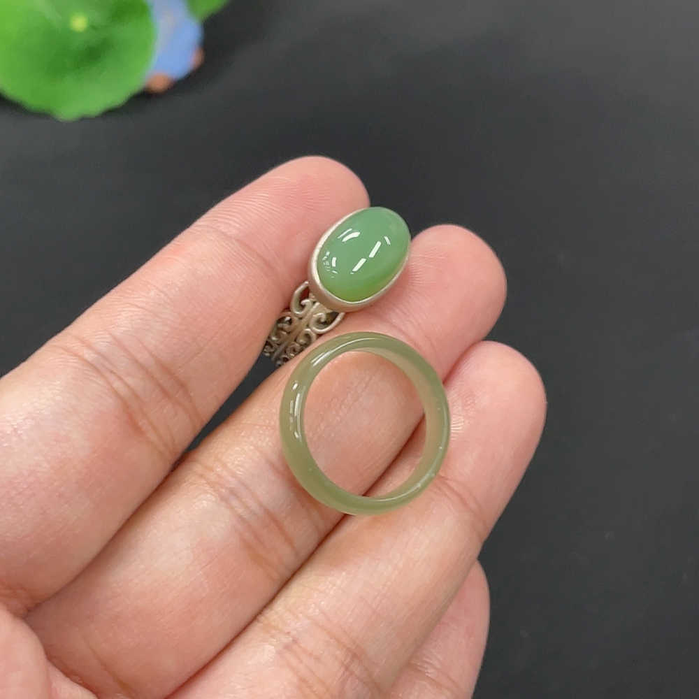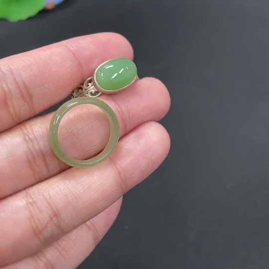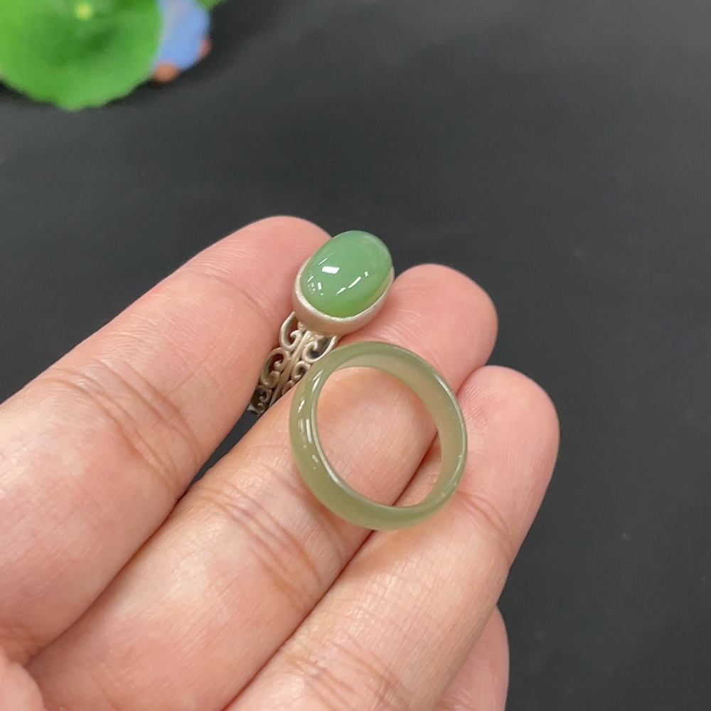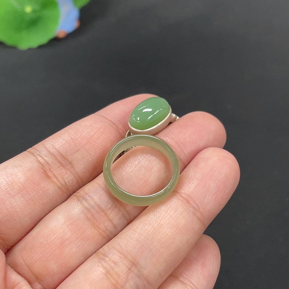 Hetian Jade Ring with Inlaid Ring, Total Weight Approx. 6.5g, Non-Gold
