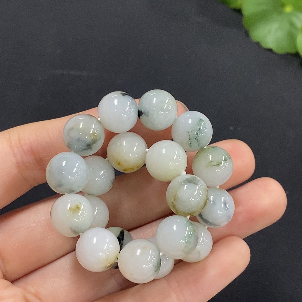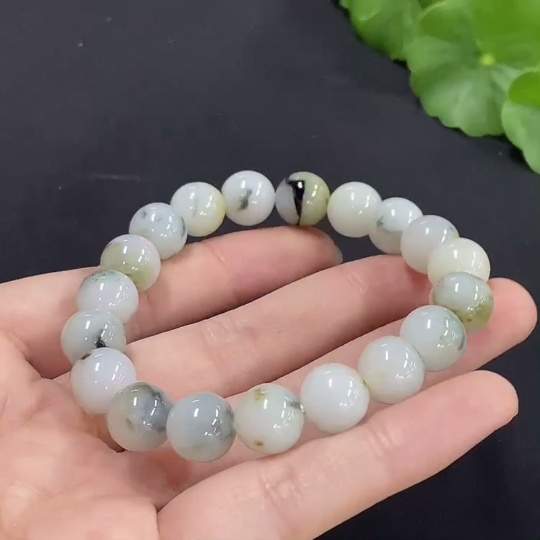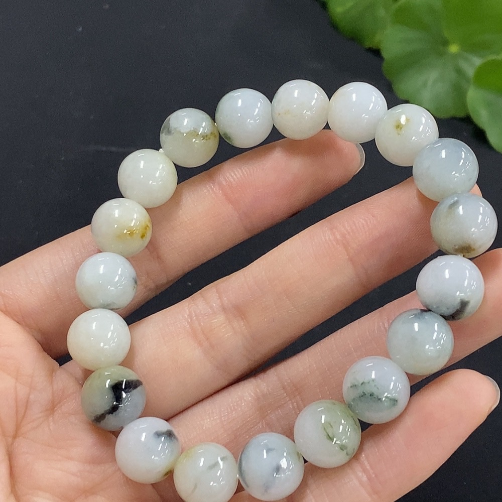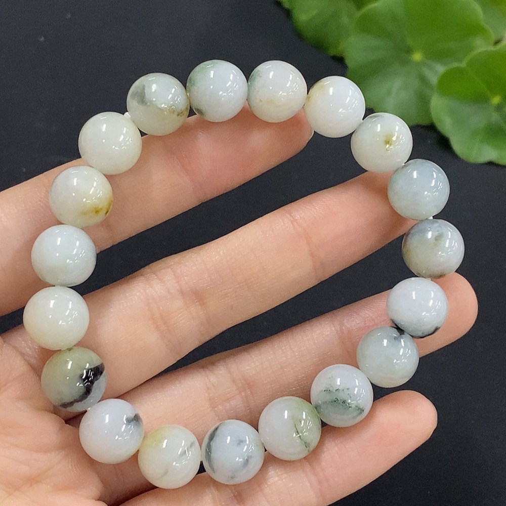 Jadeite Bracelet Approx. 10.3mm Beads Total Weight 35.75g with Other Mineral Components