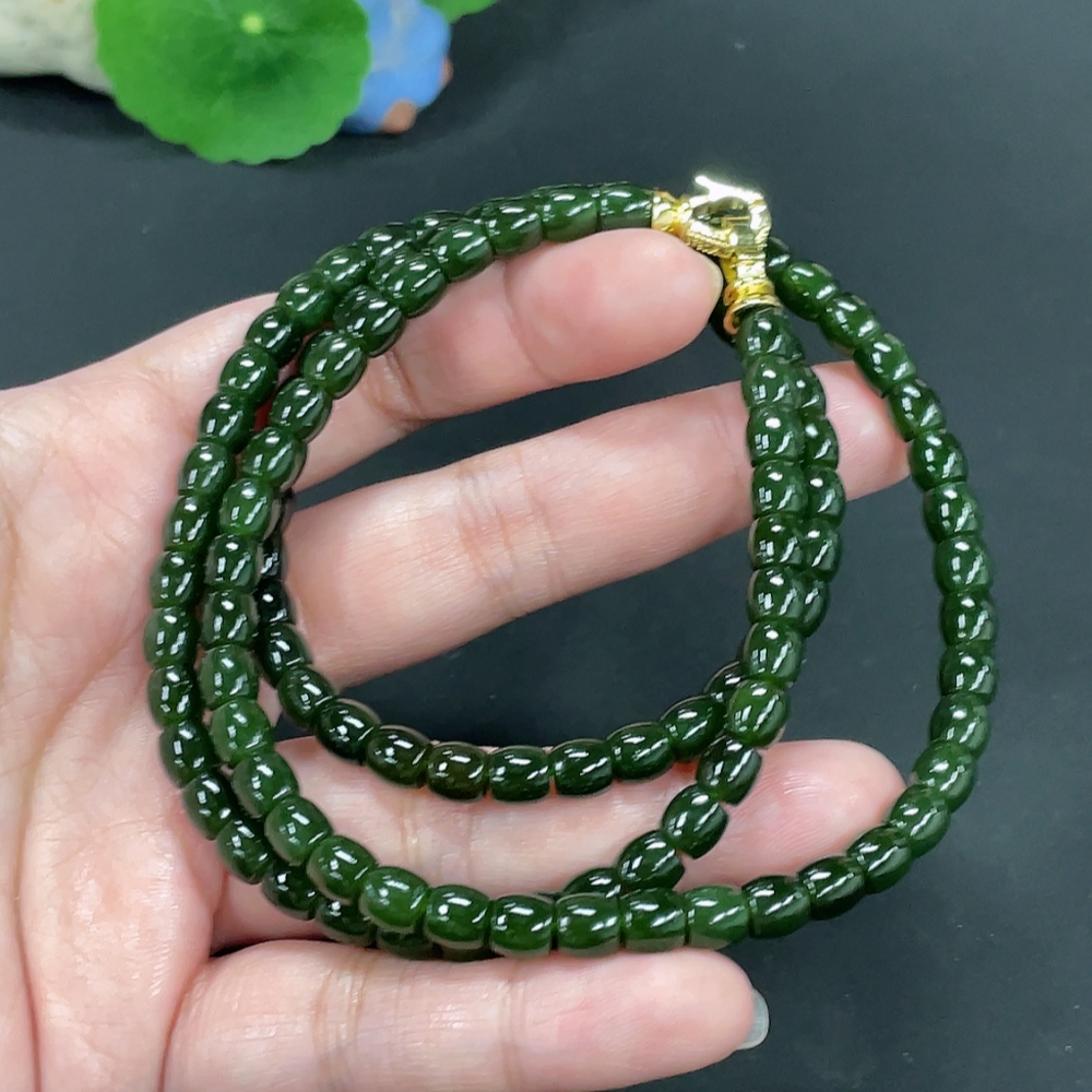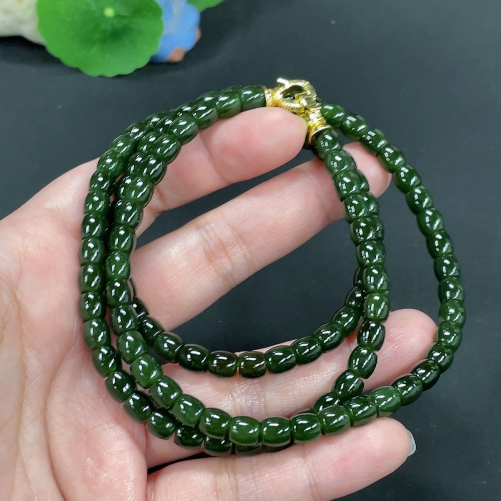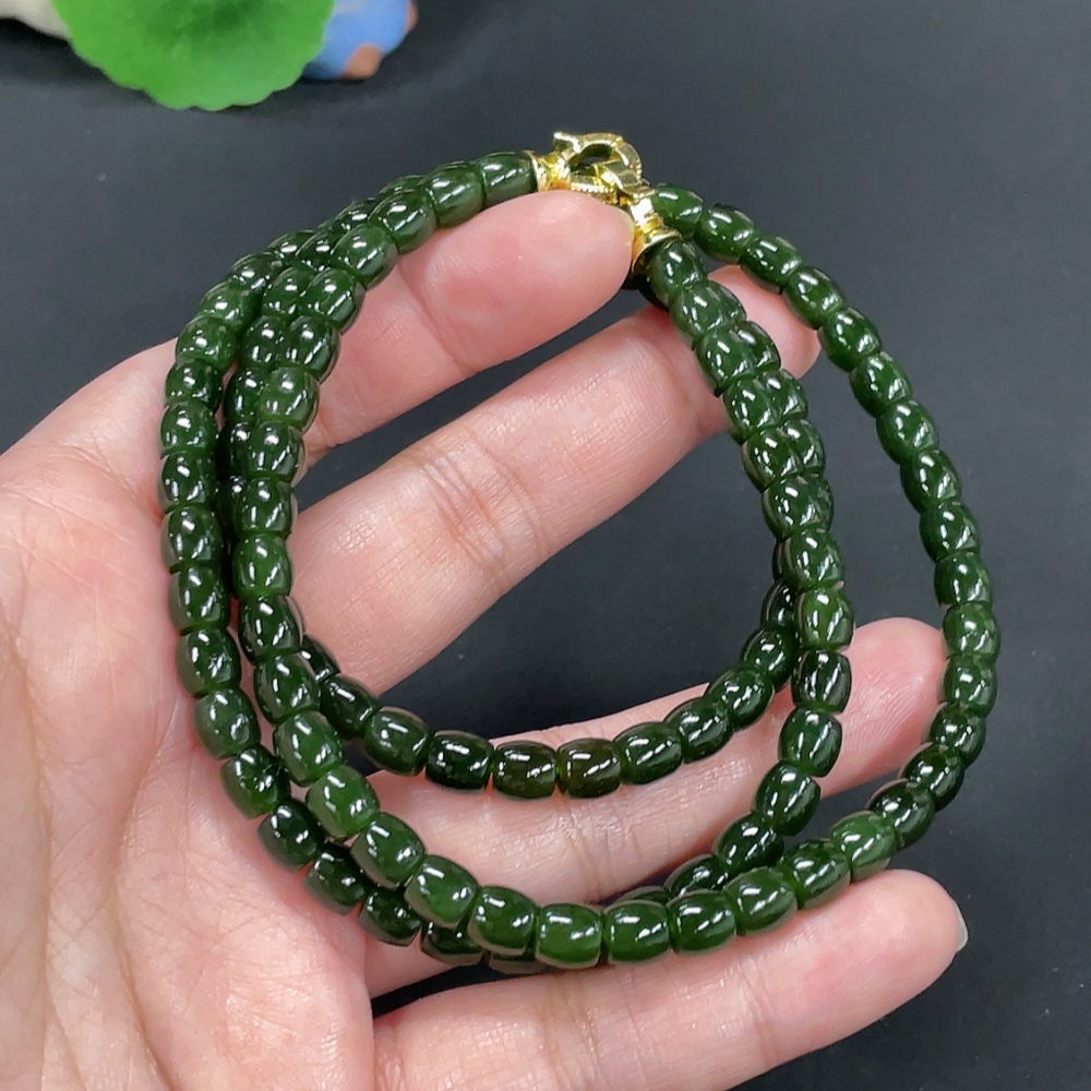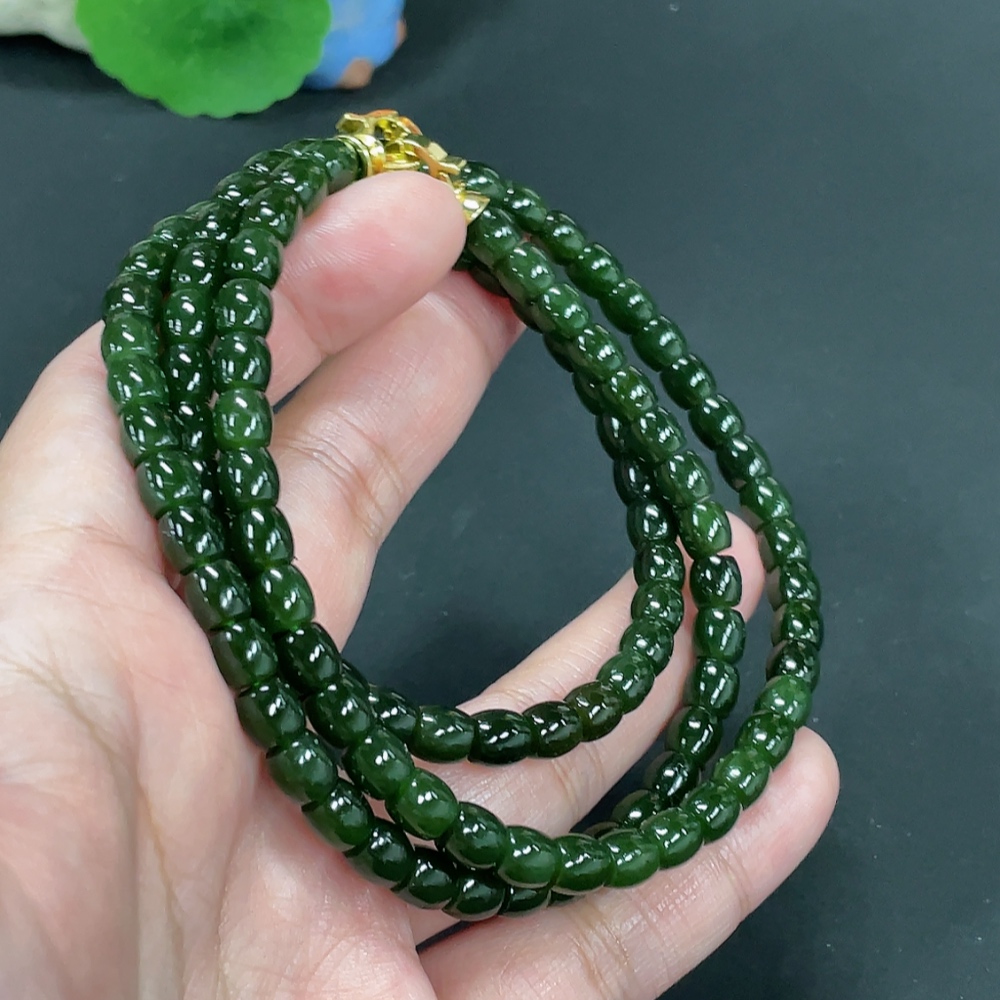 Hetian Jade Bead Necklace Approx. 5.9mm Total Weight Approx. 47.1g Non-Gold