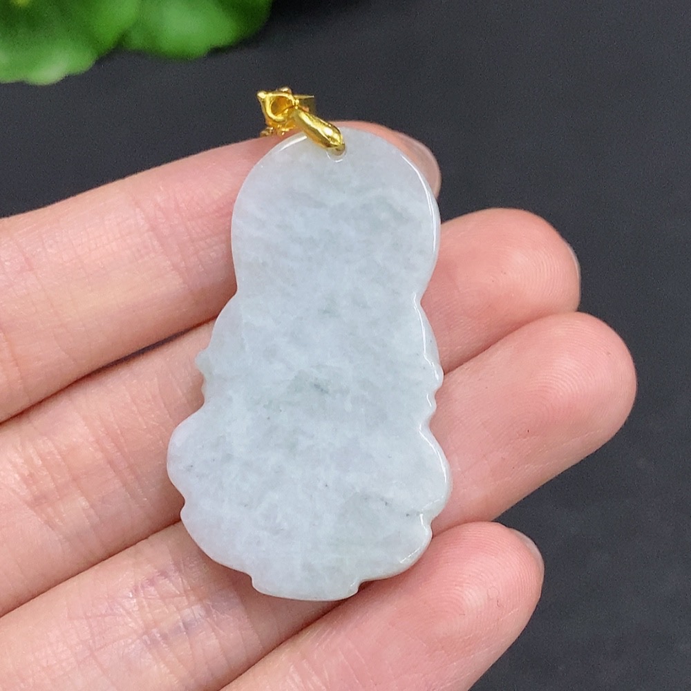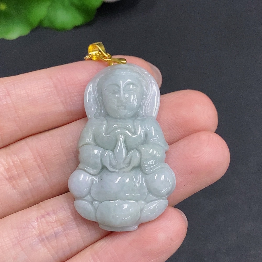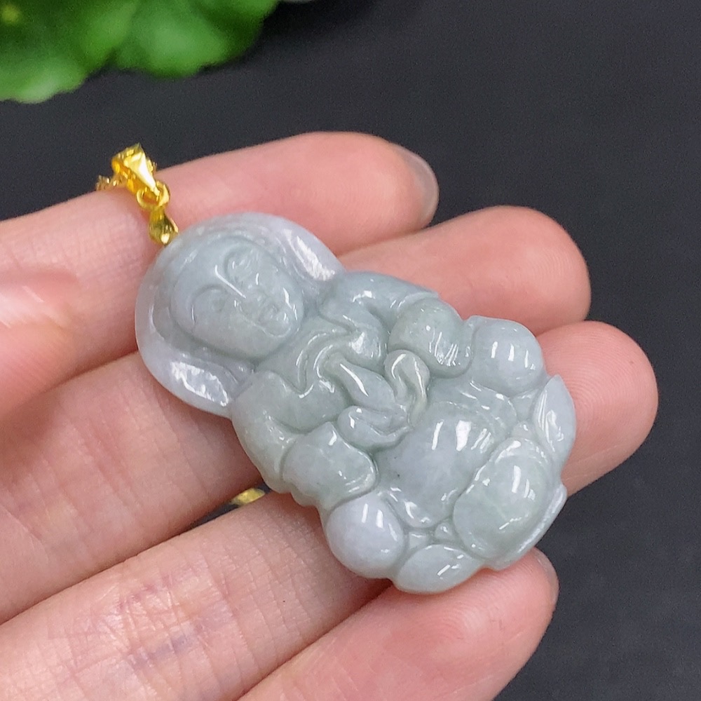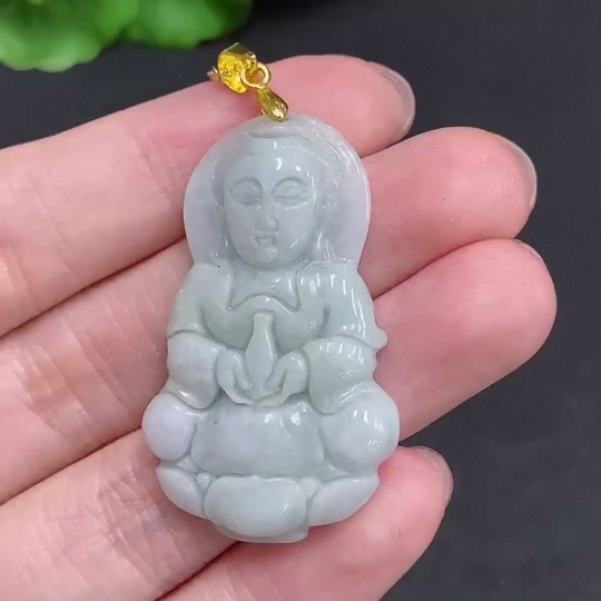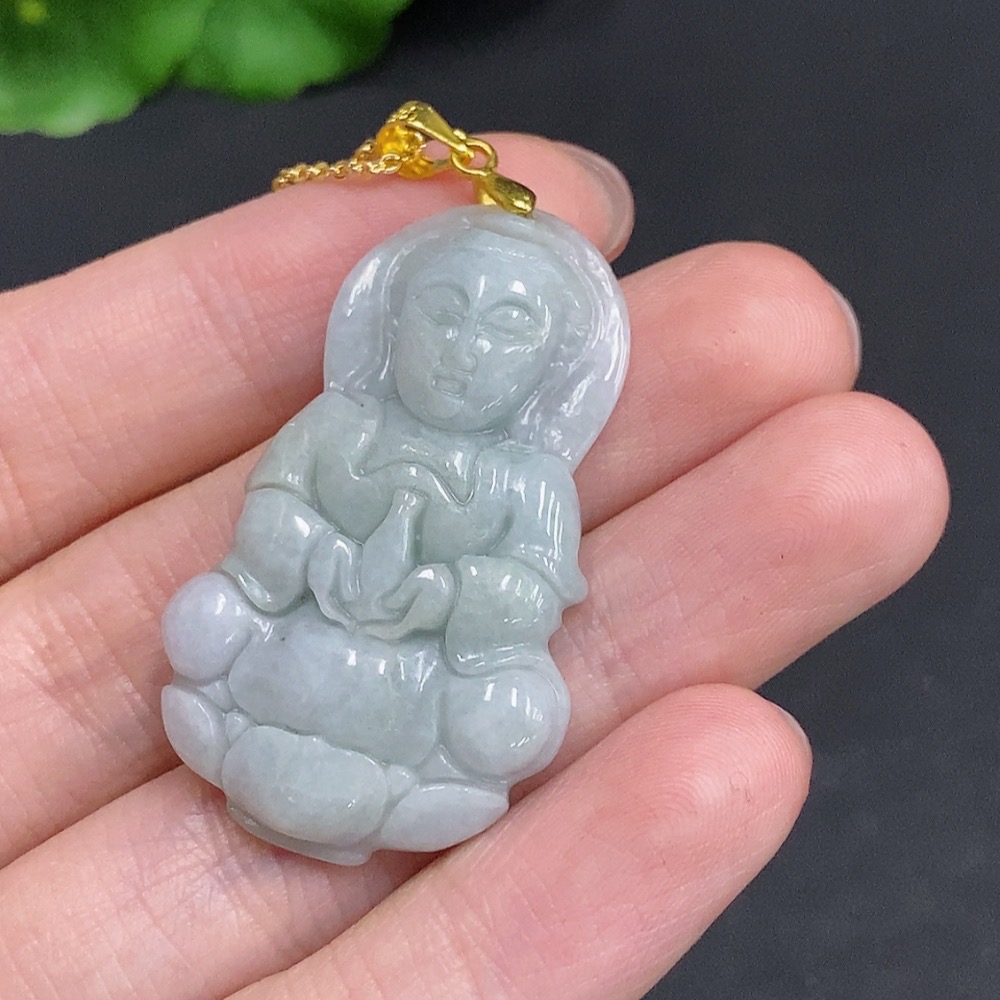 Jadeite Guanyin Pendant Non-Gold Inlaid Total Weight Approx. 12.1g (Including Chain)