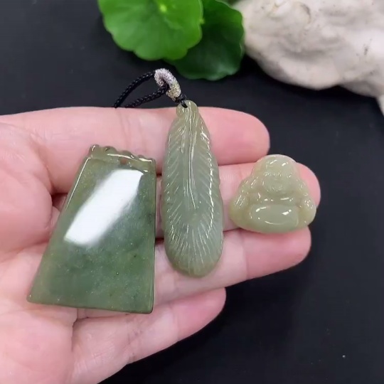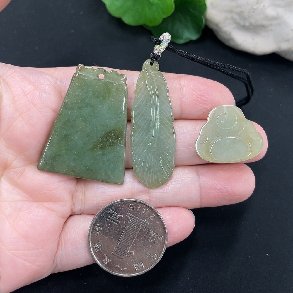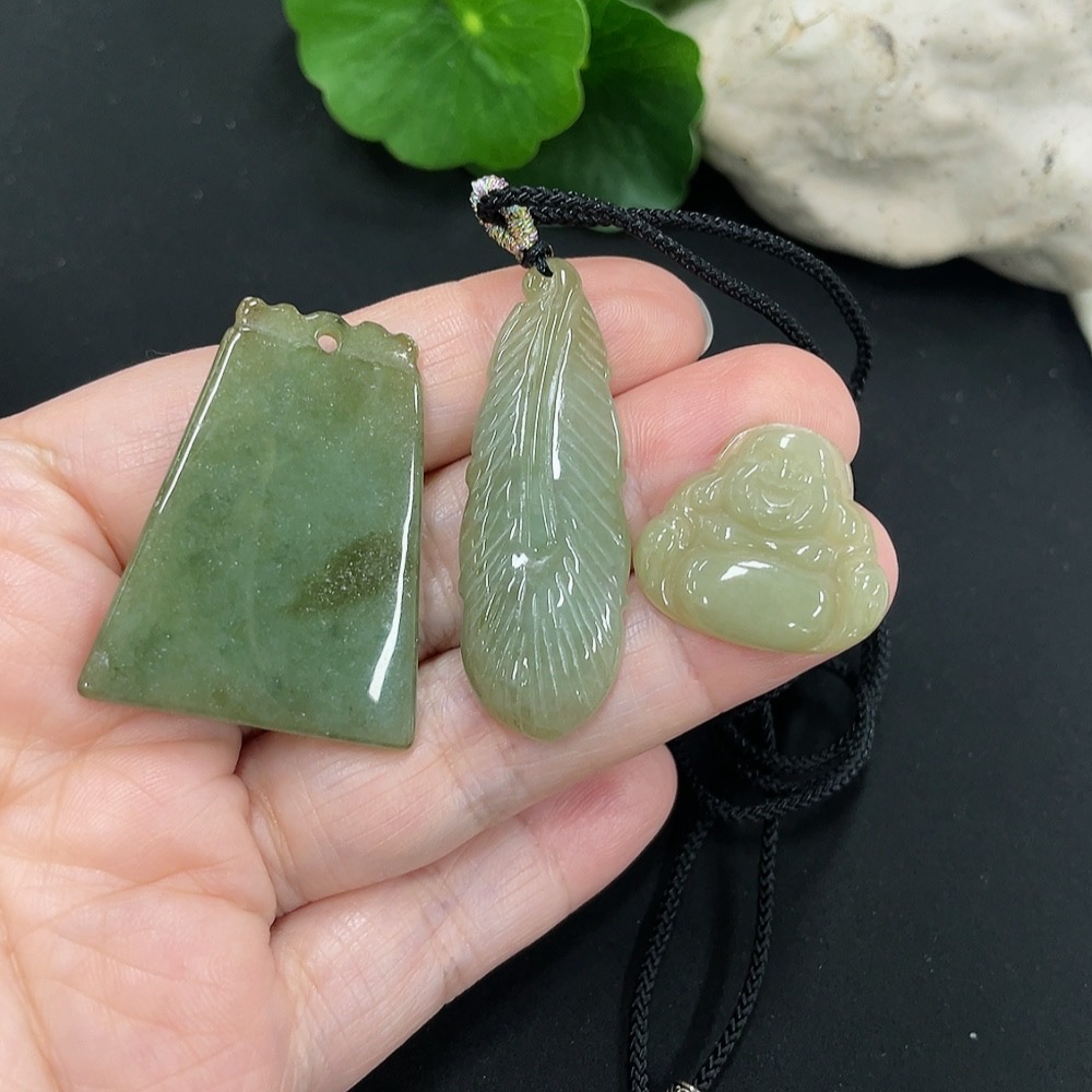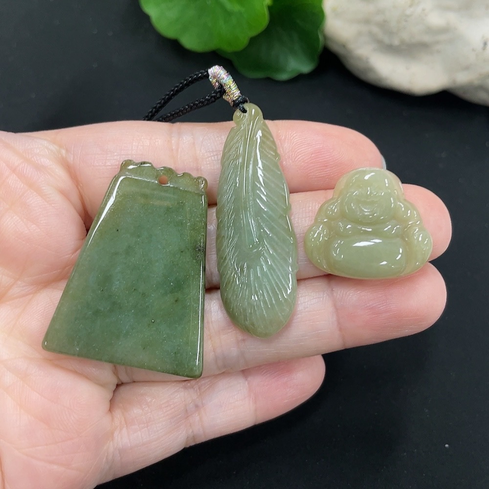 Jadeite Pendants Sell as a Lot (Non-Gold Inlaid)