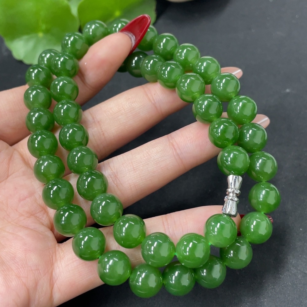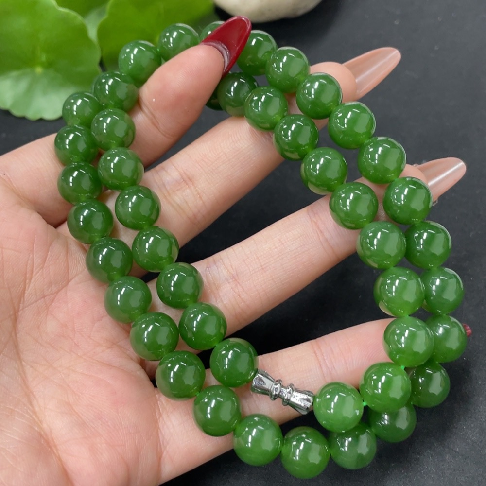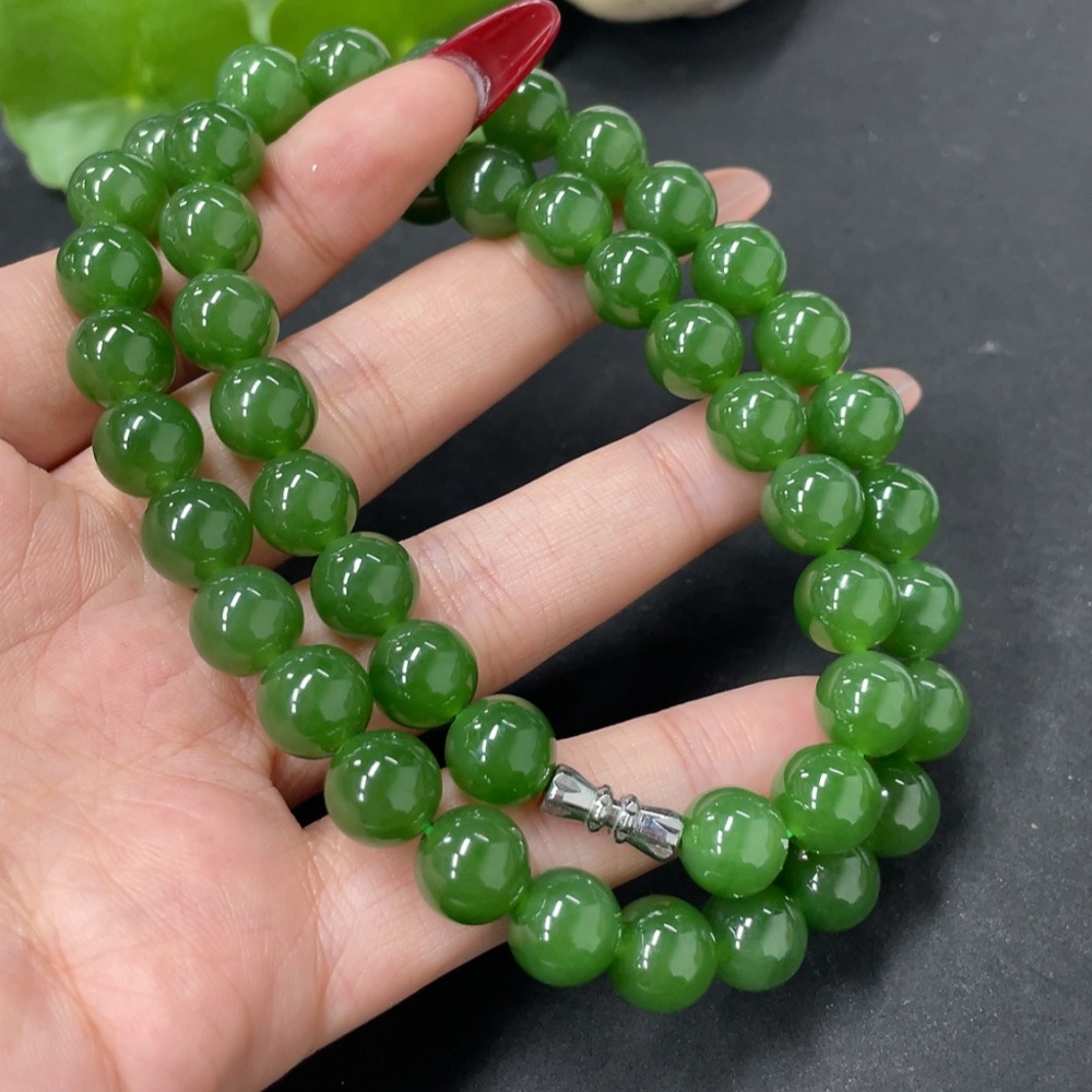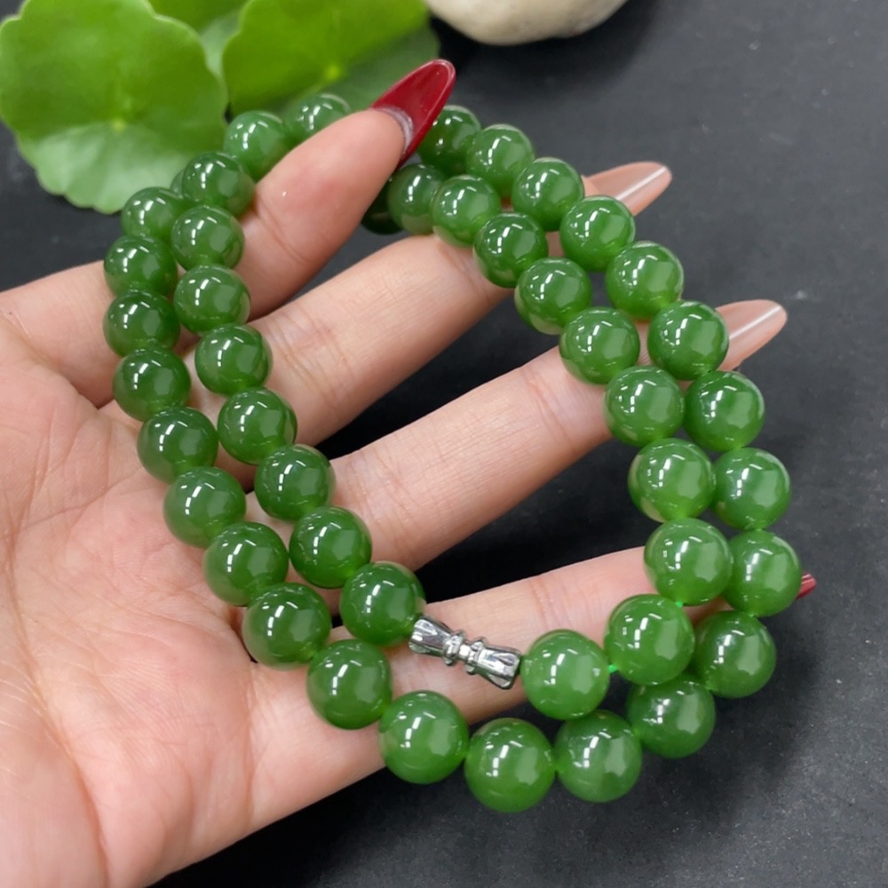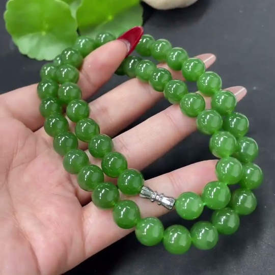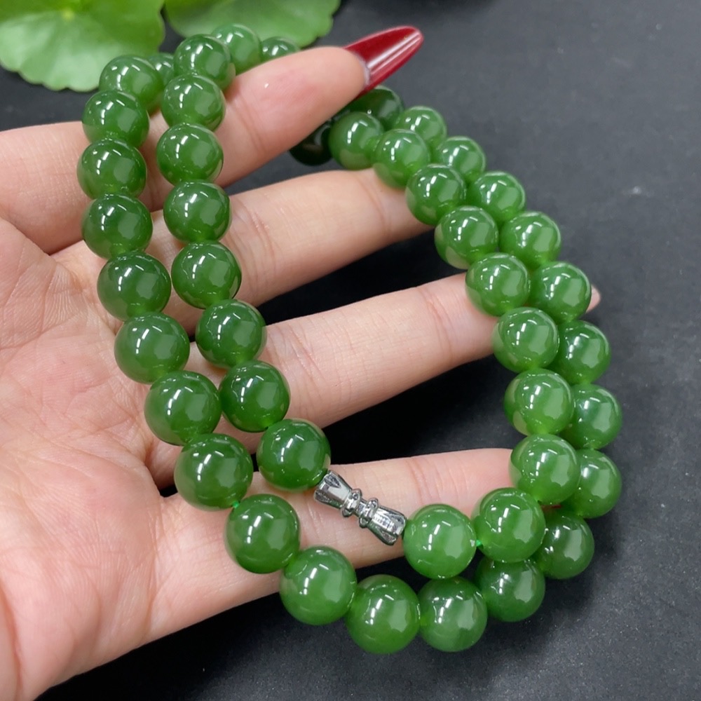 Hetian Jade Bead Necklace Non-Gold Approx. 9.6mm Total Weight Approx. 71.8g
