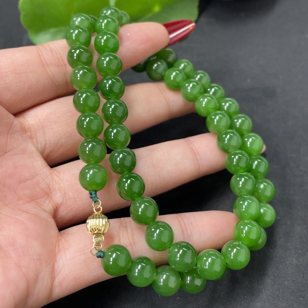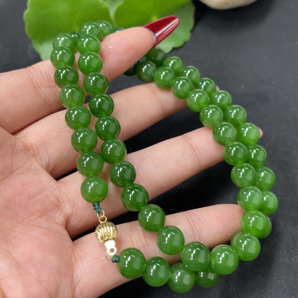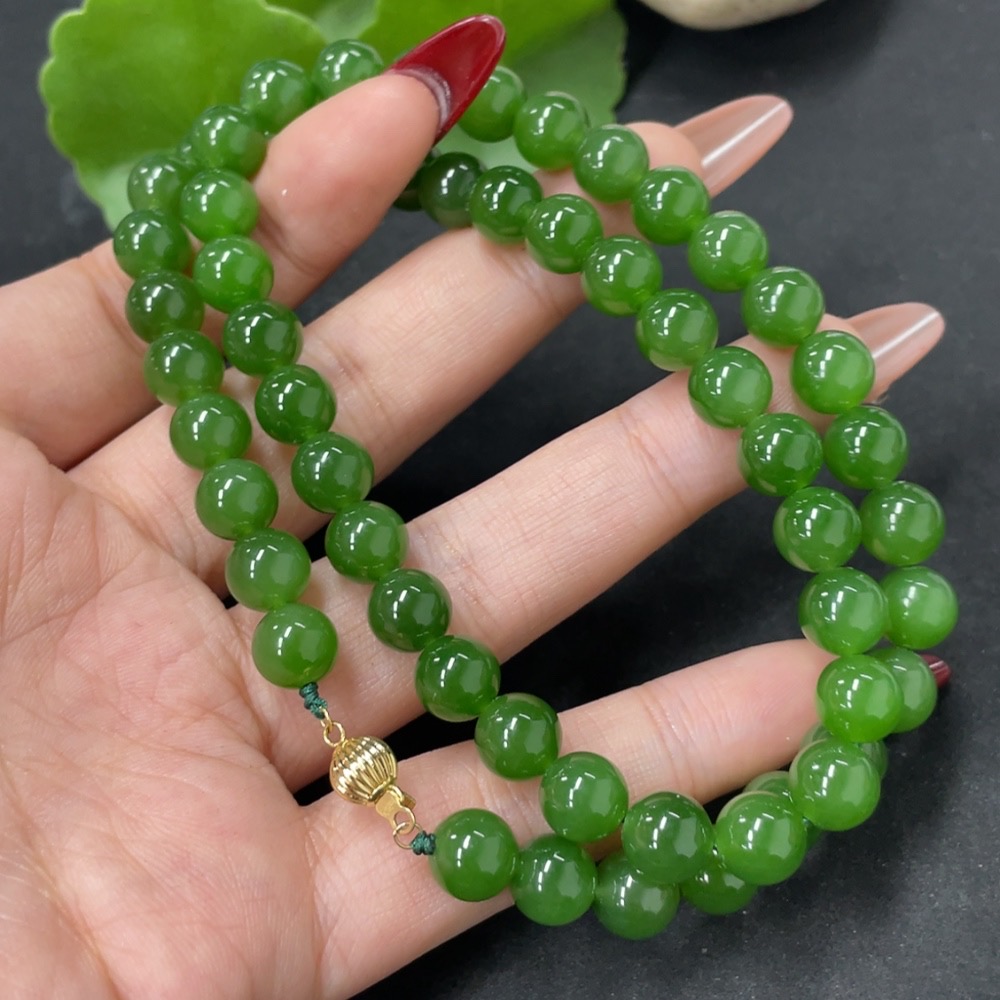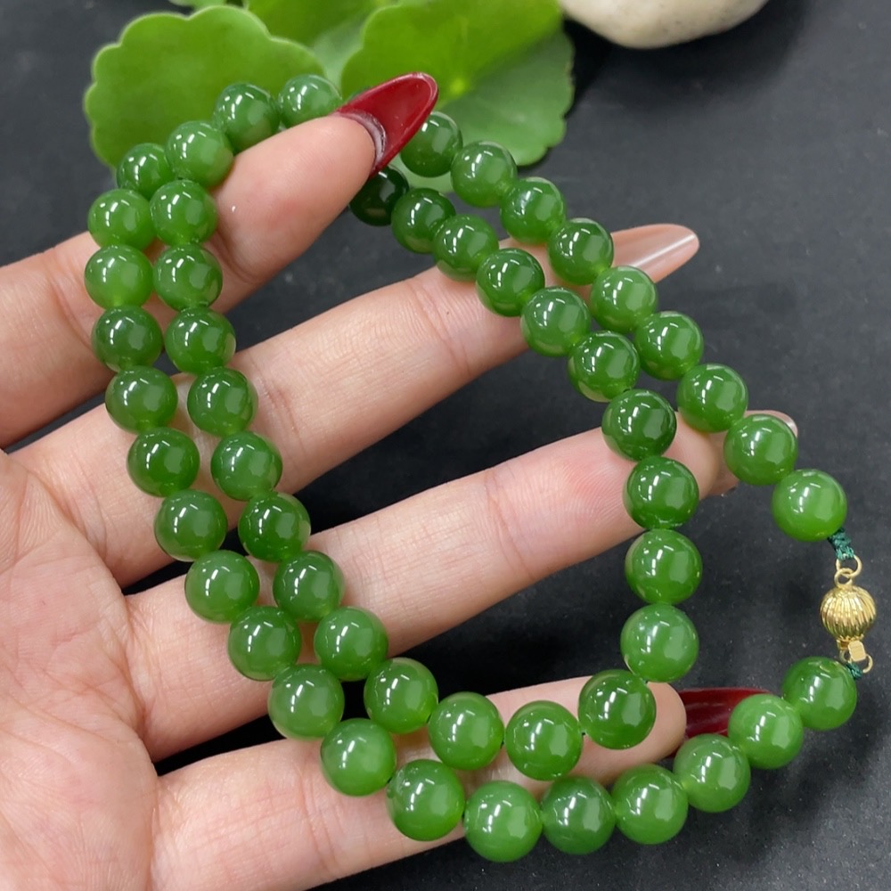 Hetian Jade Bead Necklace Non-Gold Card 7.6mm Approx. Total Weight About 44.6g