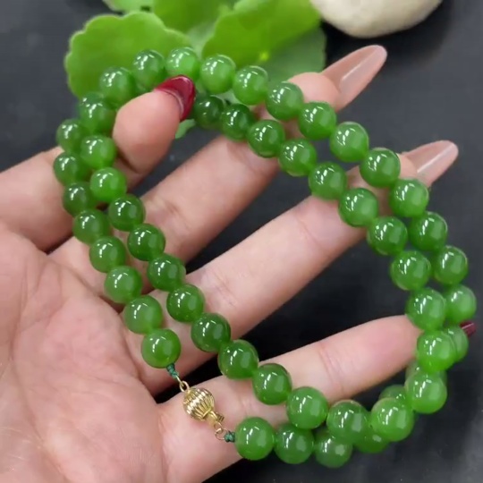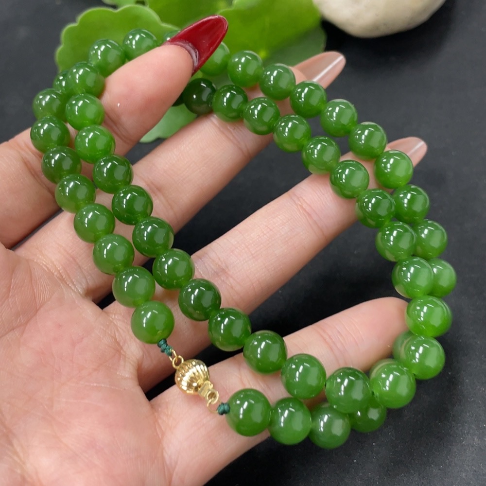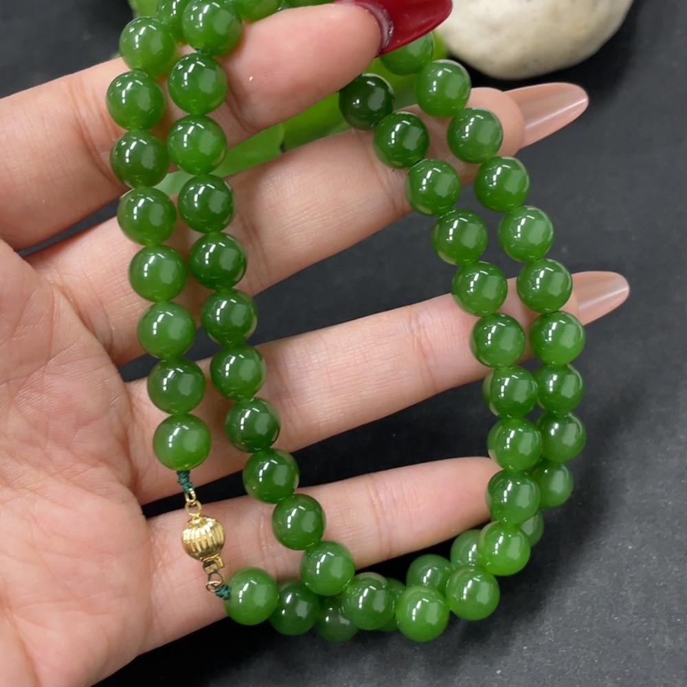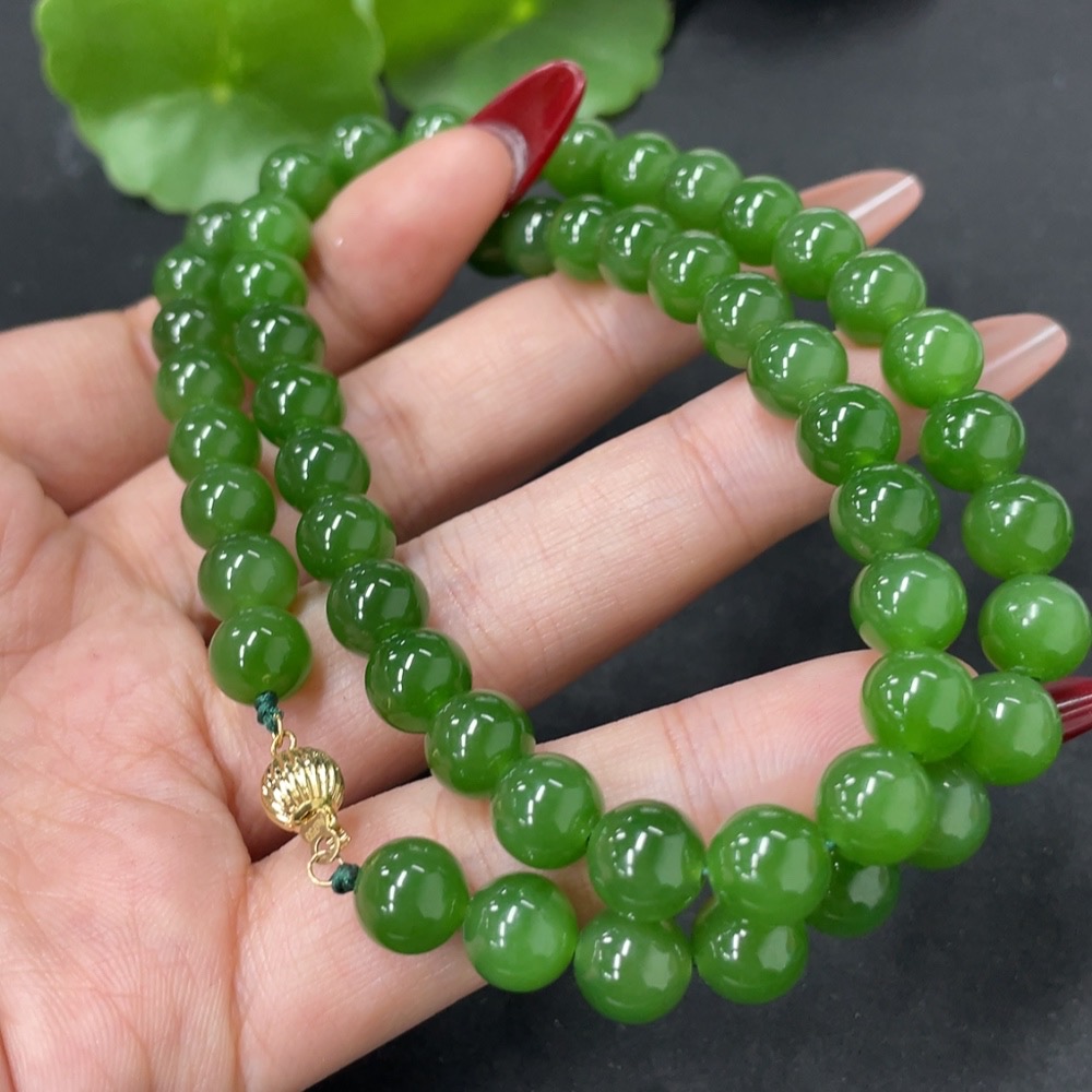 Hetian Jade Bead Necklace Non-Gold Card 7.6mm Approx. Total Weight About 44.6g