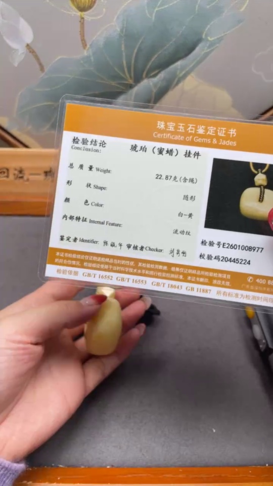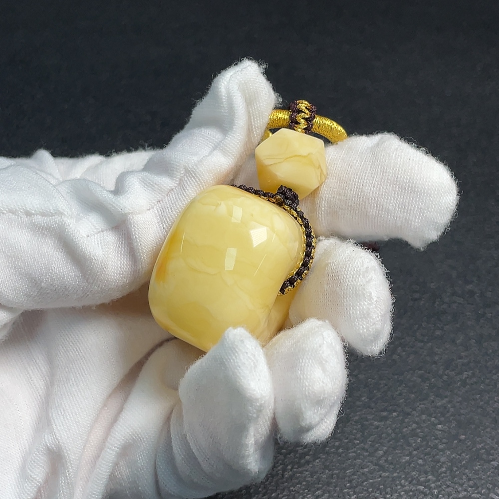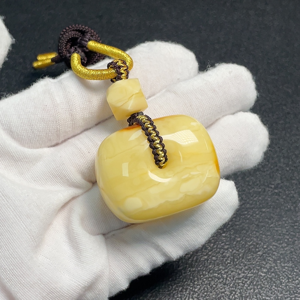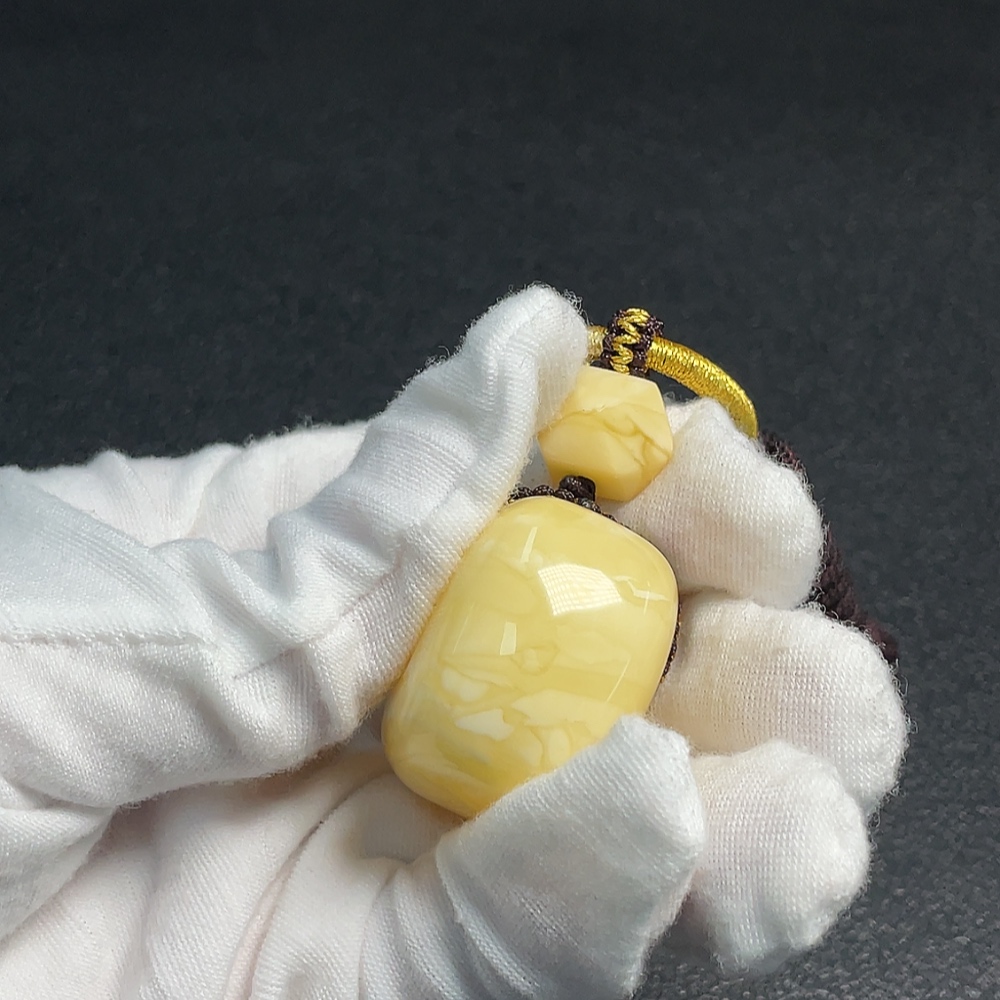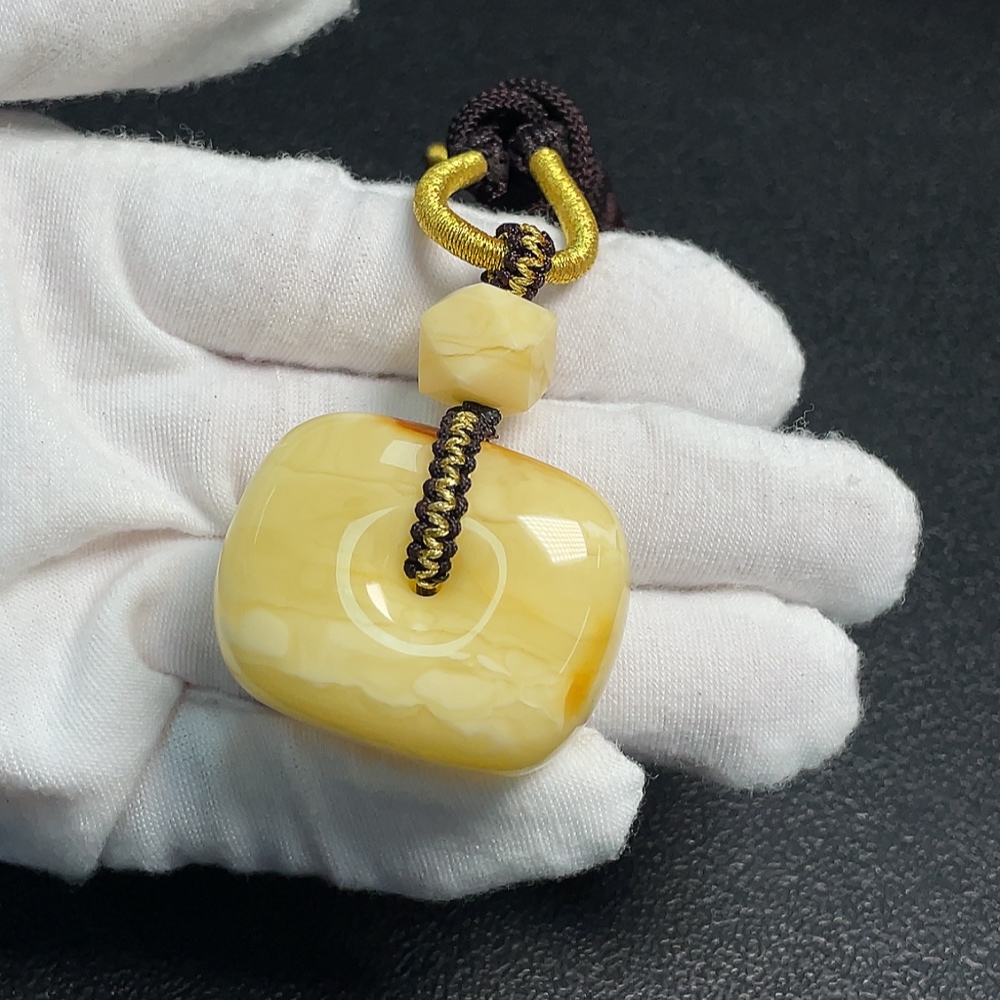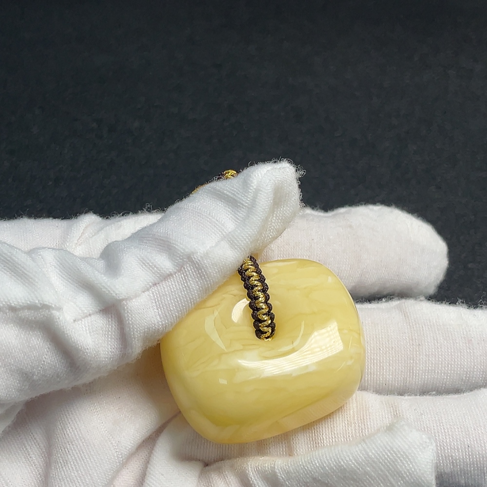 Amber and beeswax pendant, total weight approximately 22.91g including cord