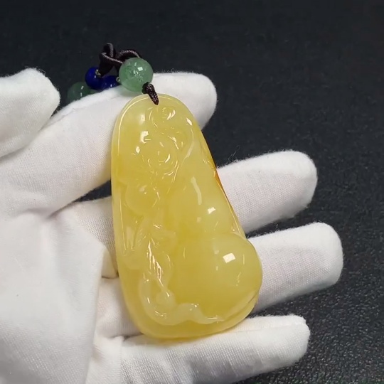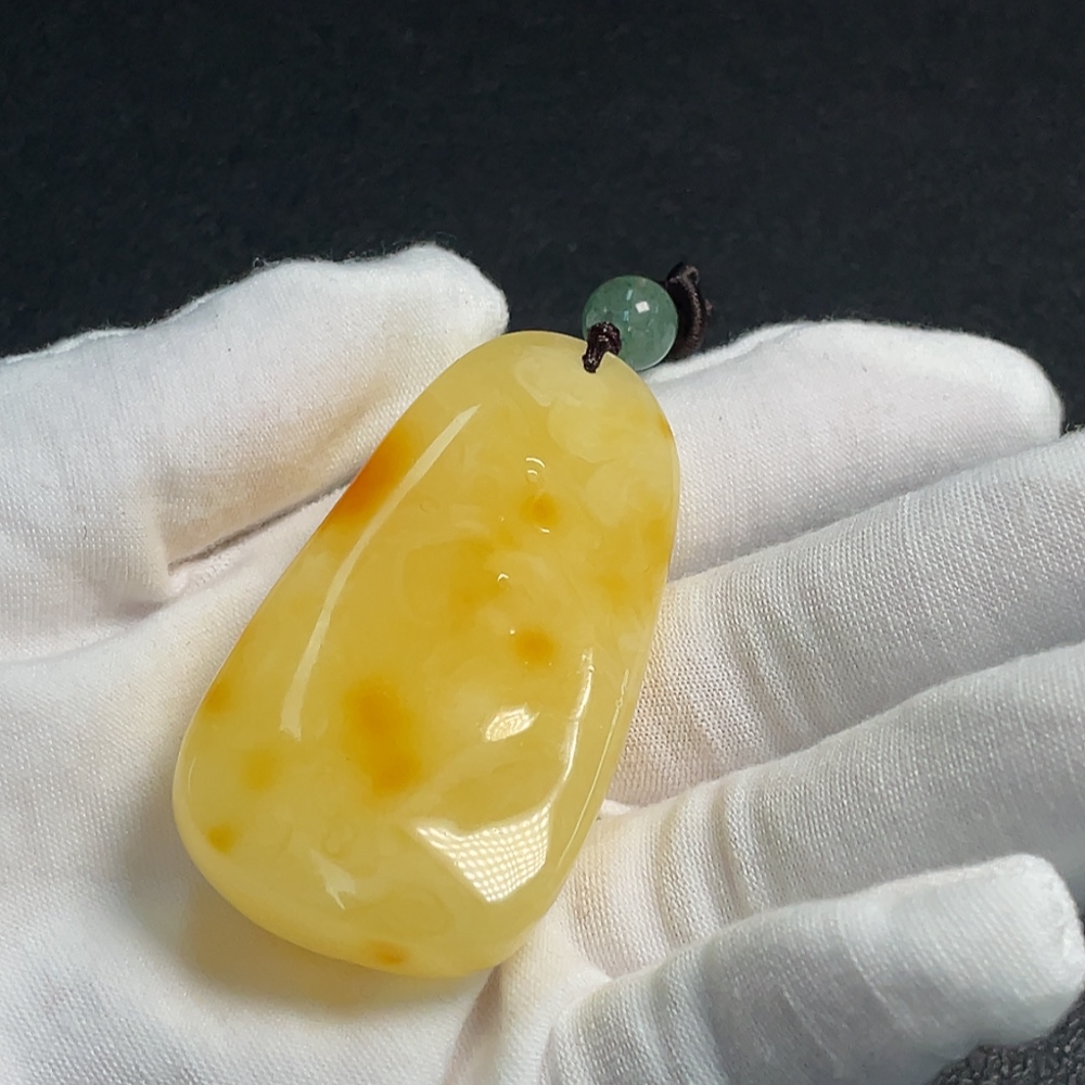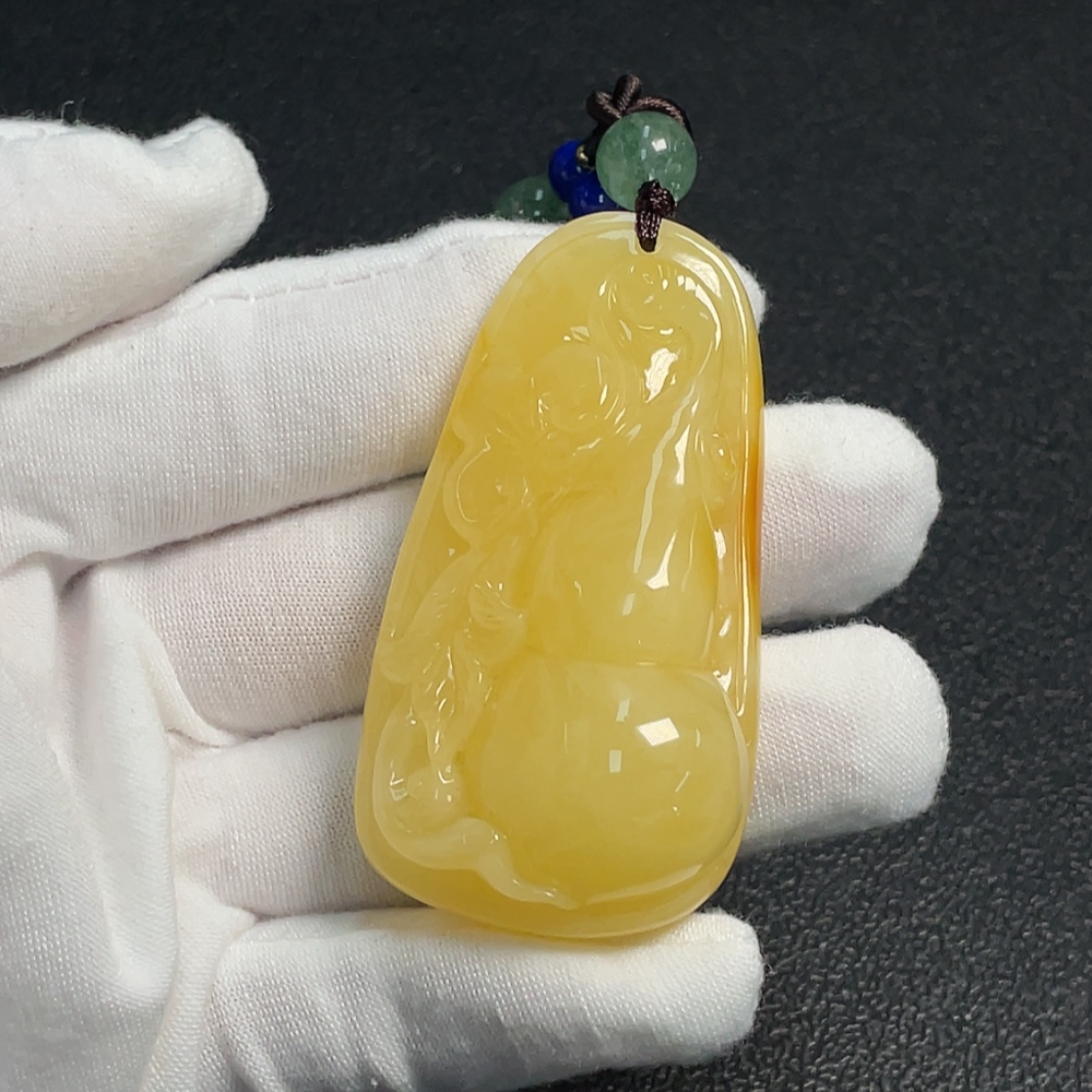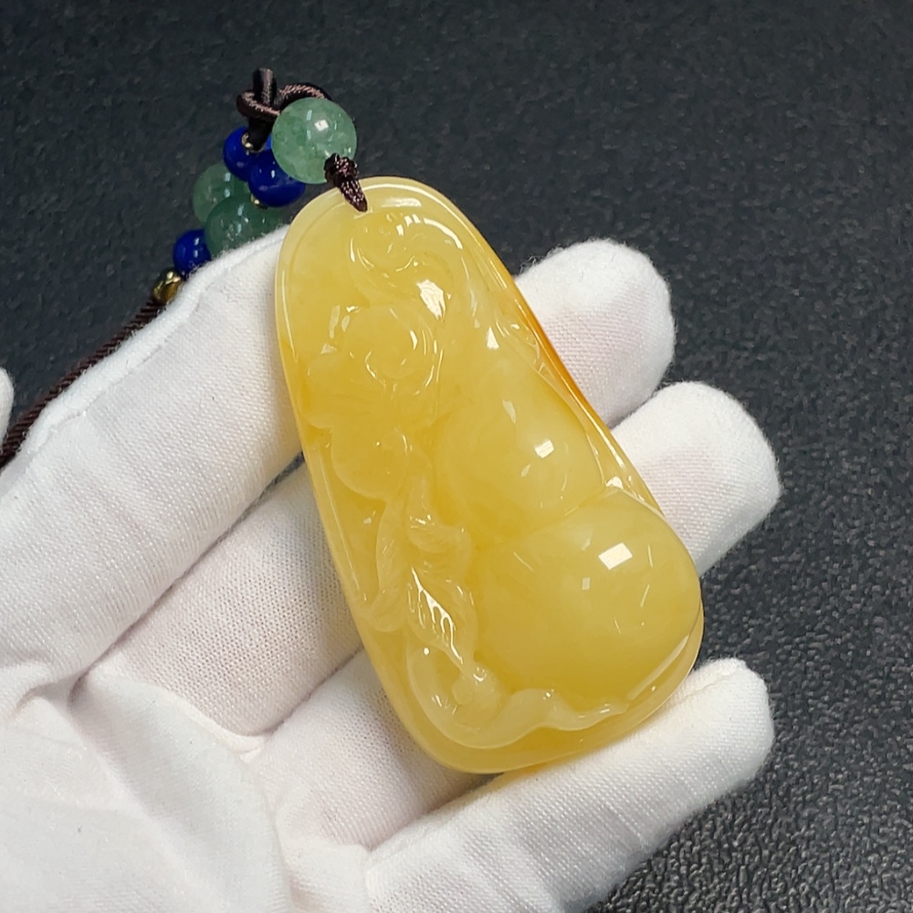 Amber Beeswax Pendant with Colorless Coating, Non-Natural Accent Stones, Non-Gold, Total Weight Approx. 27.58g Including Cord