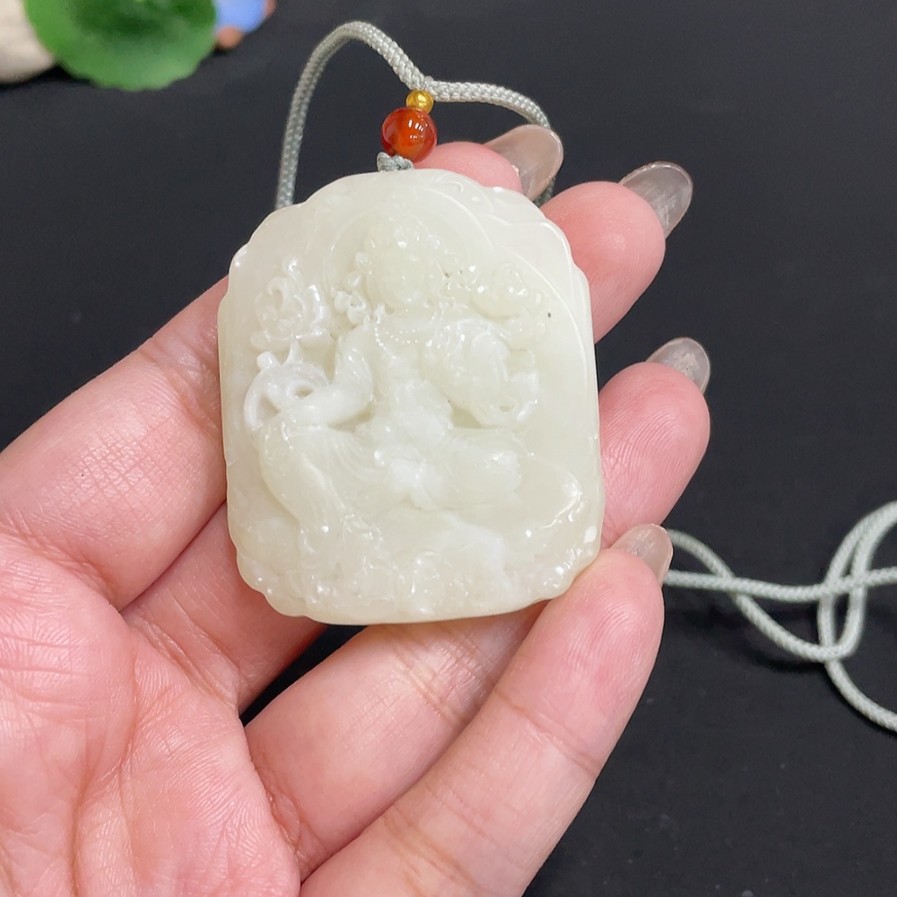 Hetian Jade Pendant Guanyin Total Weight Approx. 42.8g