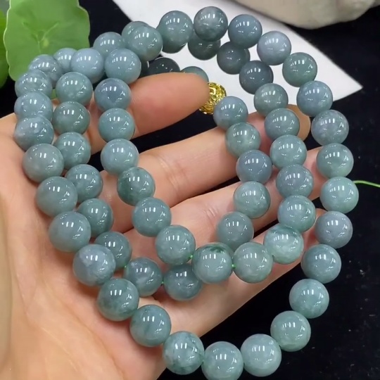 Jadeite Beaded Necklace Card 10.1mm Approx. Total Weight Approx. 122g with Non-Gold Beads
