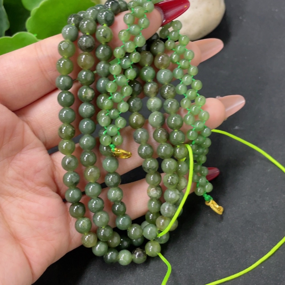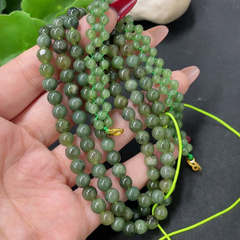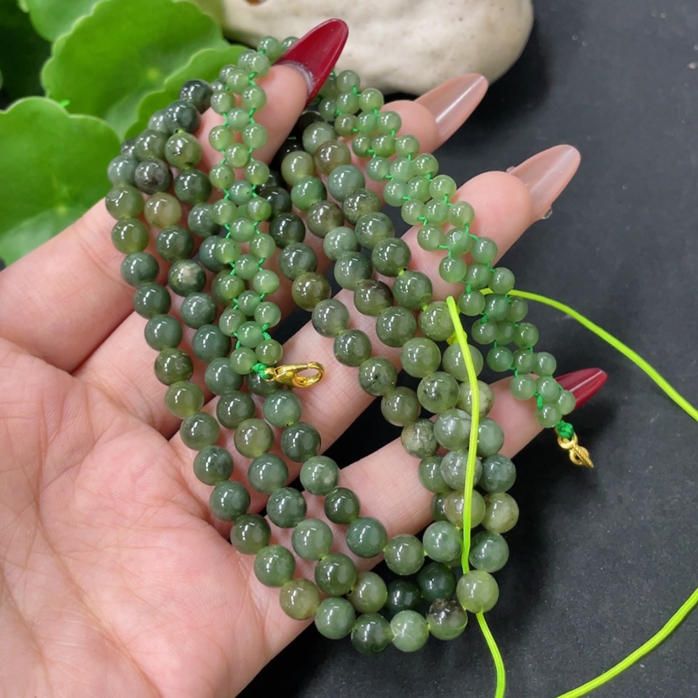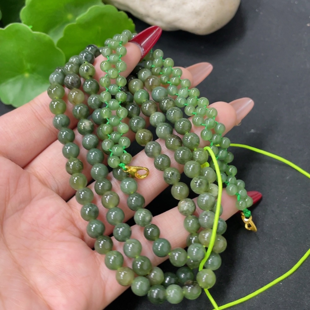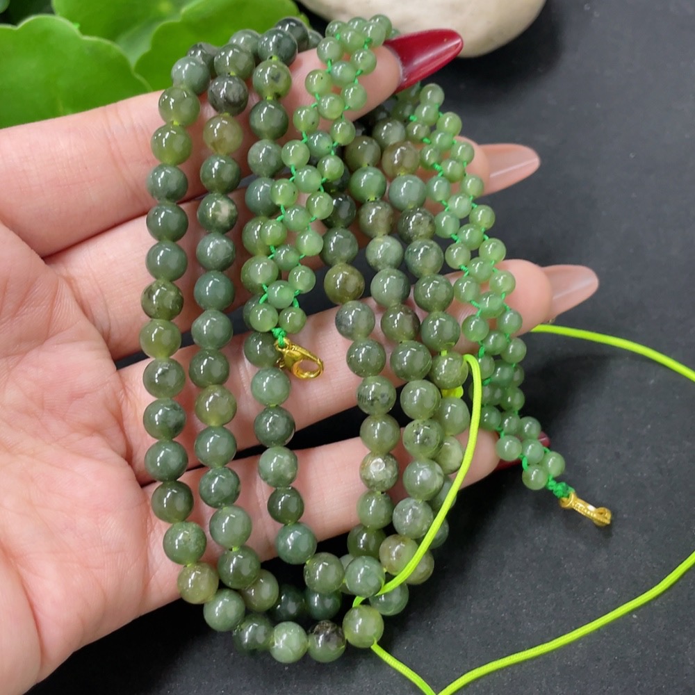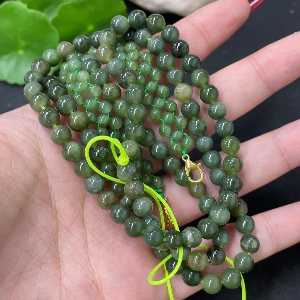 Hetian Jade Bead Necklace, approx. 6mm, total weight approx. 43.1g, non-gold