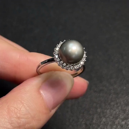 Trezaar - Seawater Pearl Ring, Color Origin Undetermined, Adjustable, Non-Gold, Total Weight Approx. 2.79g, Stone Size ~8.8mm