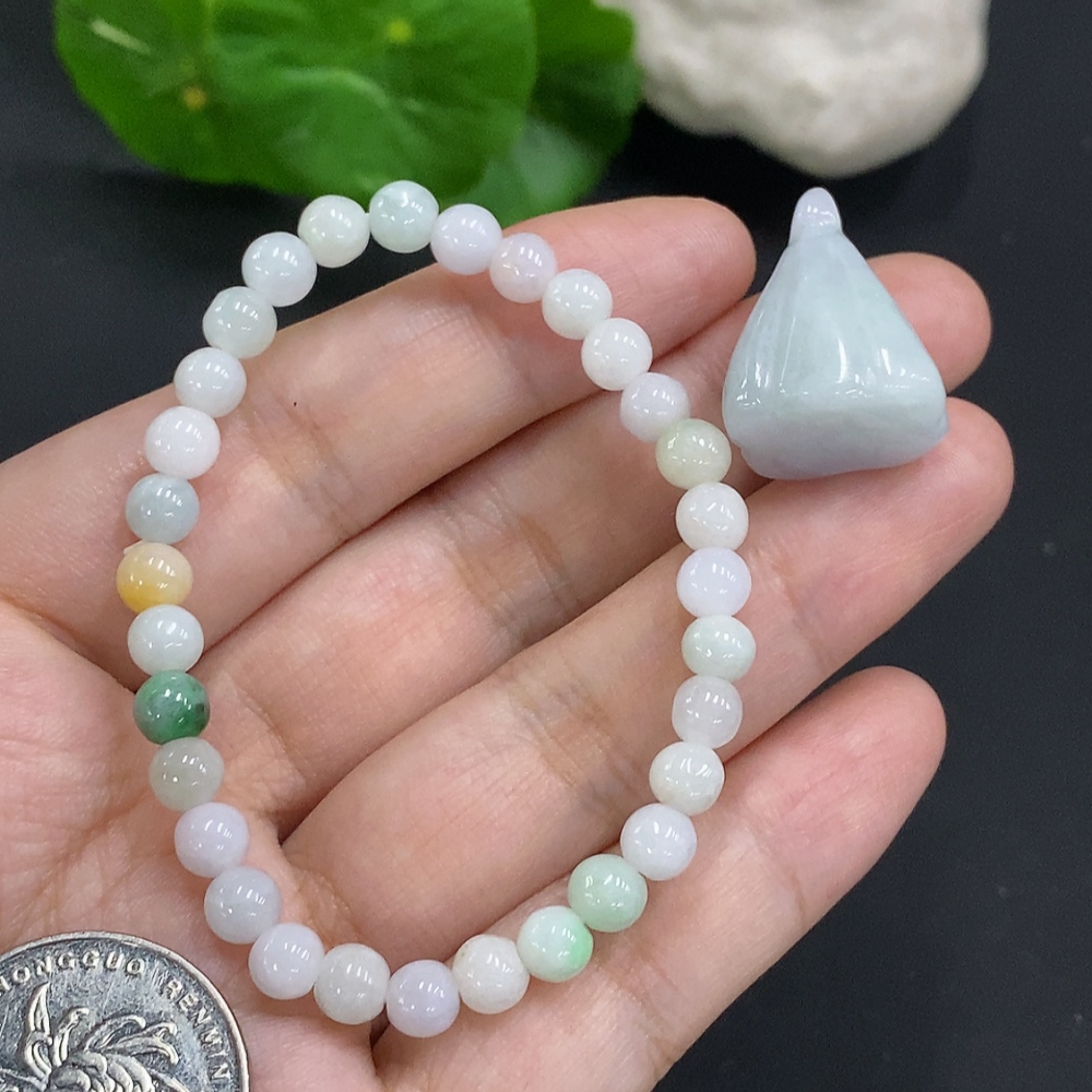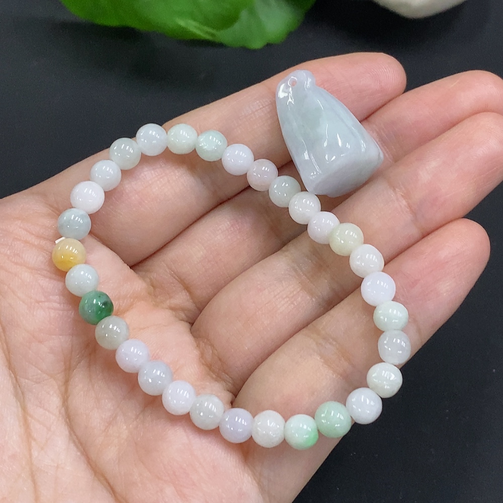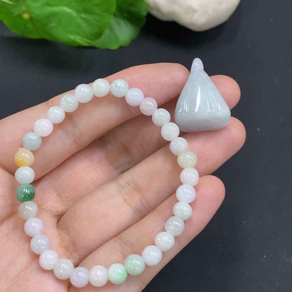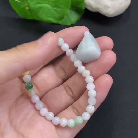 Jadeite Lotus Pod Pendant with Beaded Chain Sell as a Lot