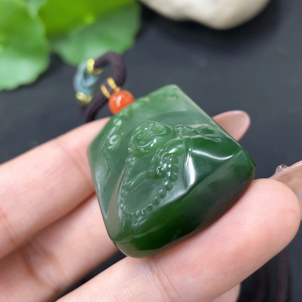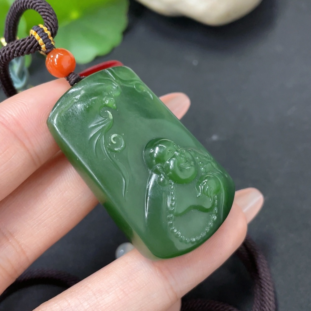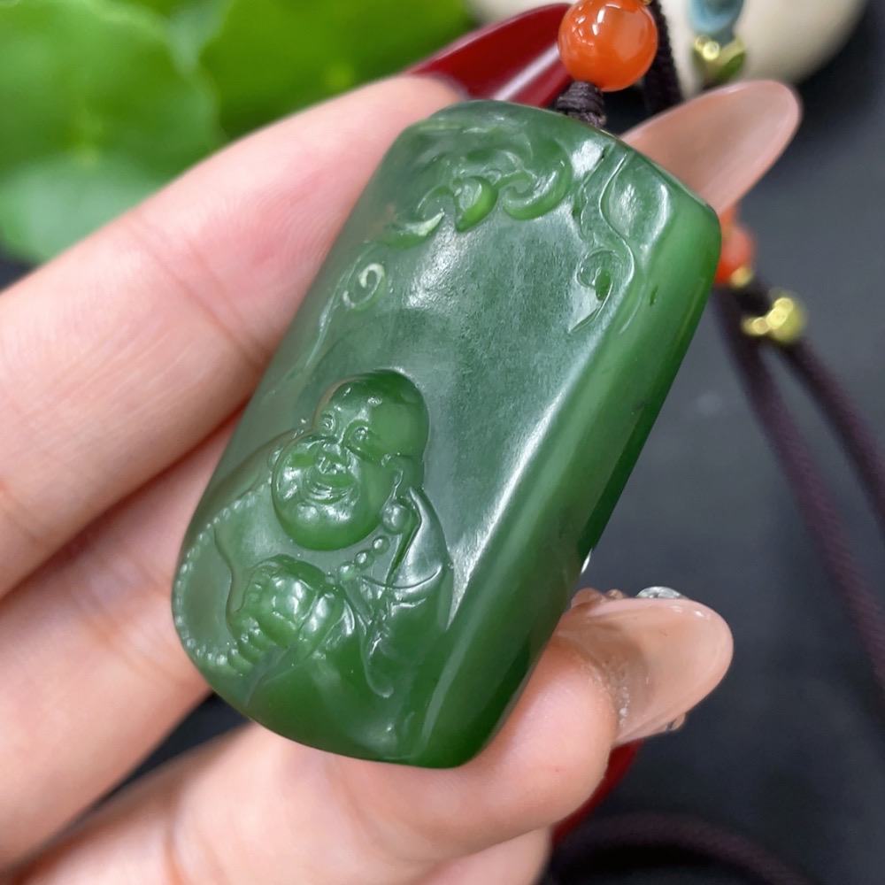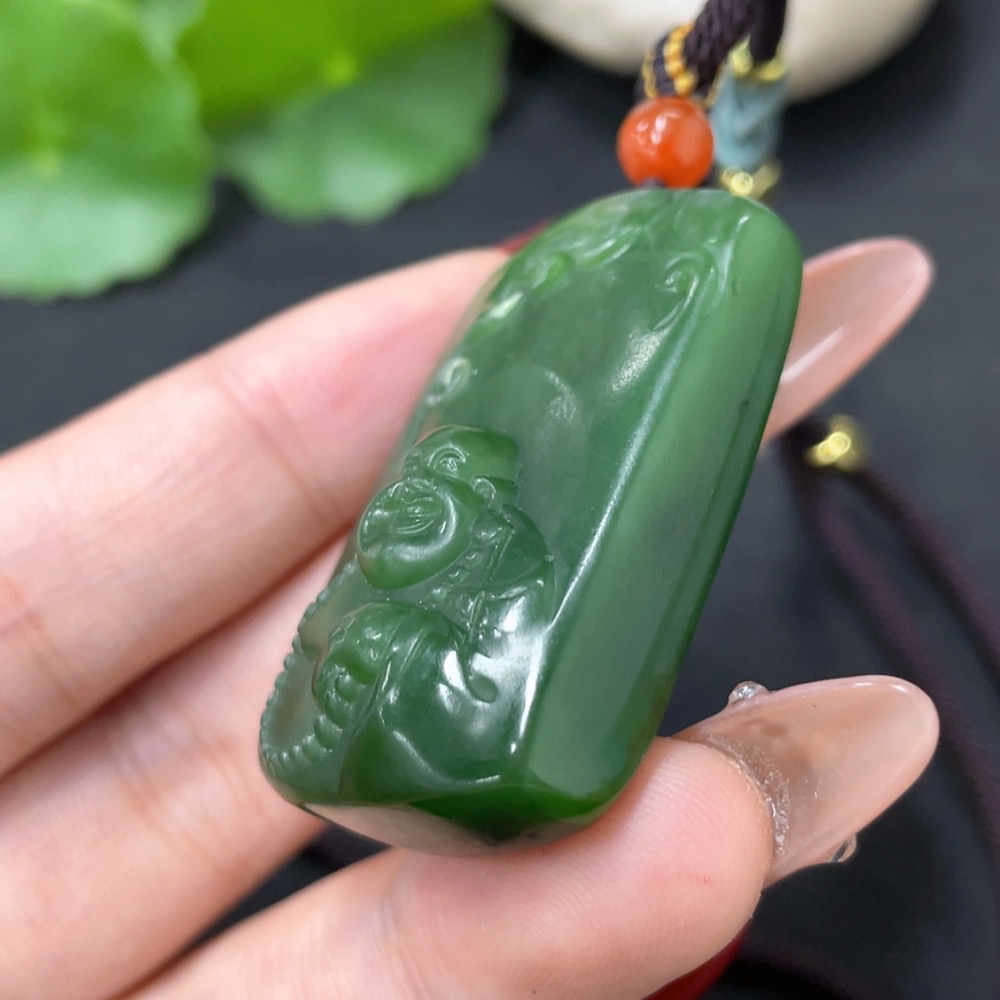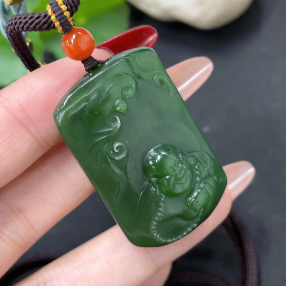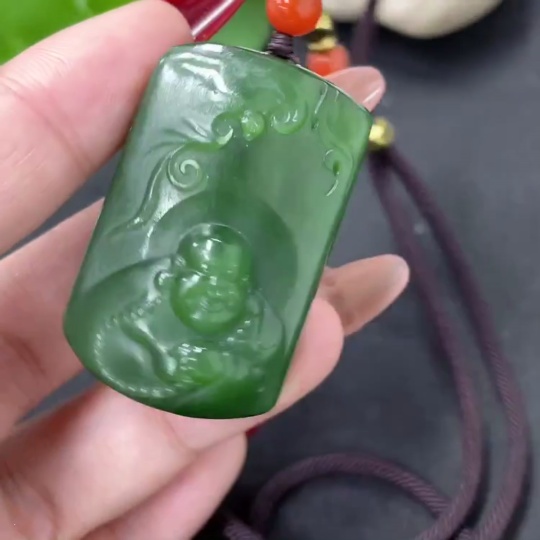 Hetian Jade Pendant - Buddha with Non-Hetian Jade Beads, Total Weight (Including Cord): Approx. 33.3g