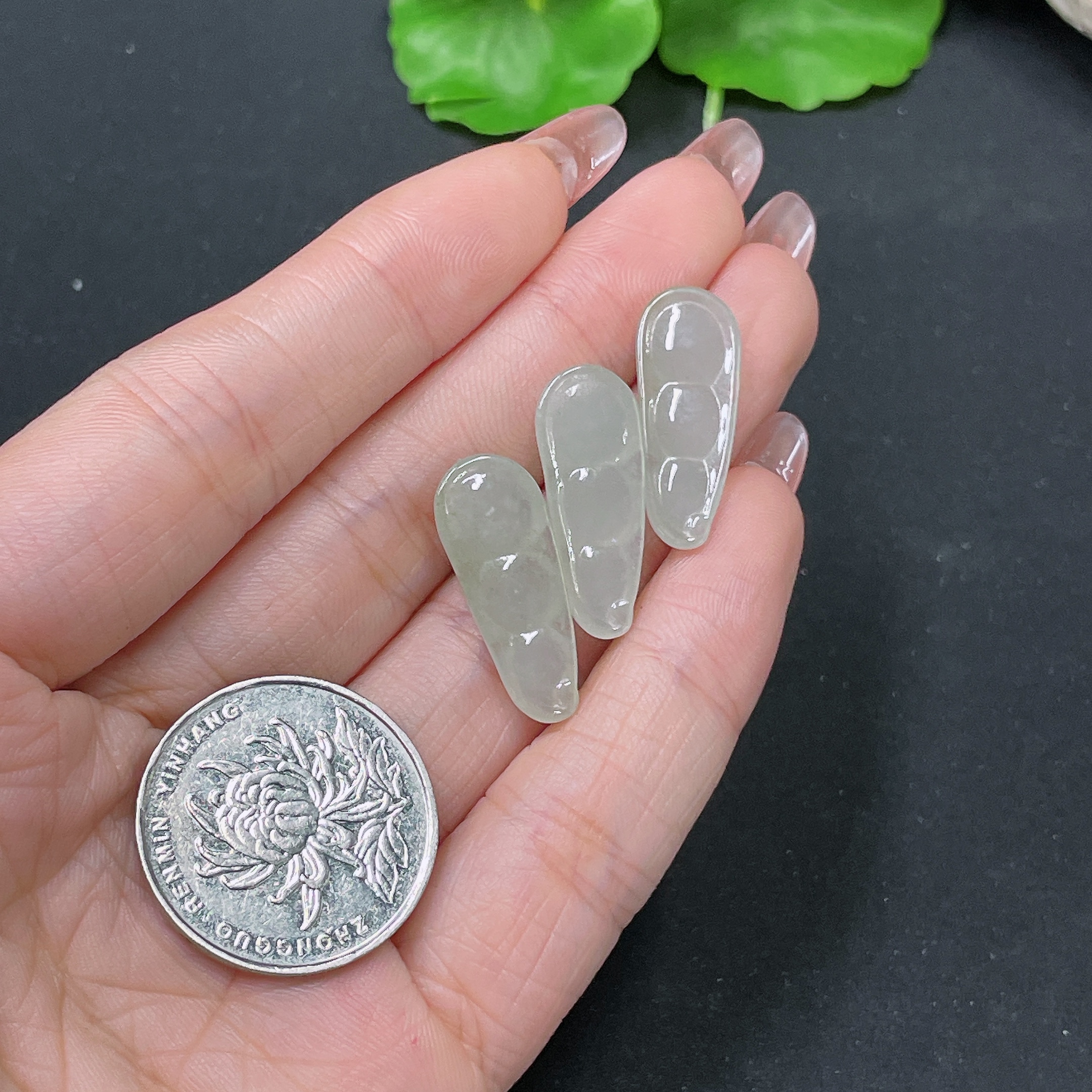 Jadeite Blessed Bean Inlay Piece, Total Weight Approximately 4.38g