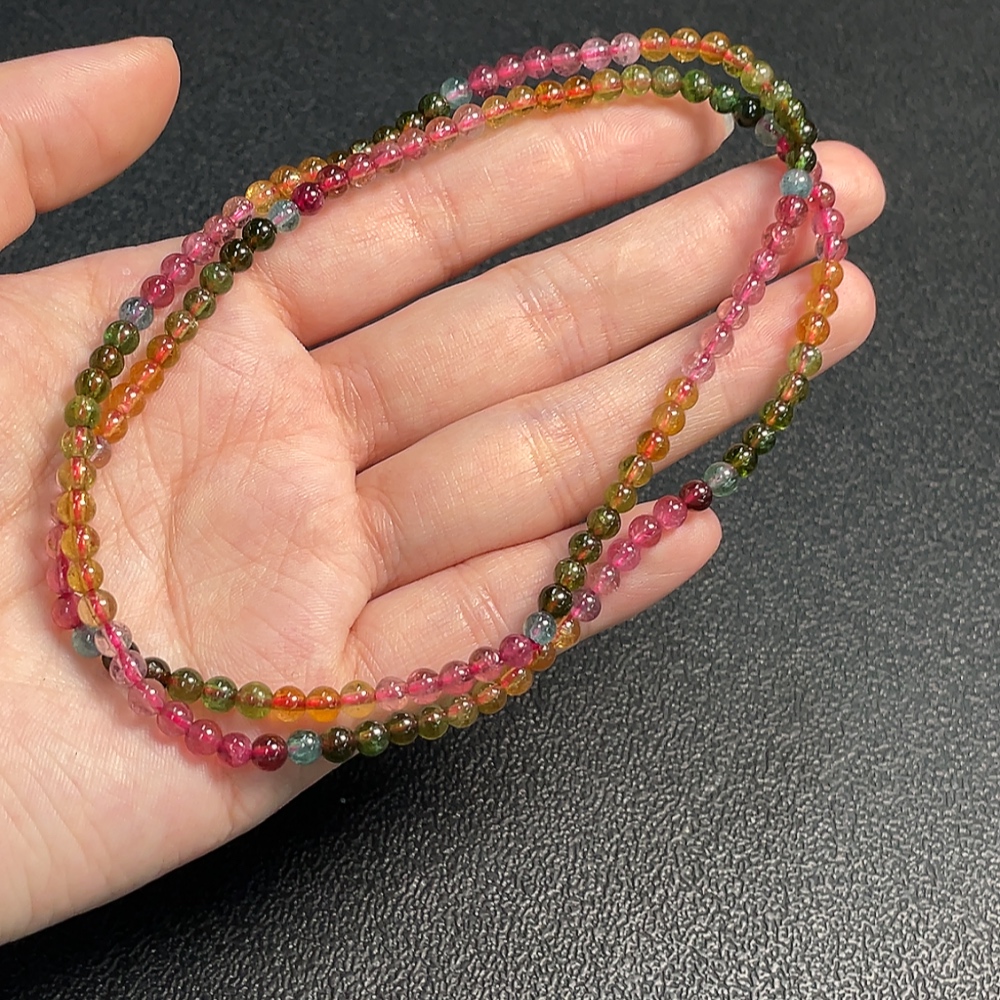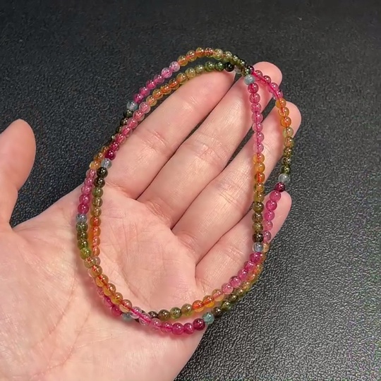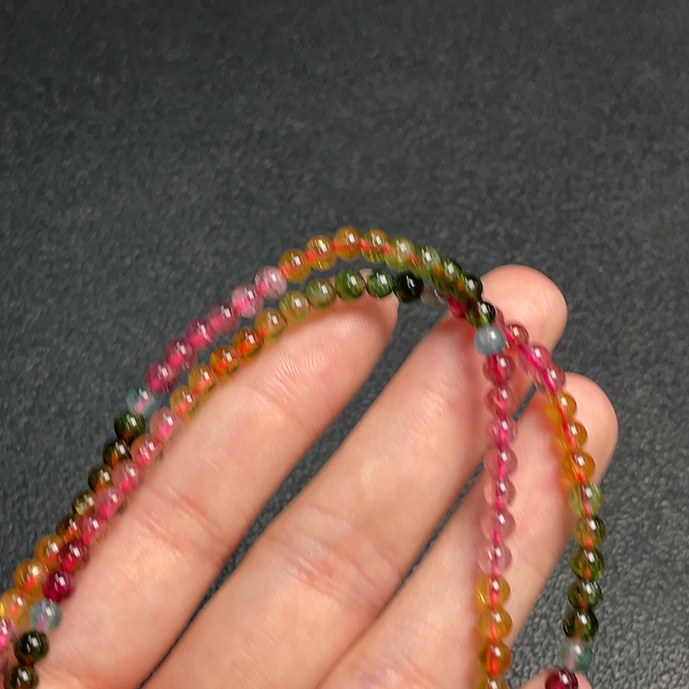 Tourmaline Bead Necklace with Other Mineral Components and Visible Organic Matter, Total Weight Approx. 14.27g, Bead Size About 4.1mm