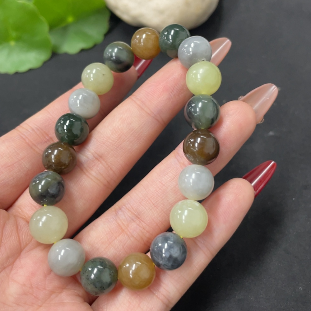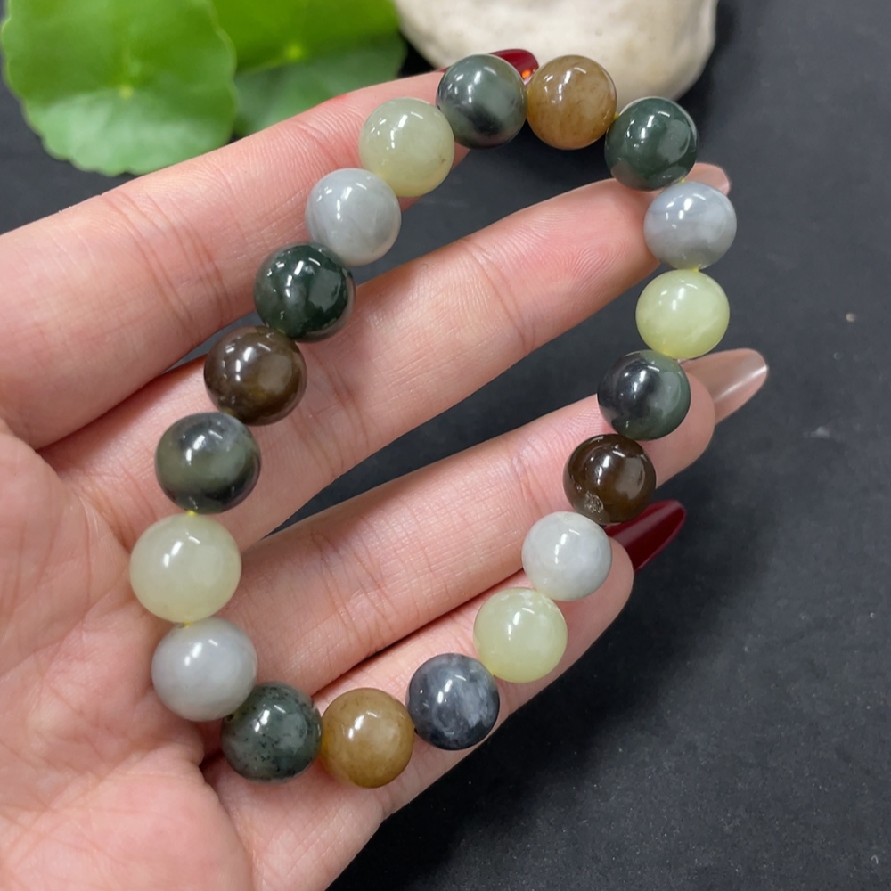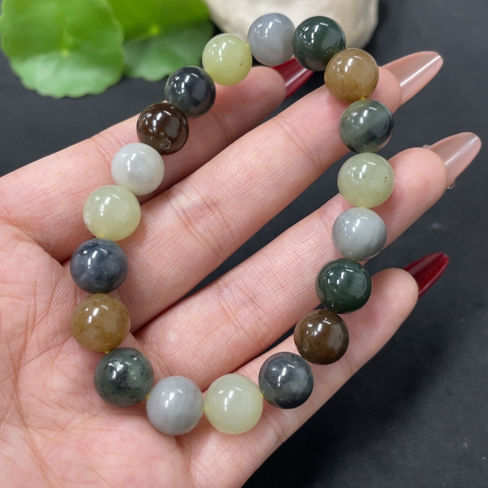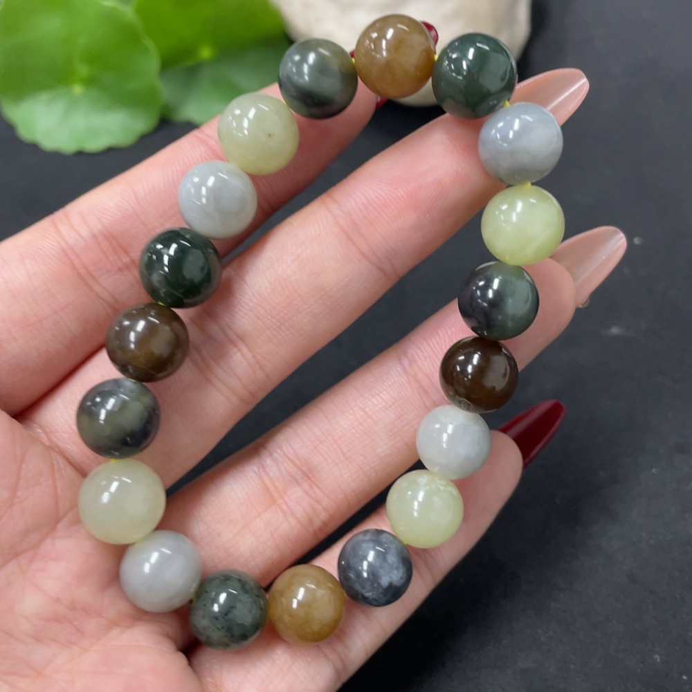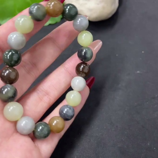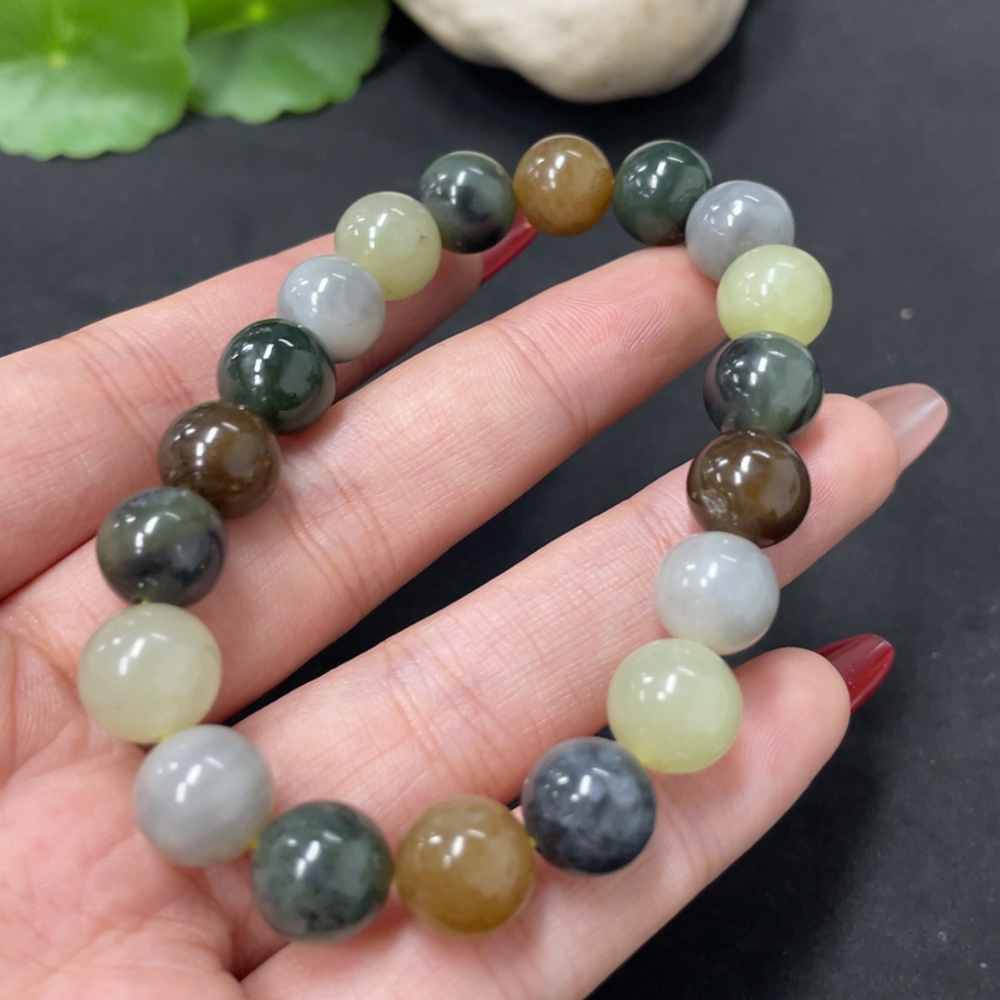Hetian Jade Bracelet, approx. 9.8mm, total weight approx. 28.4g, containing other mineral components
