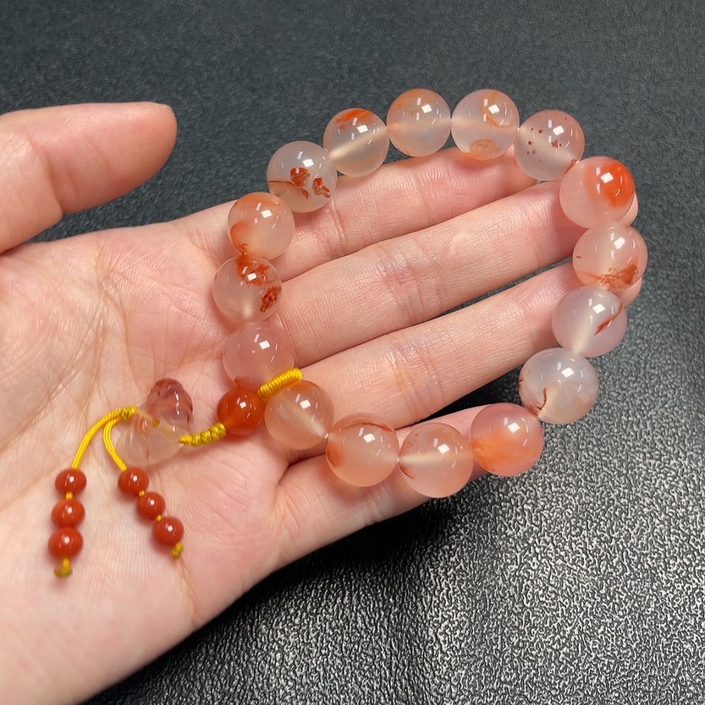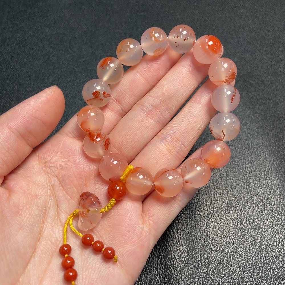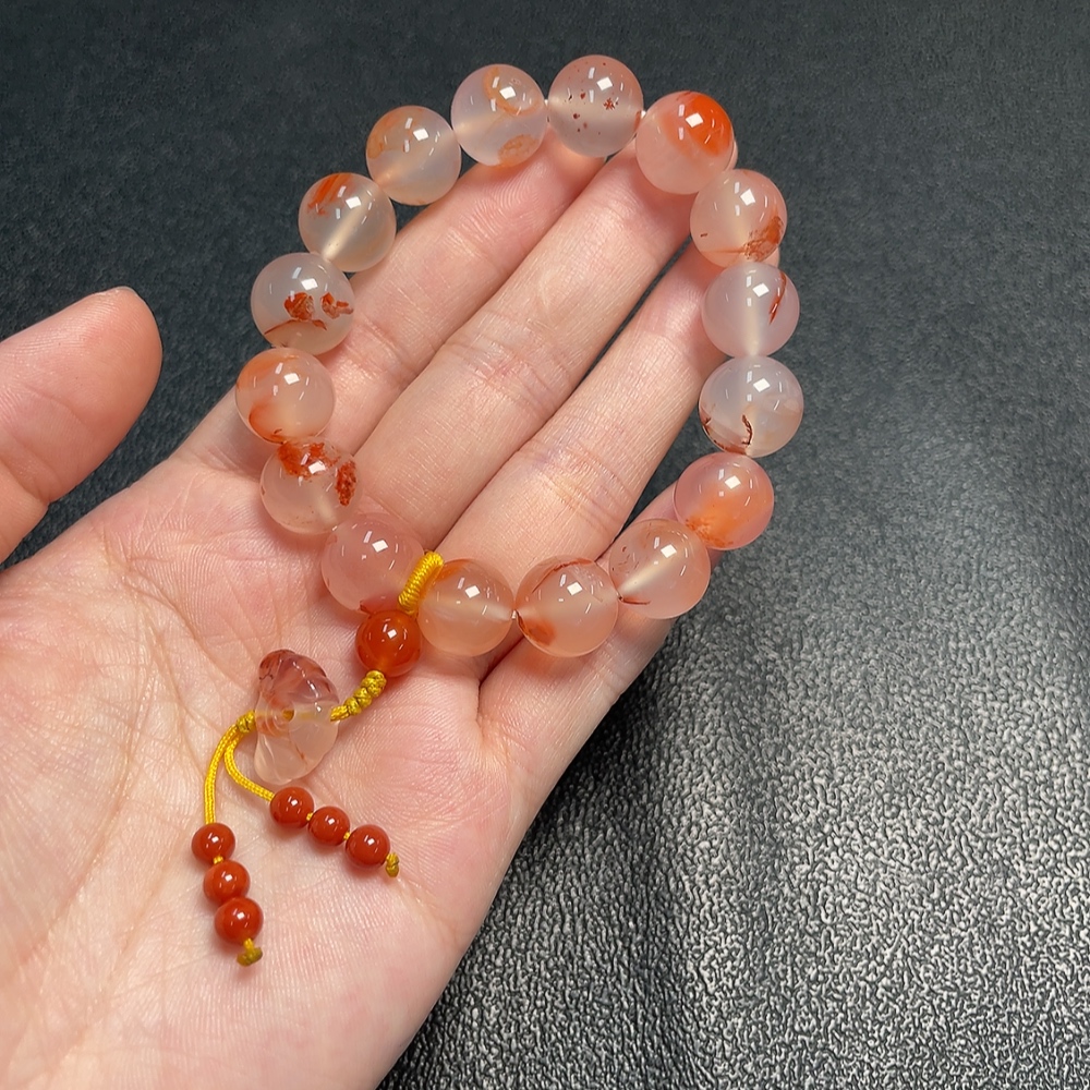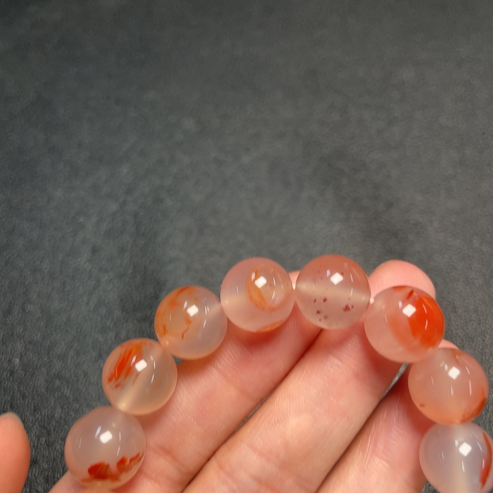 Red Agate Bracelet with Visible Organic Matter, Total Weight Approximately 43.35g, Size Around 12.7mm