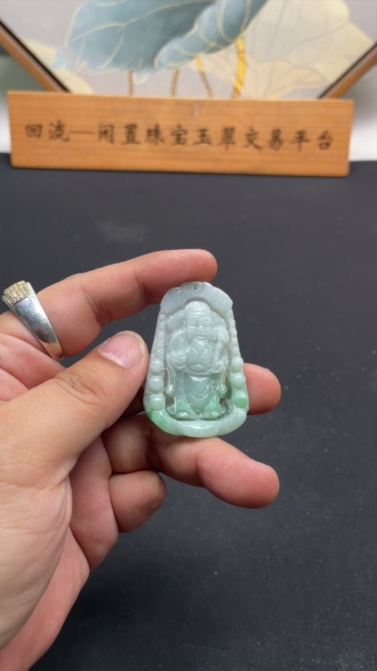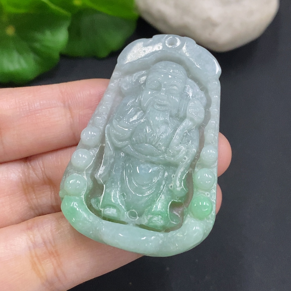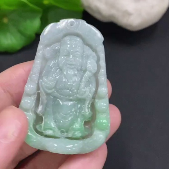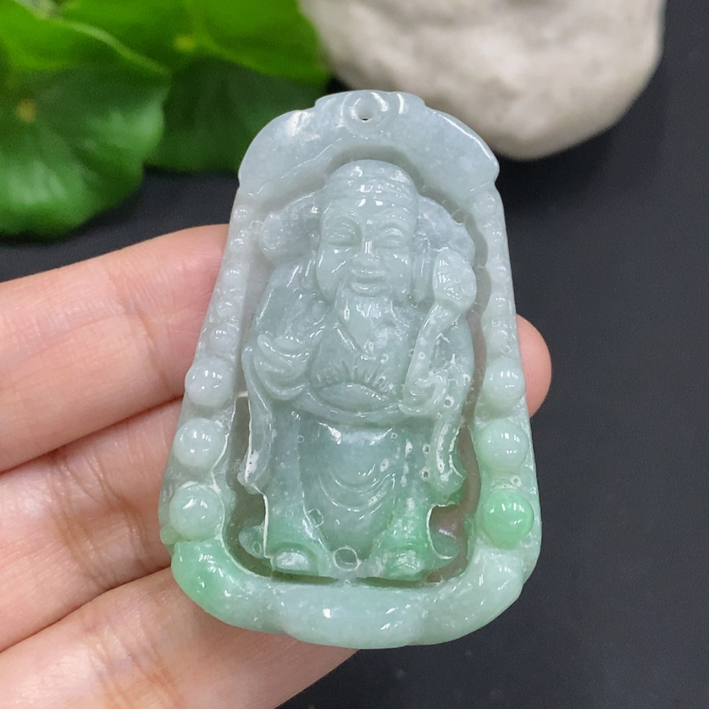 Jadeite God of Wealth Pendant, Total Weight Approximately 19.3g