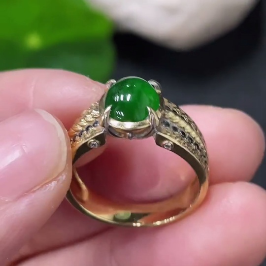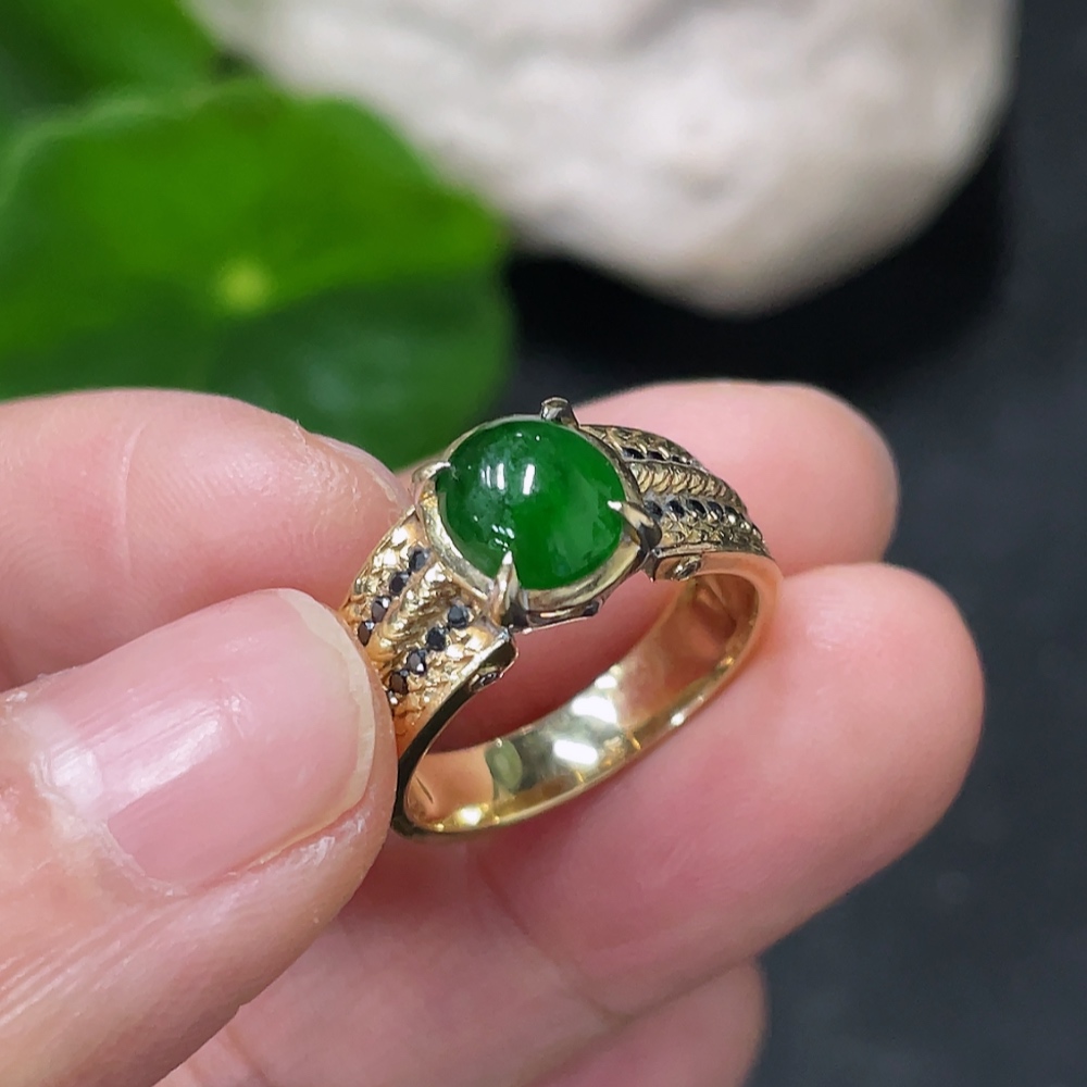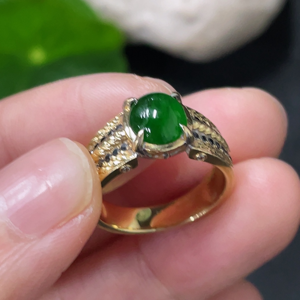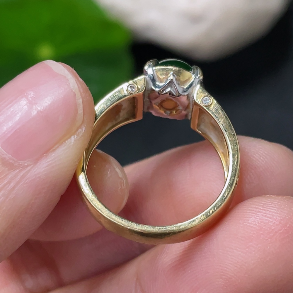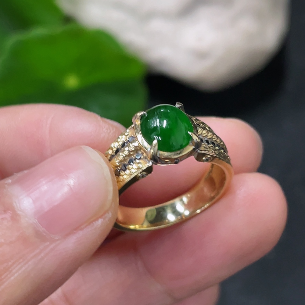 Jadeite Cabochon Solitaire Ring 18k Gold Setting Size 9 Total Weight Approx. 5.27g