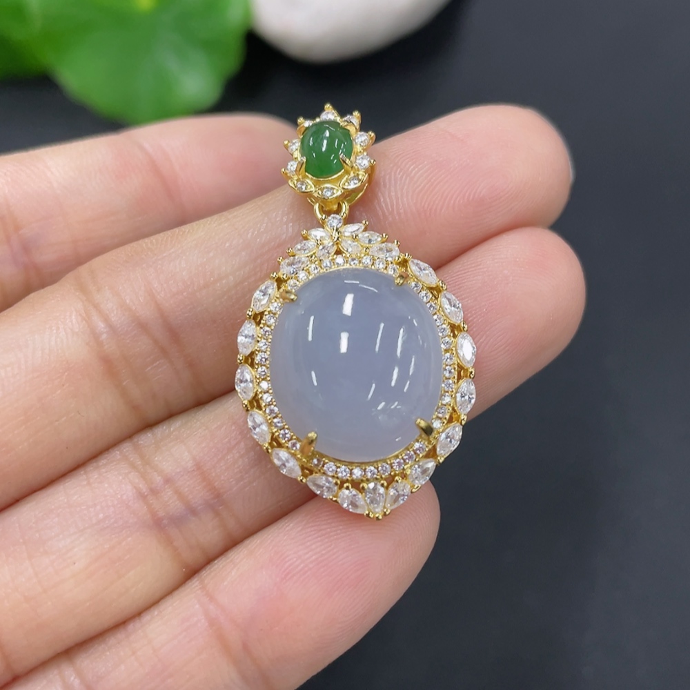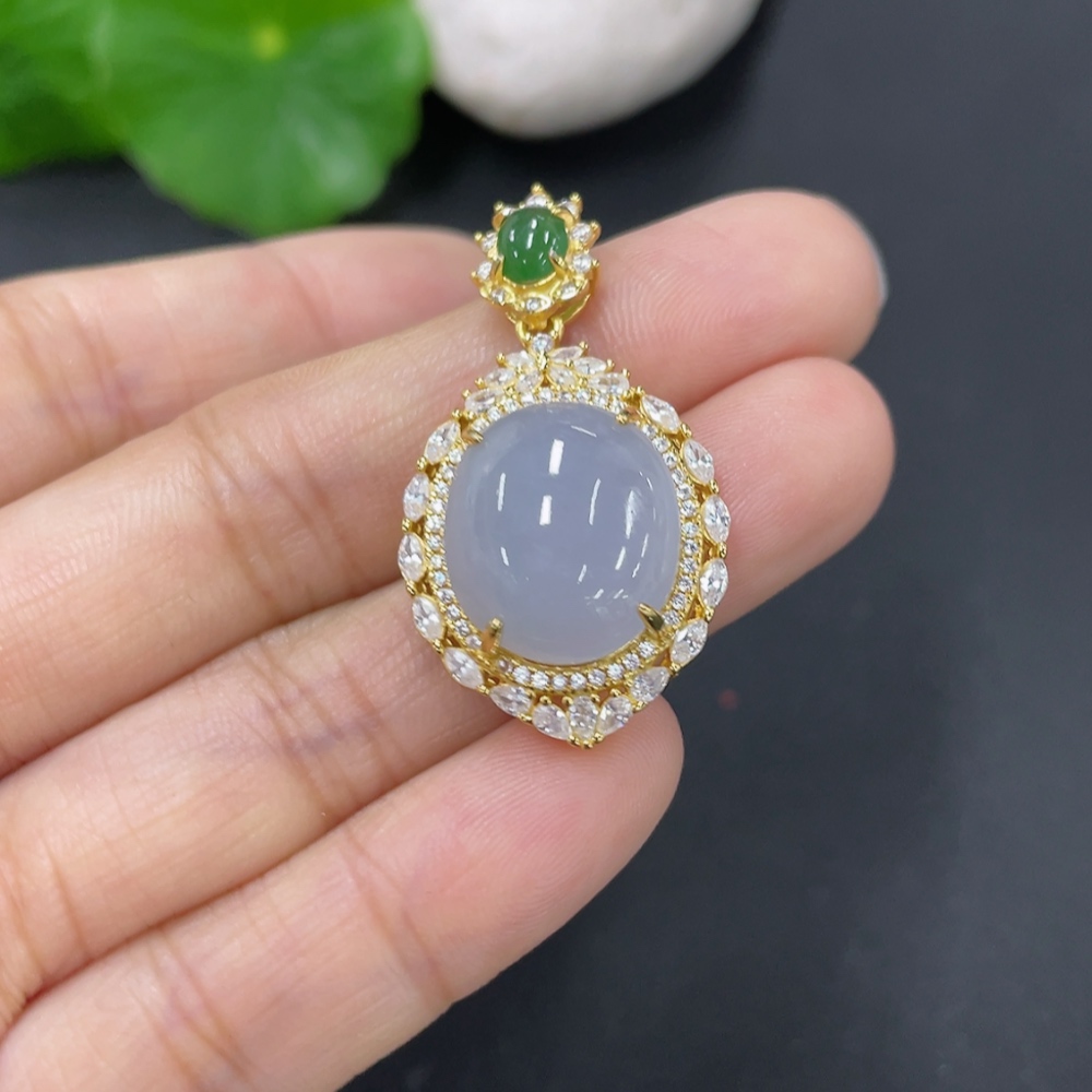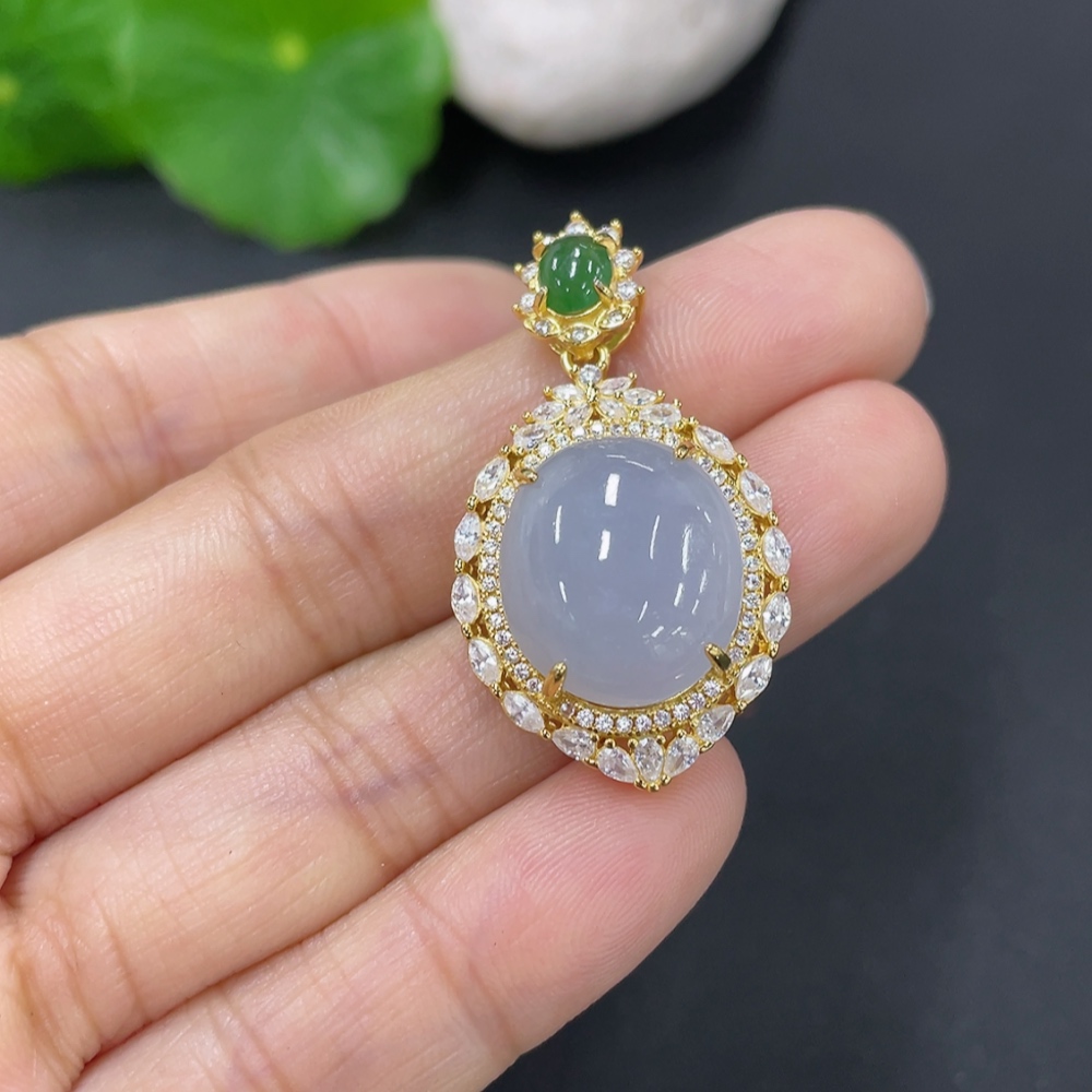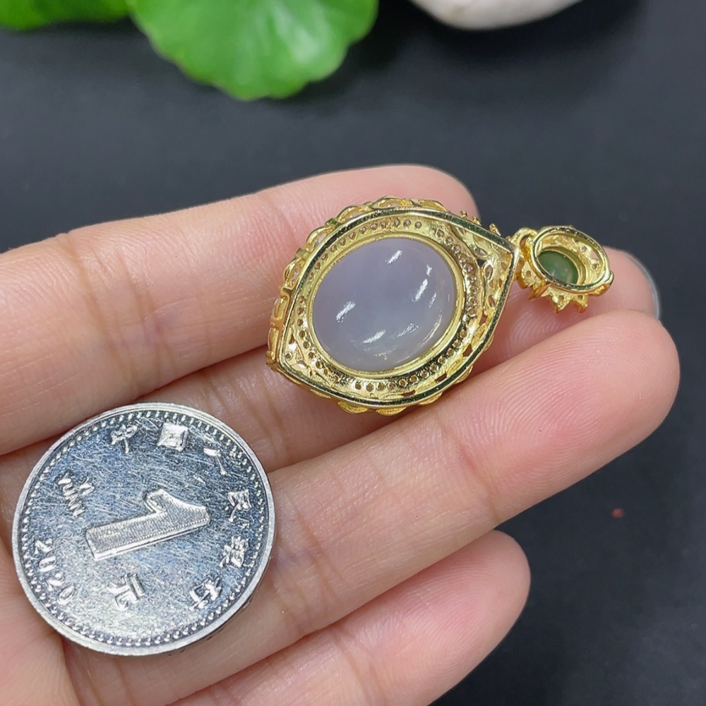 Jadeite Cabochon Pendant Non-Gold Setting Total Weight Approx. 5g