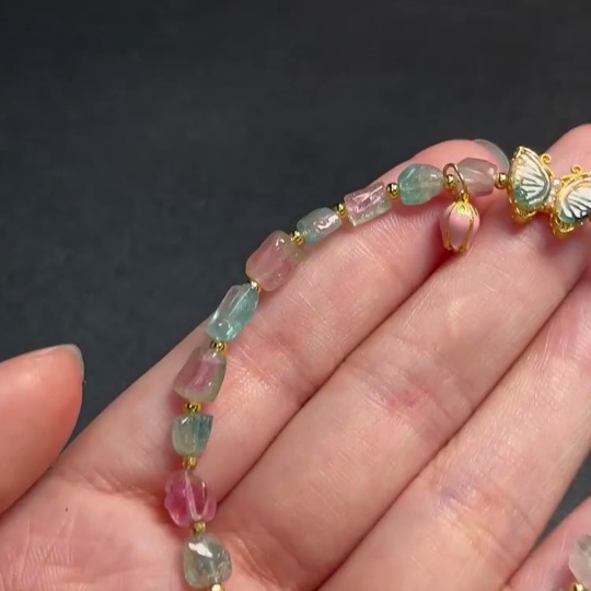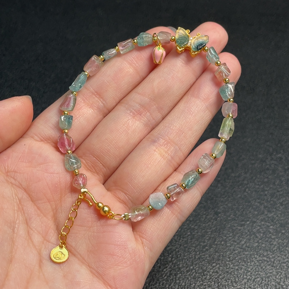 Tourmaline Bracelet with Visible Organic Matter, Non-Gold, Total Weight Approx. 7.05g, Stone Size Around 5mm