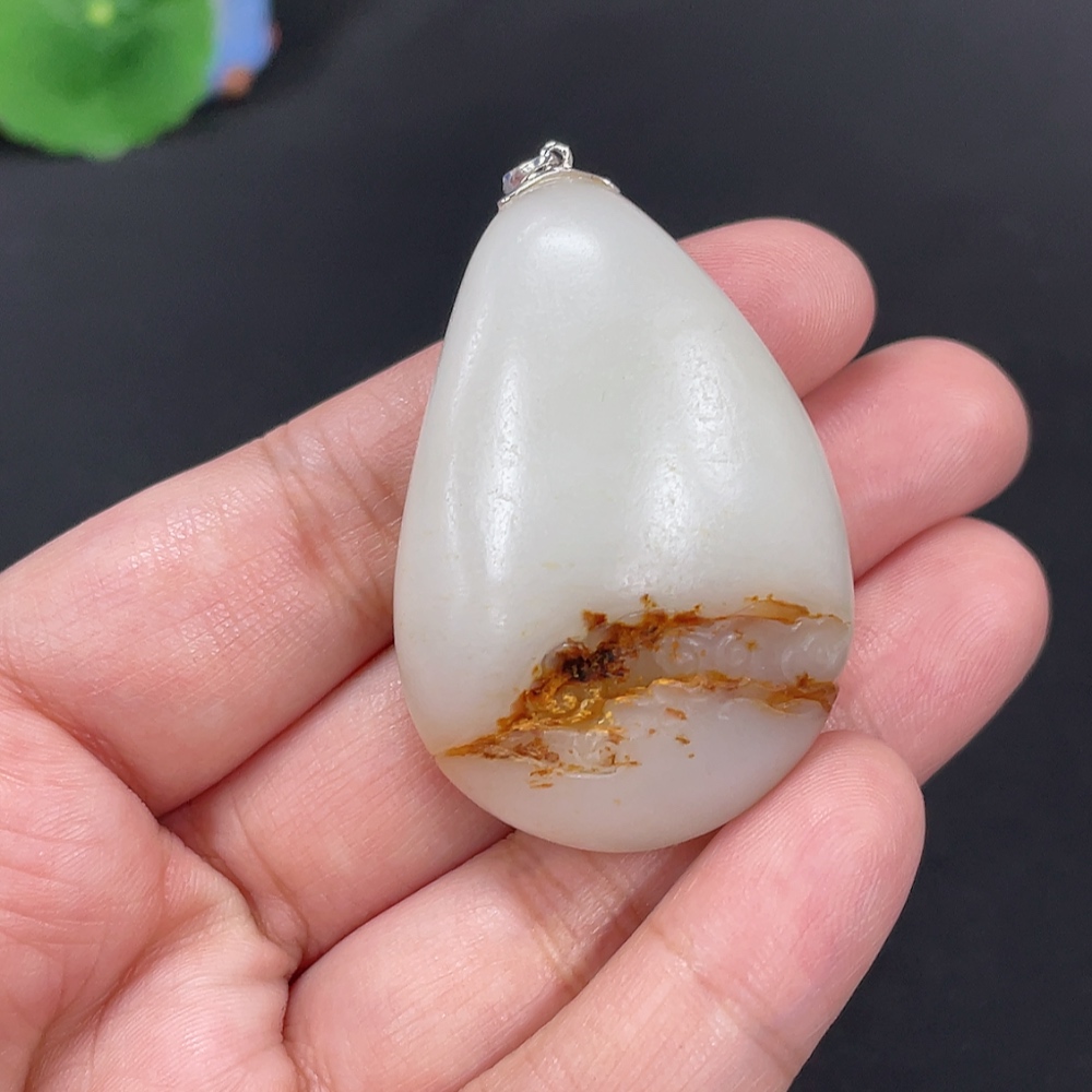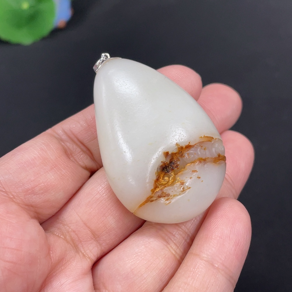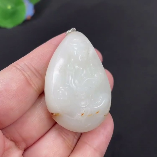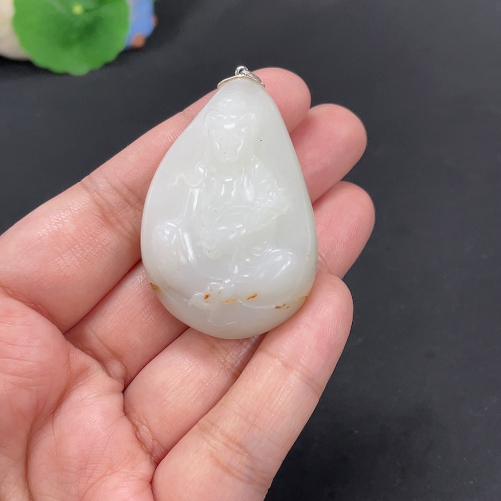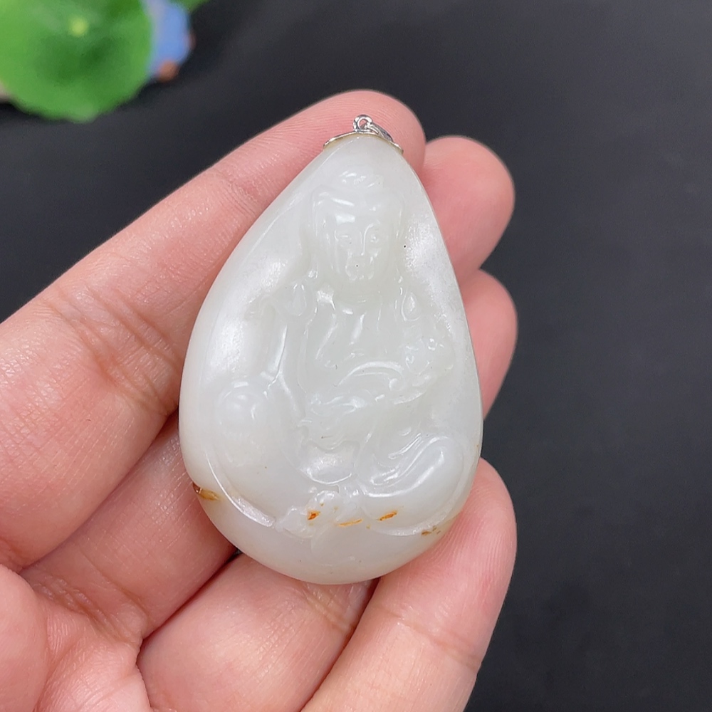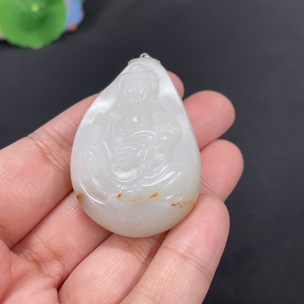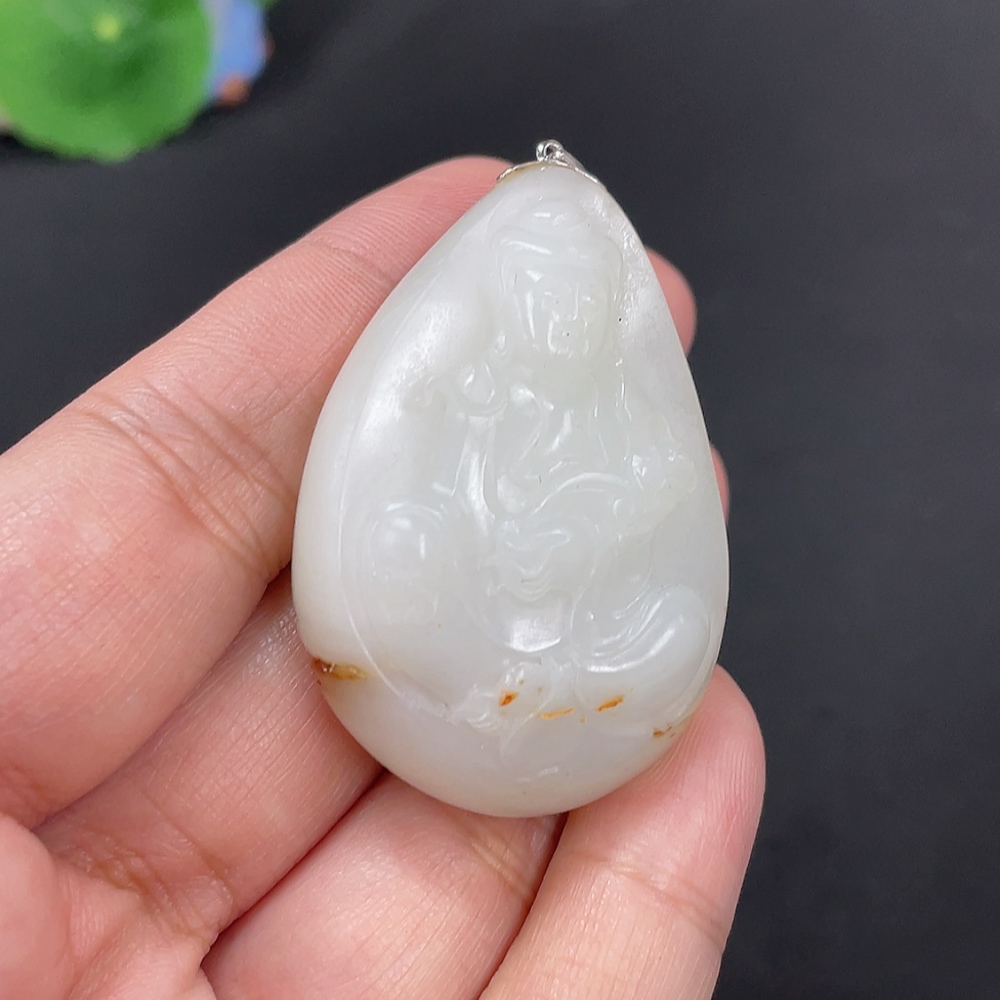 Hetian Jade Inlaid Pendant Guanyin Total Weight Approx. 40g 18k Undetermined Skin Color Cause Contains Other Mineral Components