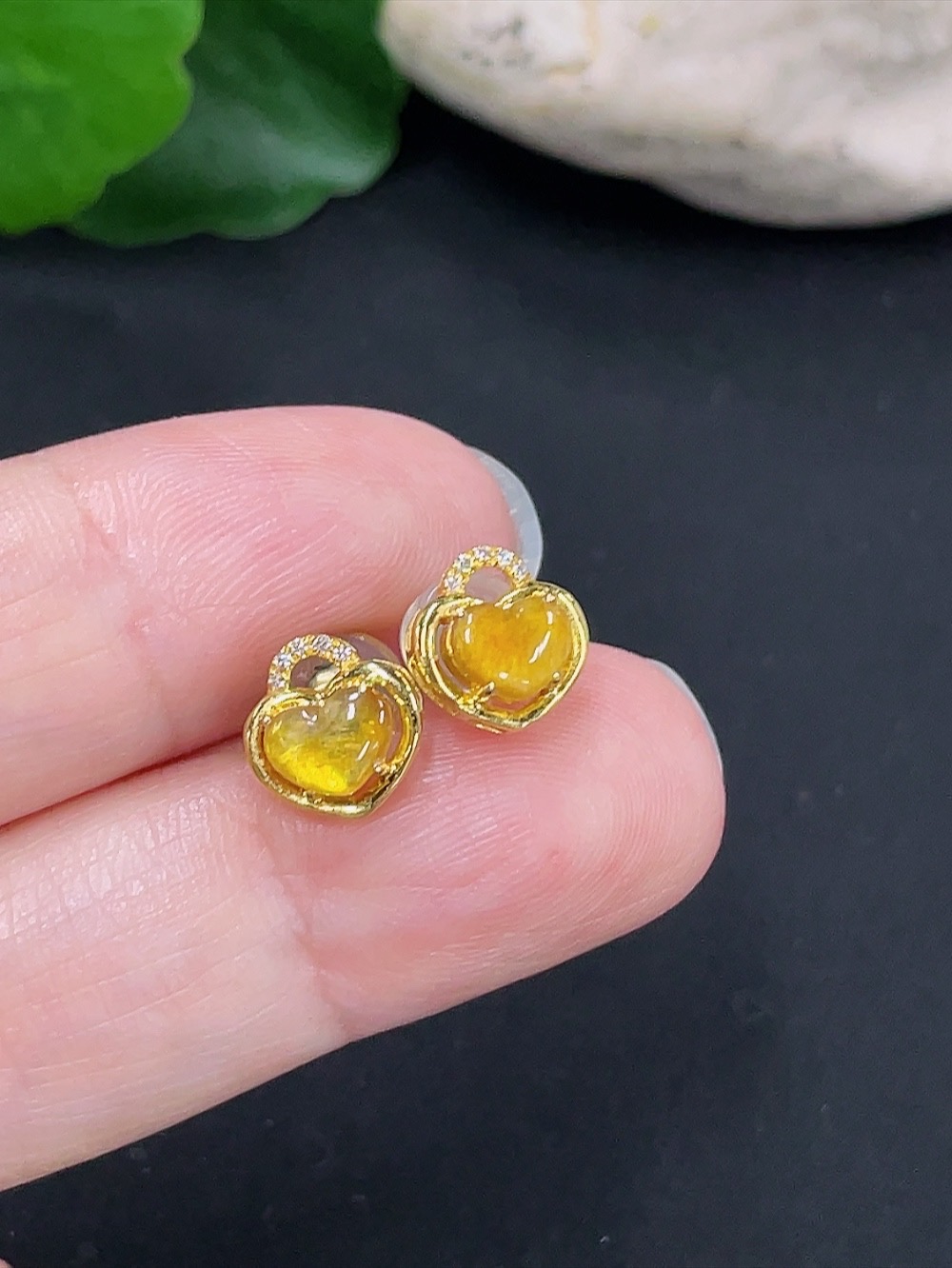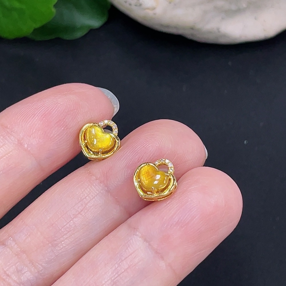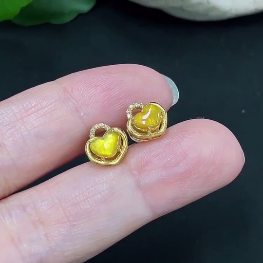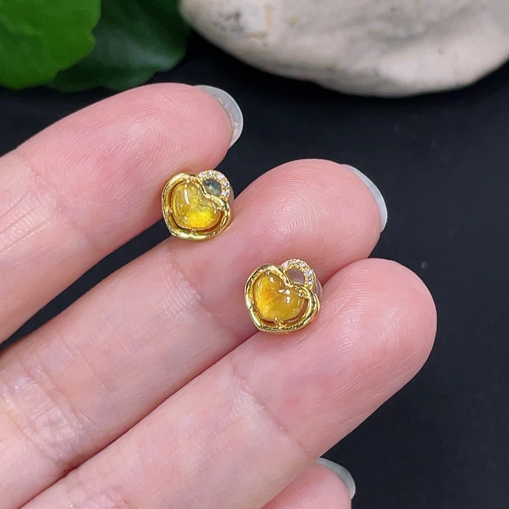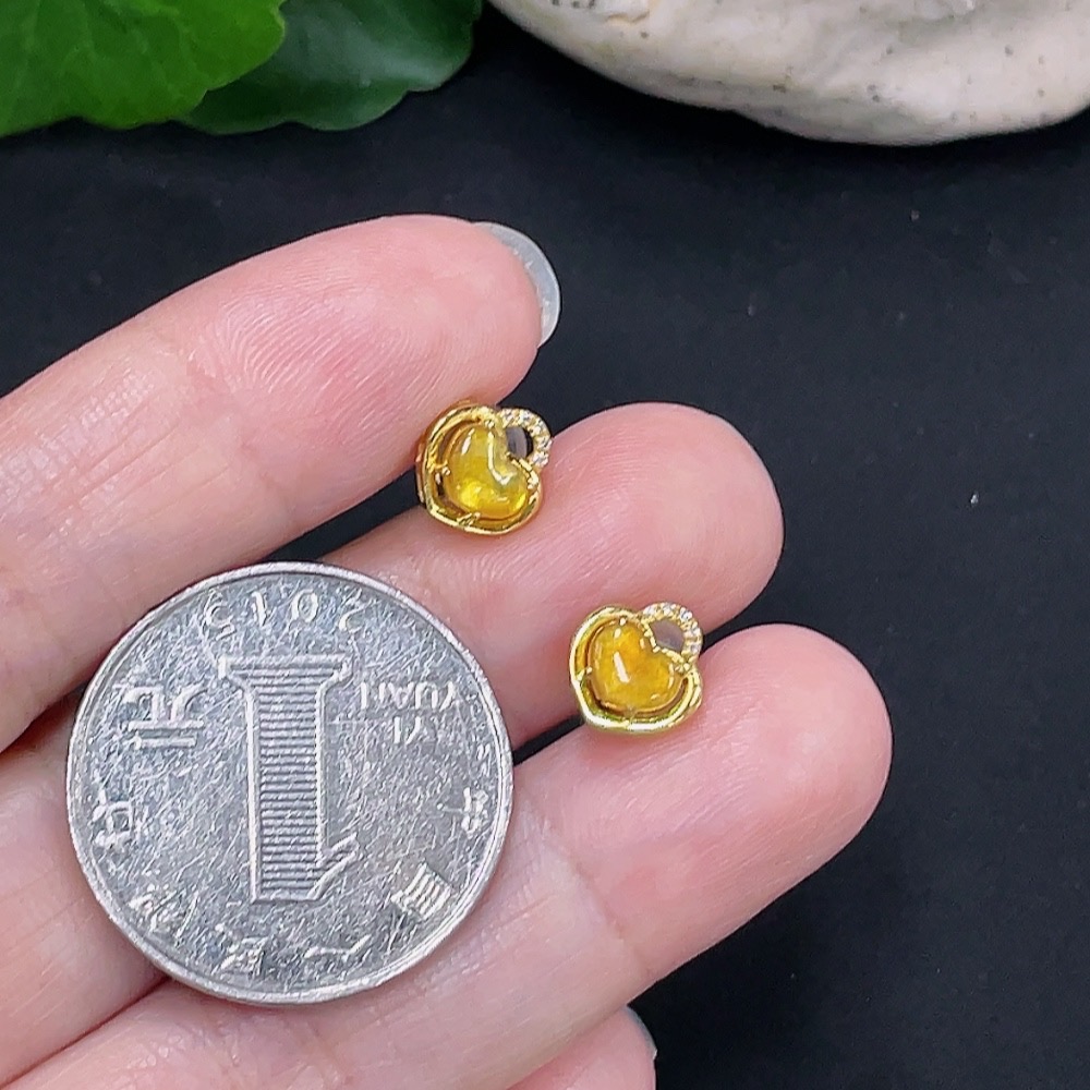 Jadeite inlaid earrings pair 18K gold total weight about 1.3g with diamond accents precious metal may affect color including ear stoppers