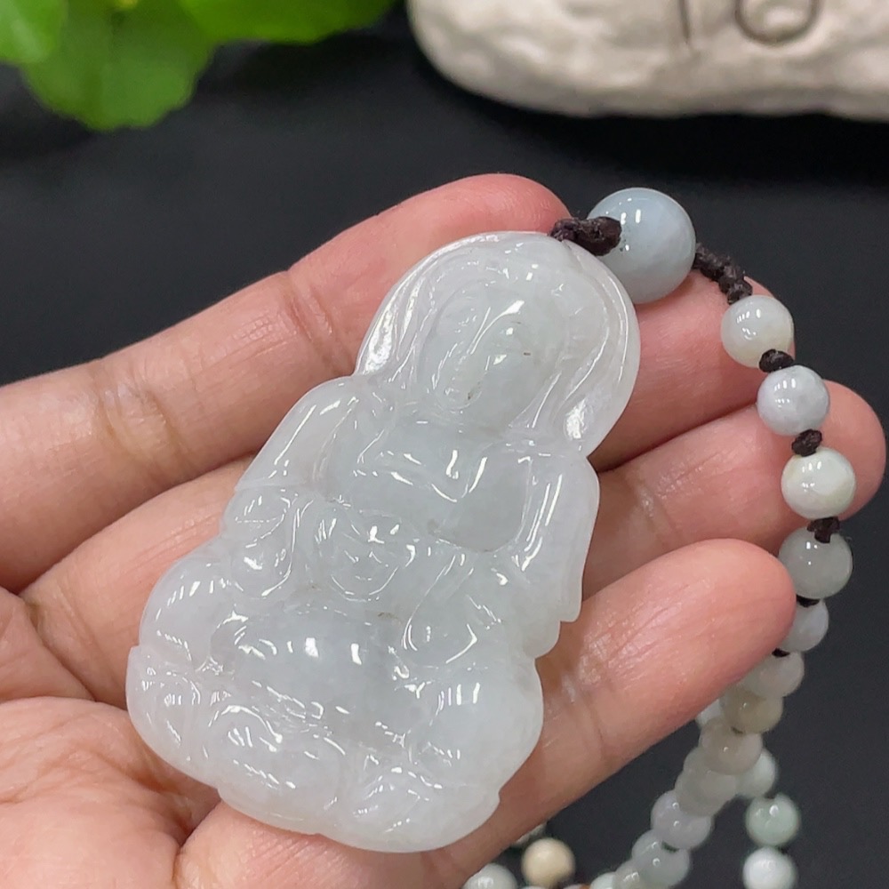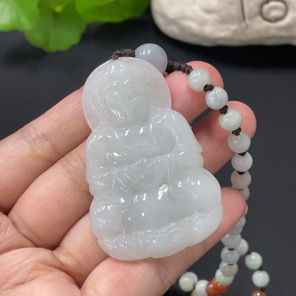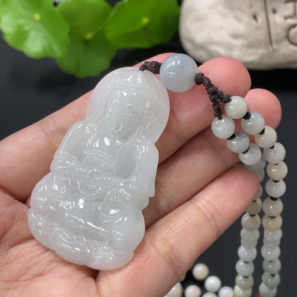 Jadeite Guanyin Pendant Total Weight Approx. 52.7g Color Origin Undetermined