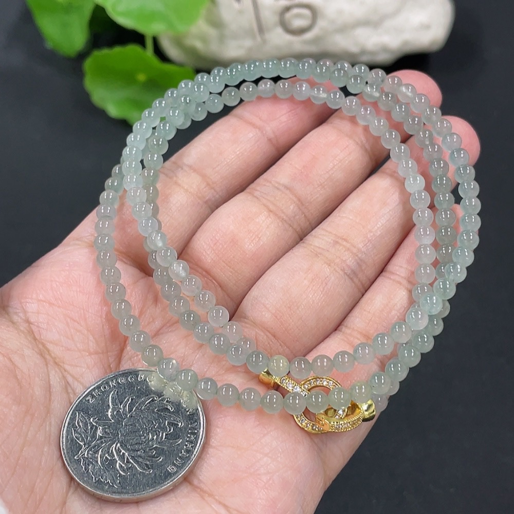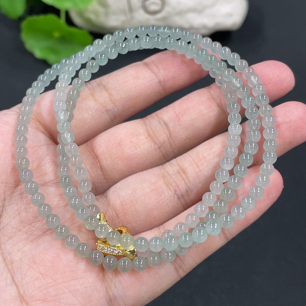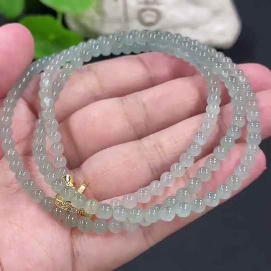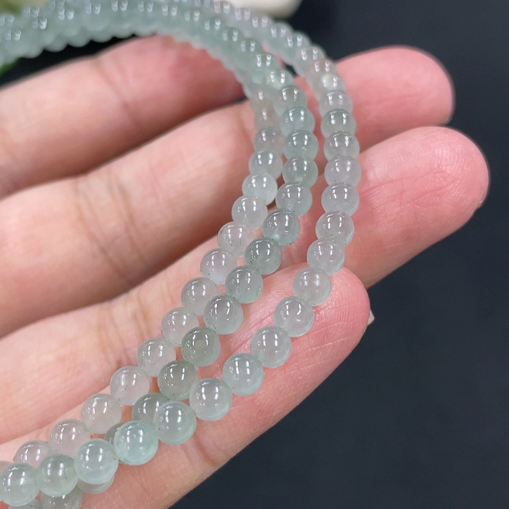 Jadeite Bead Necklace Approx. 3.8mm Non-gold Setting Total Weight Approx. 18.26g