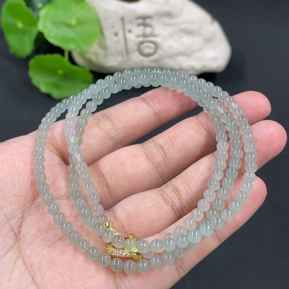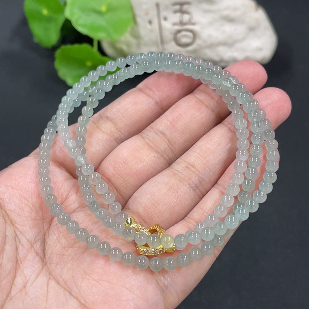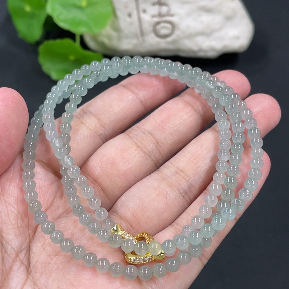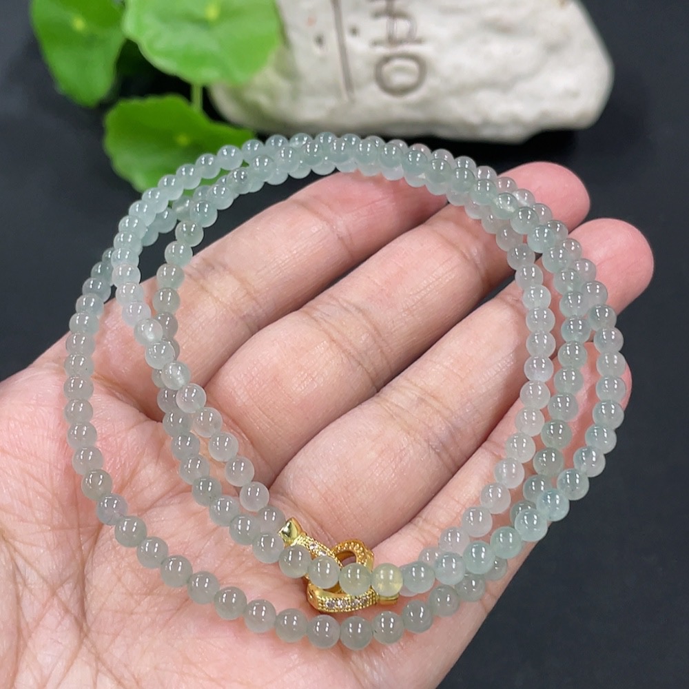 Jadeite Bead Necklace Approx. 3.8mm Non-gold Setting Total Weight Approx. 18.26g