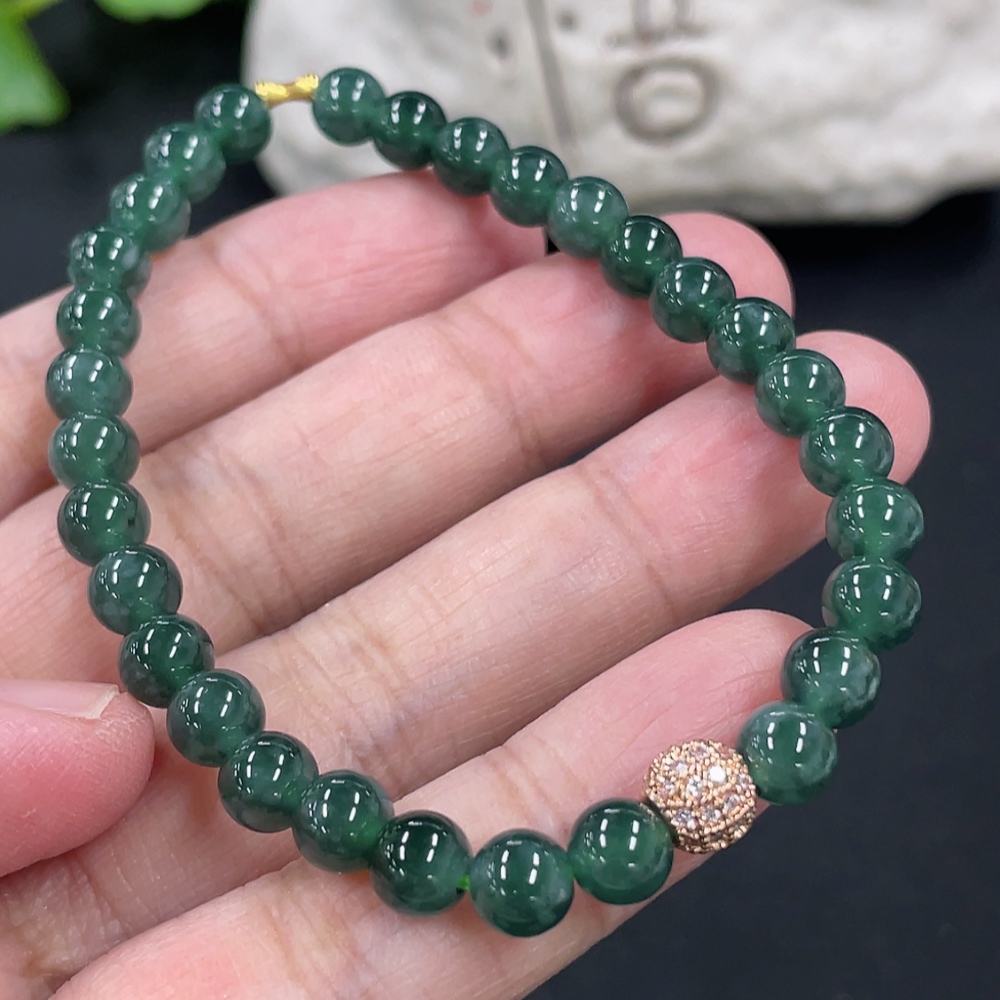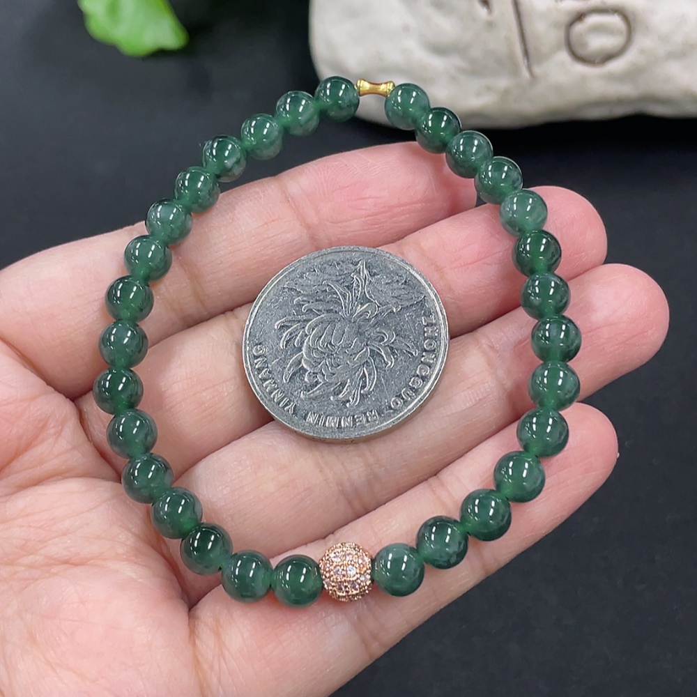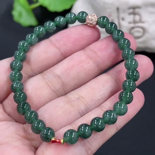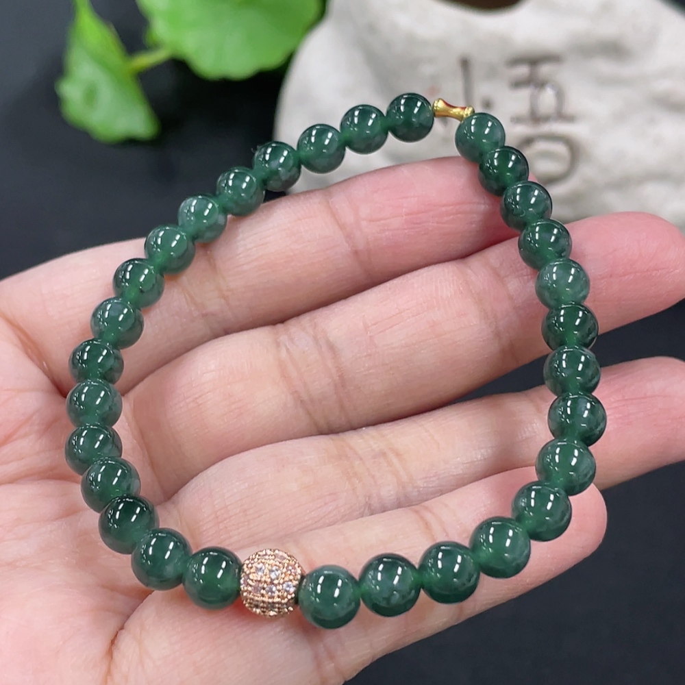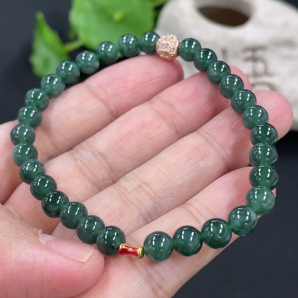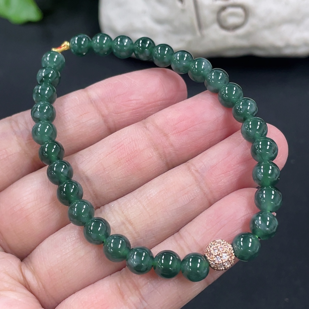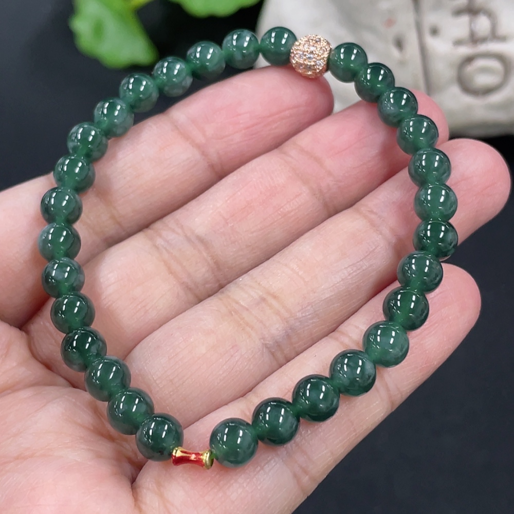 Jadeite Bracelet Card 5.9mm Approx. Total Weight About 11.2g No Imprint, Gold Content Marked in Red 18k, Others Non-Gold Gold Fragile