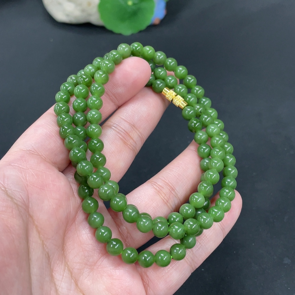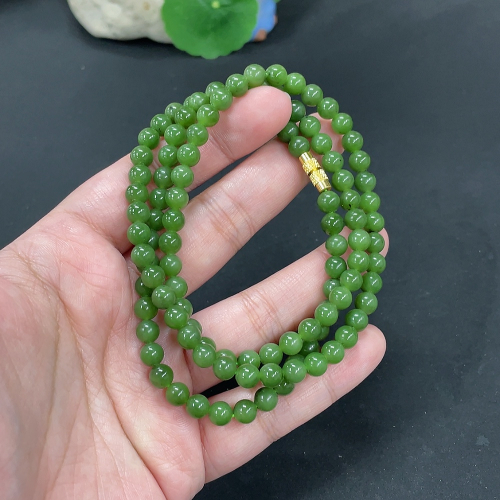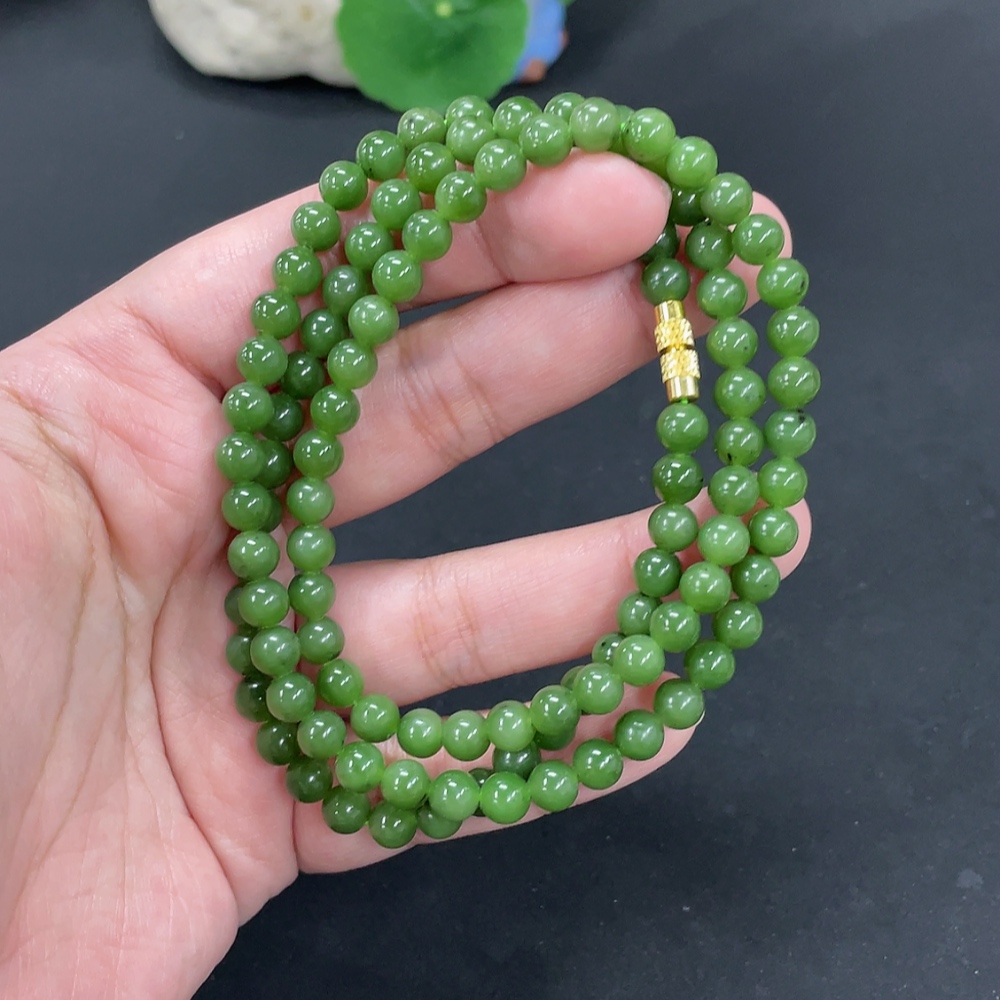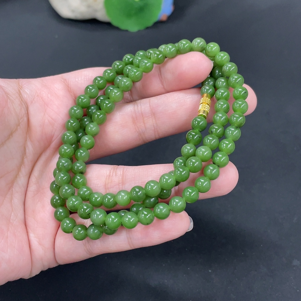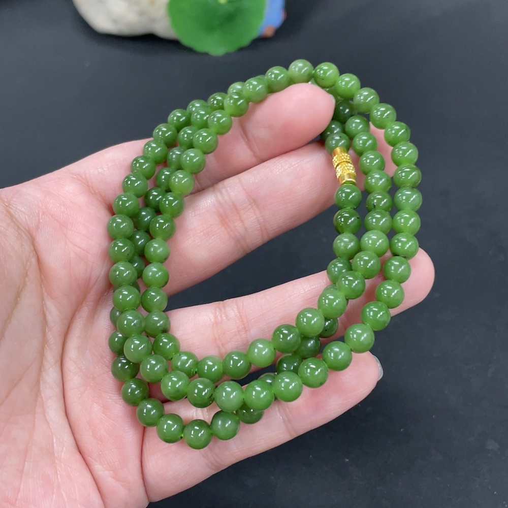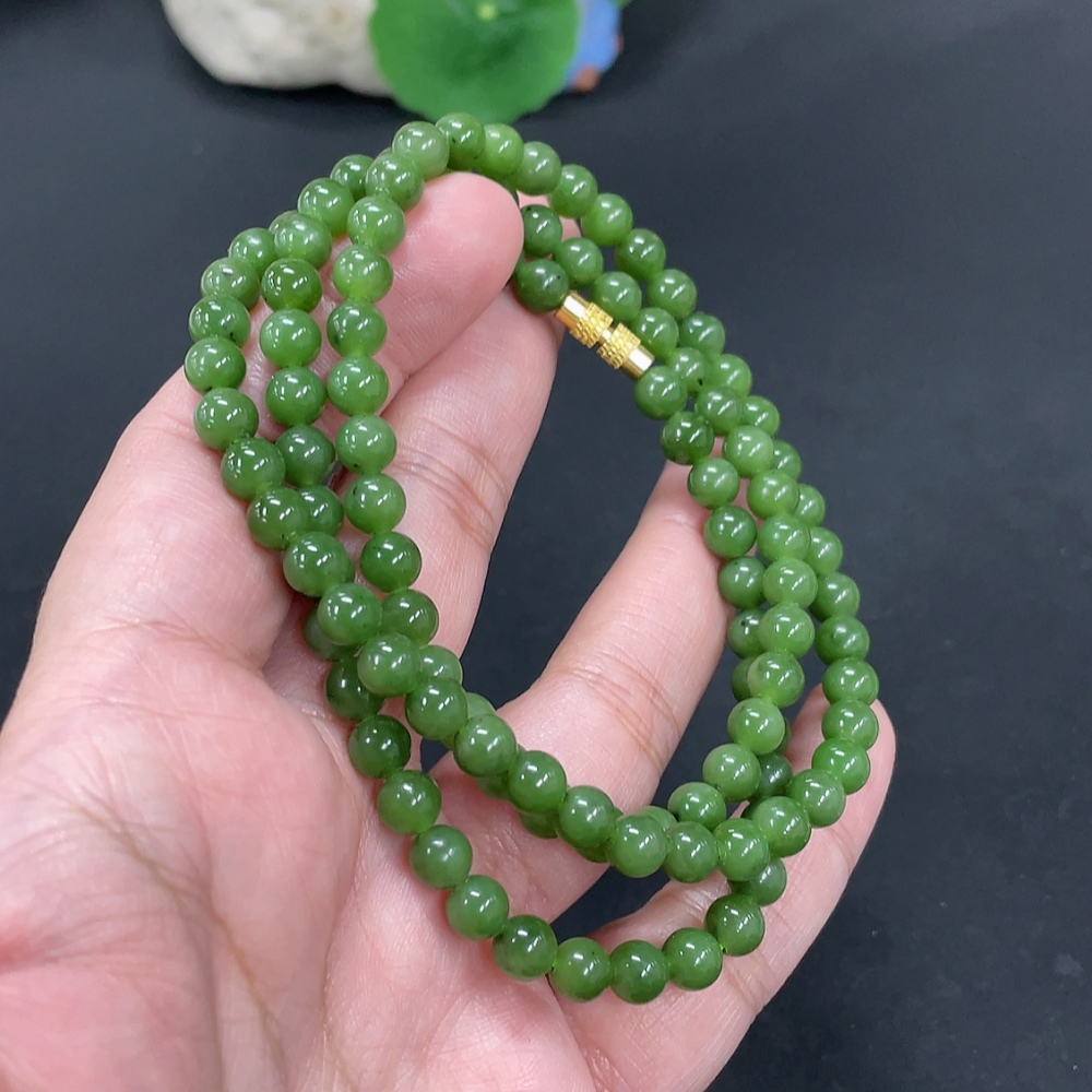 Hetian Jade Bead Necklace Approx. 5.8mm Total Weight About 36.4g Non-Gold