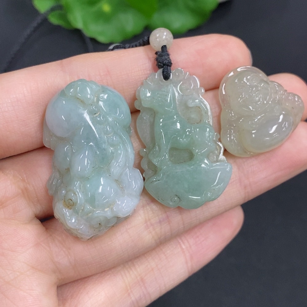 Jadeite Pendants Sell as a Lot with Damage and Non-Jadeite Beads