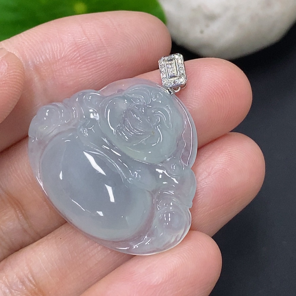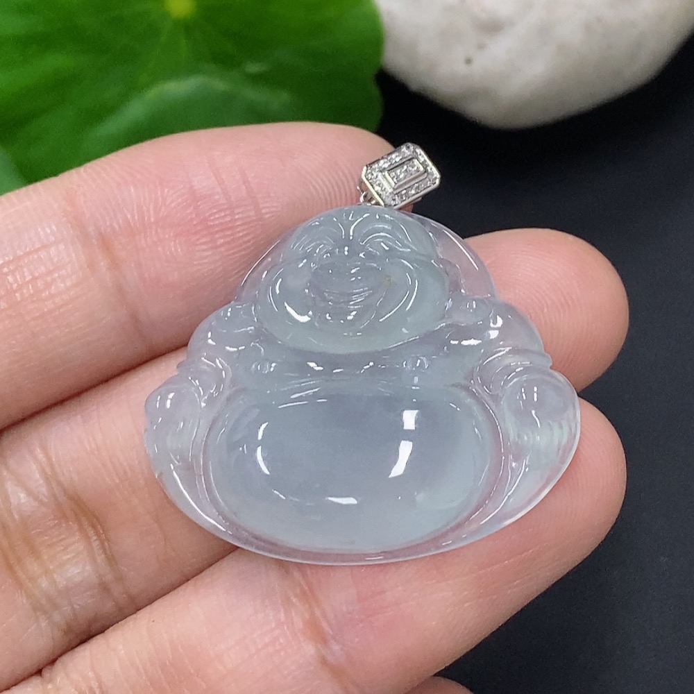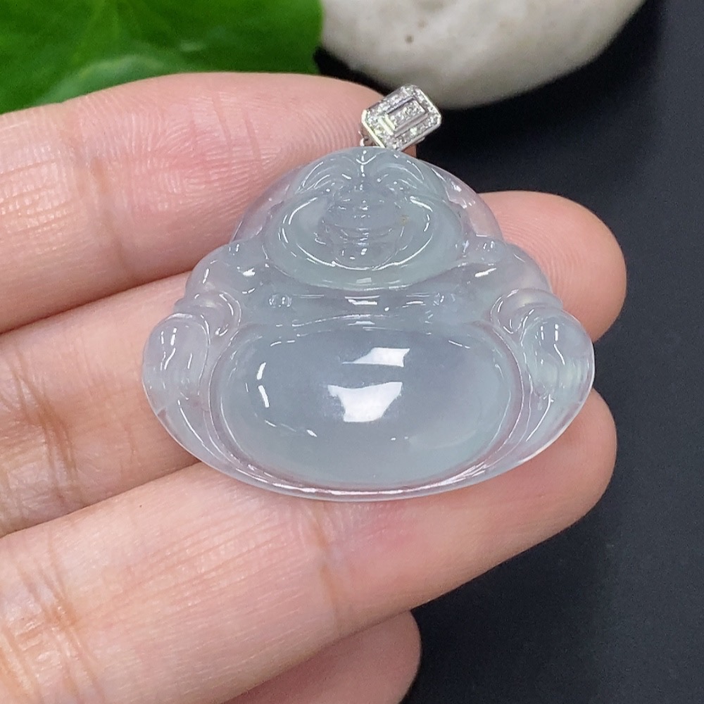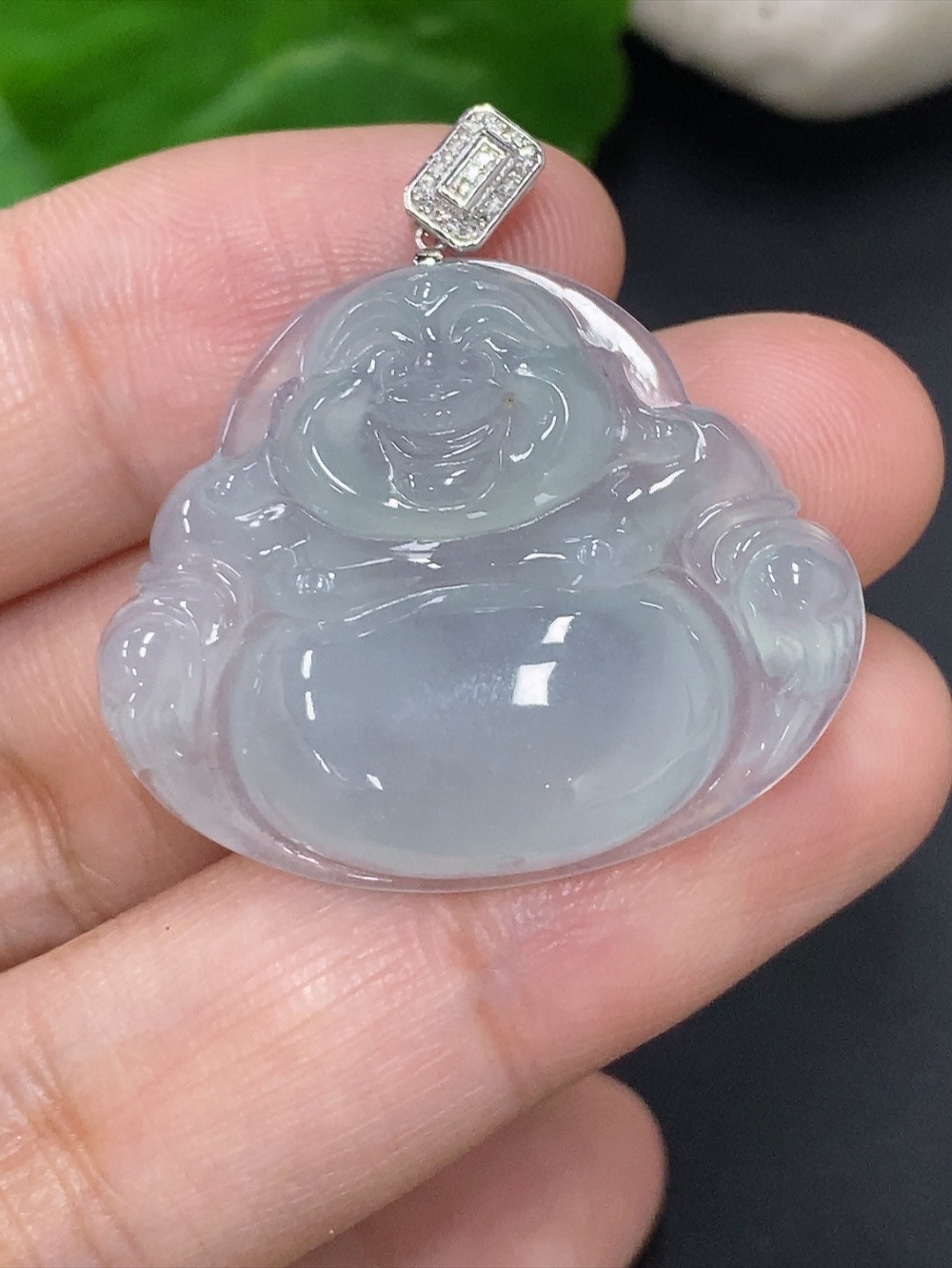 Jadeite Buddha Pendant with 18k Gold and Diamond Accents, Total Weight Approximately 6.81g
