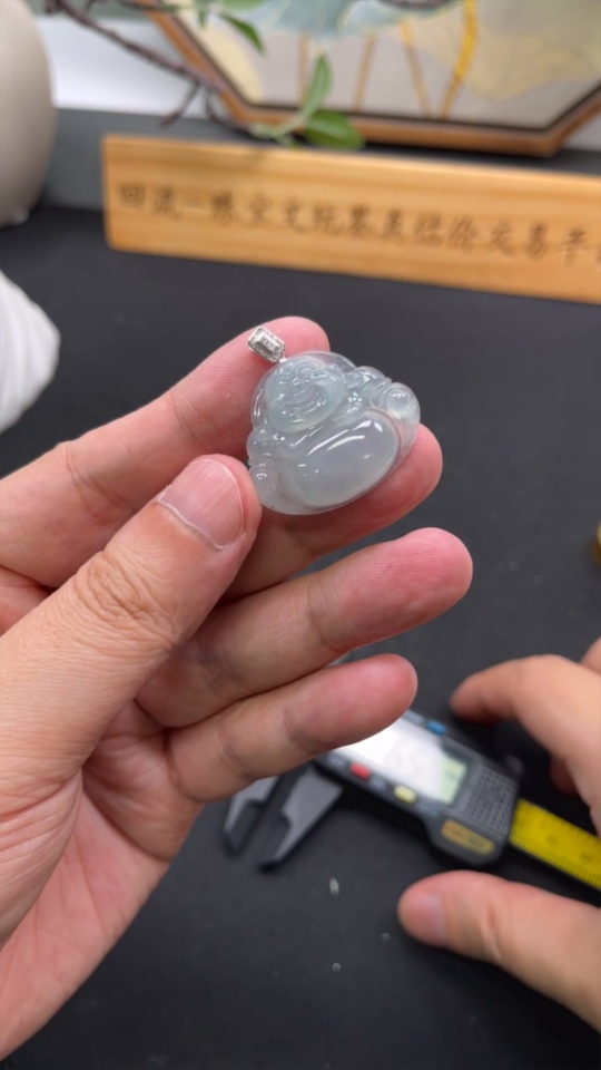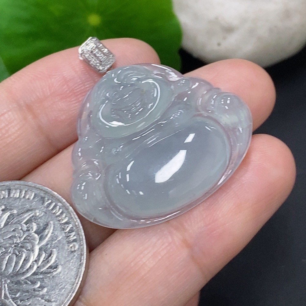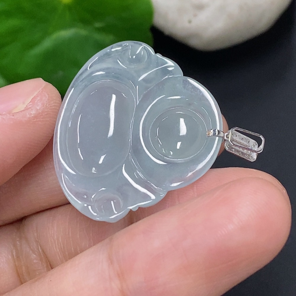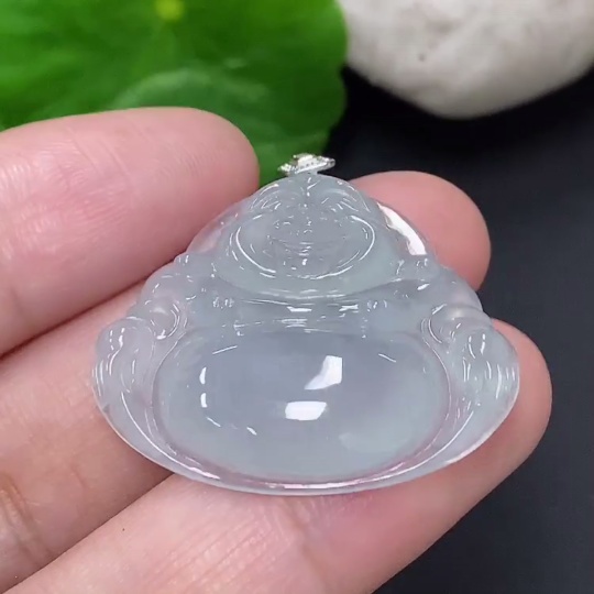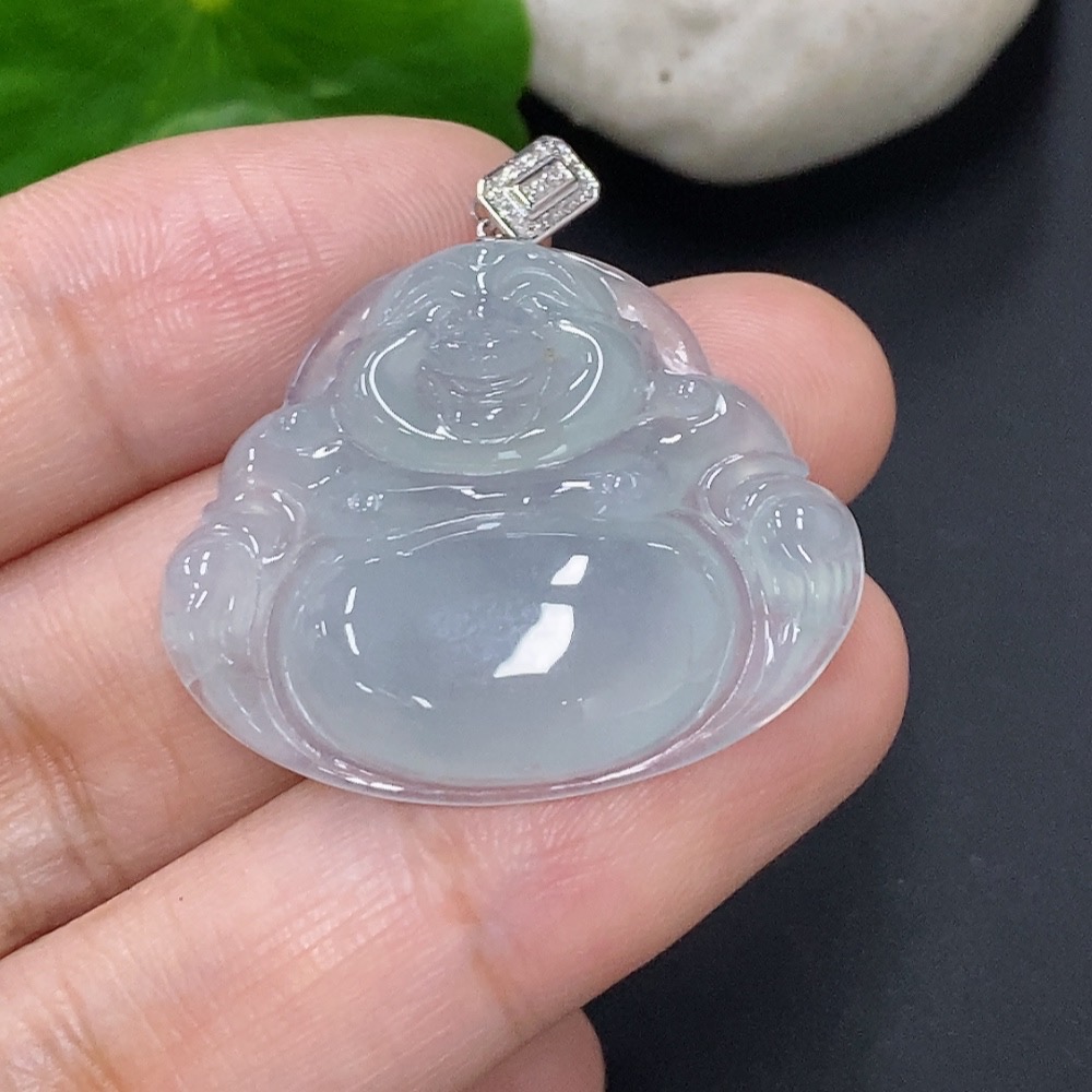 Jadeite Buddha Pendant with 18k Gold and Diamond Accents, Total Weight Approximately 6.81g