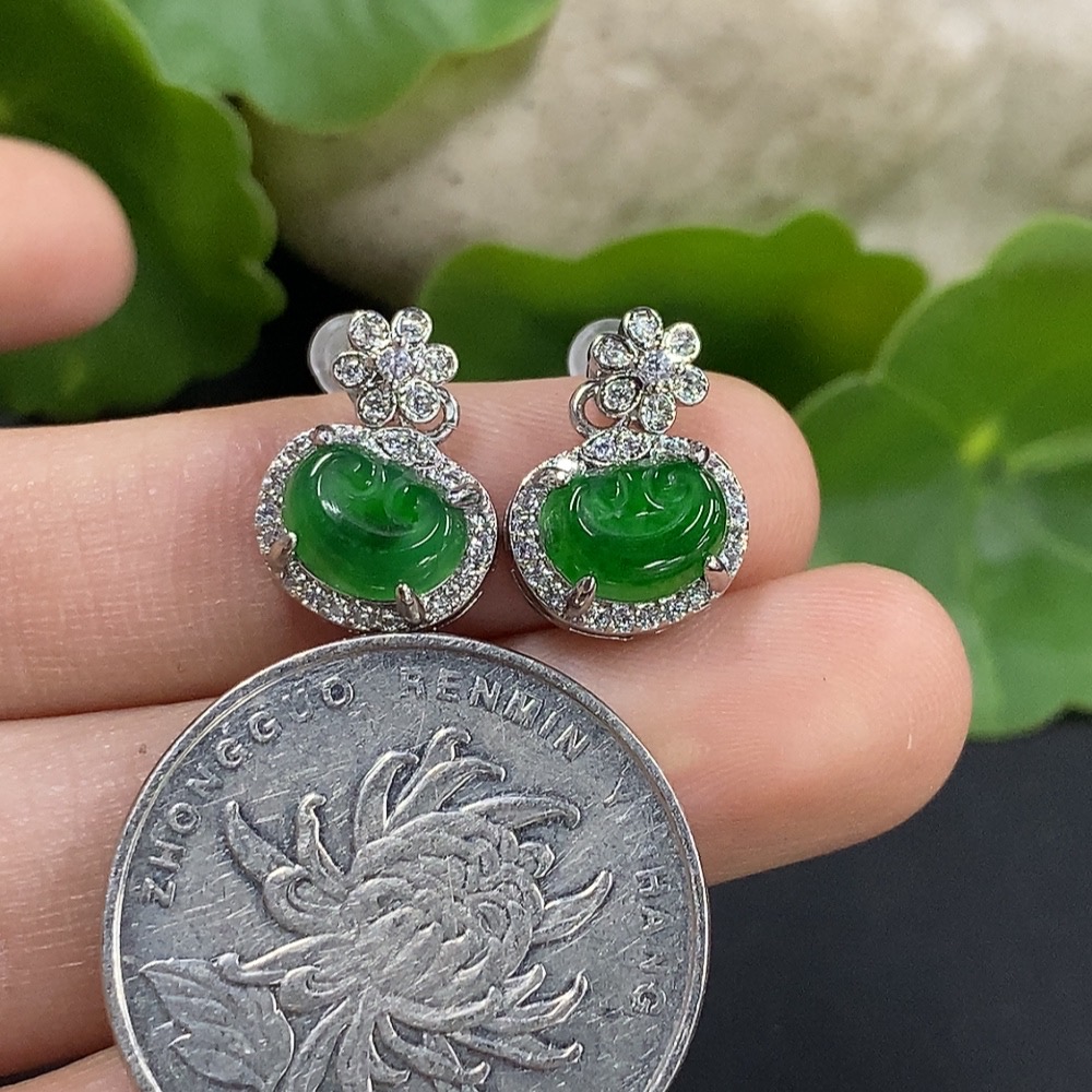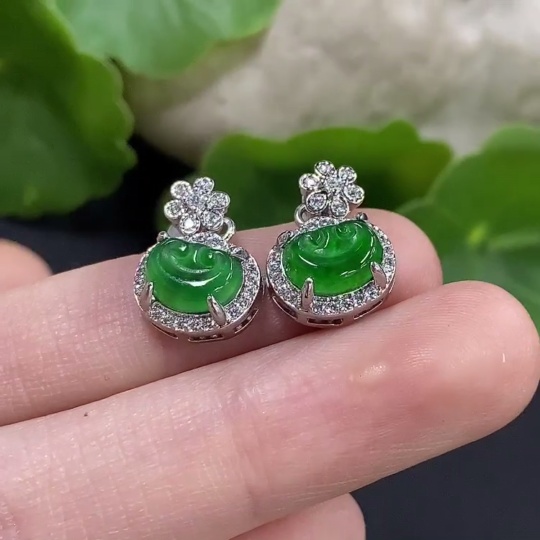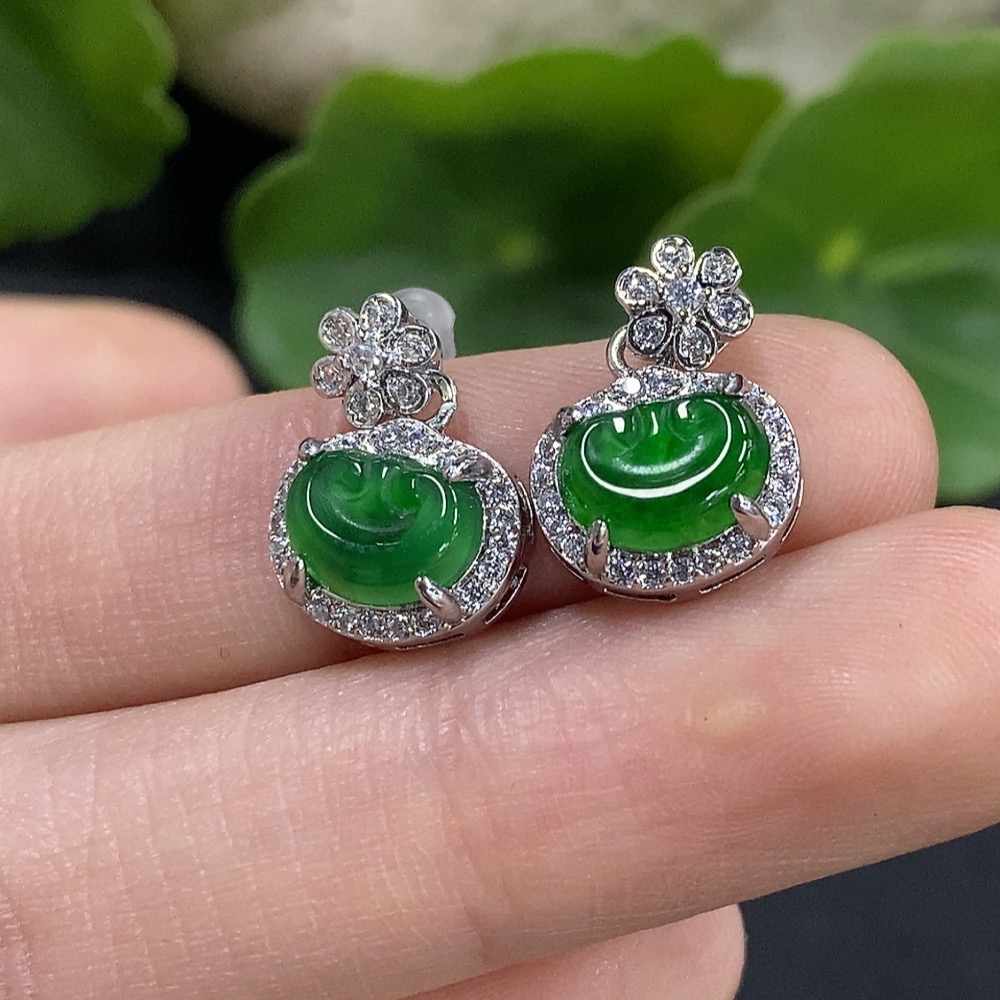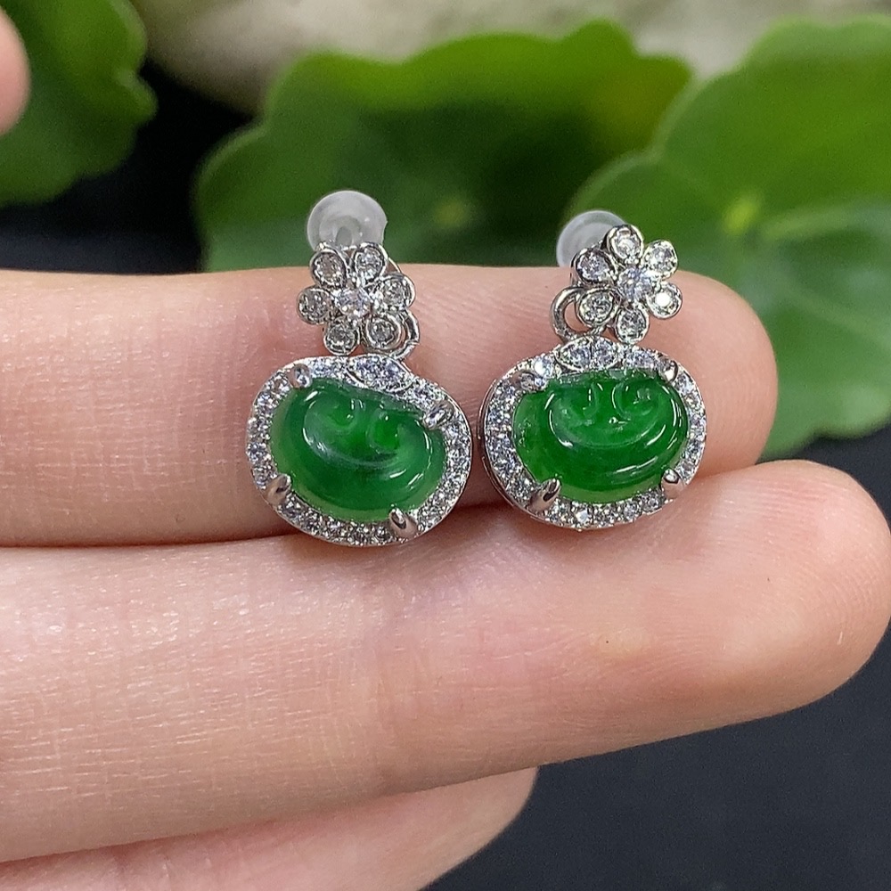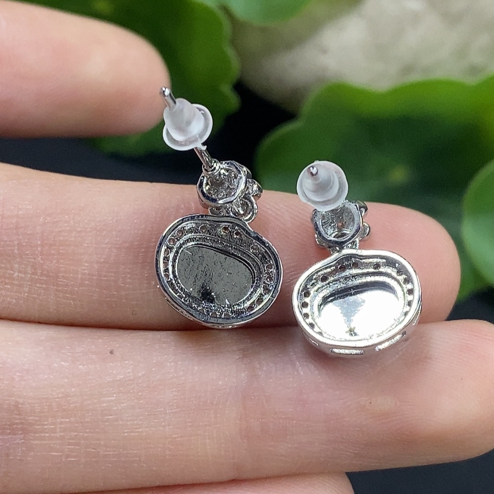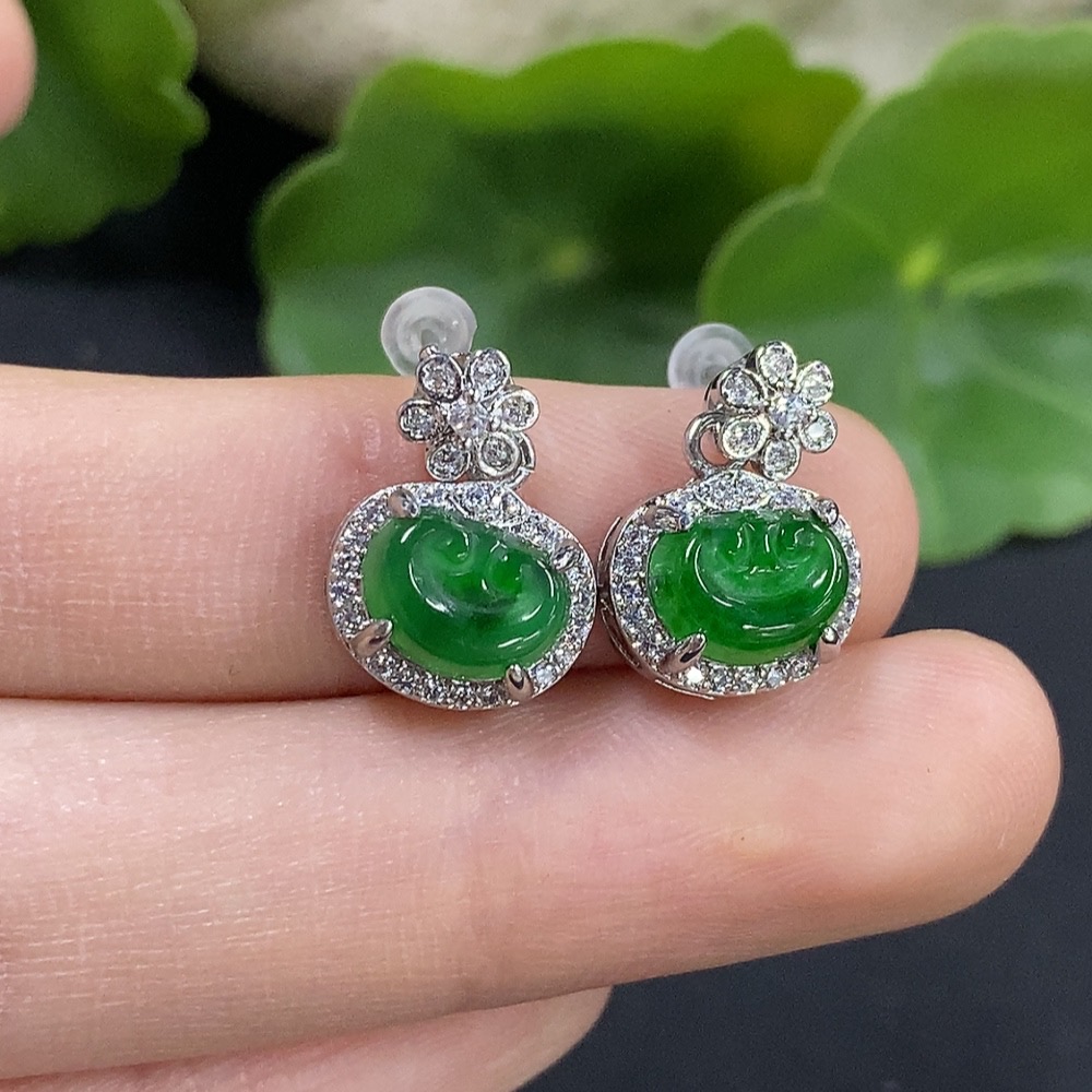Jadeite Inlaid Earrings Non-Gold Inlaid Total Weight Approx. 2.43g Including Ear Studs